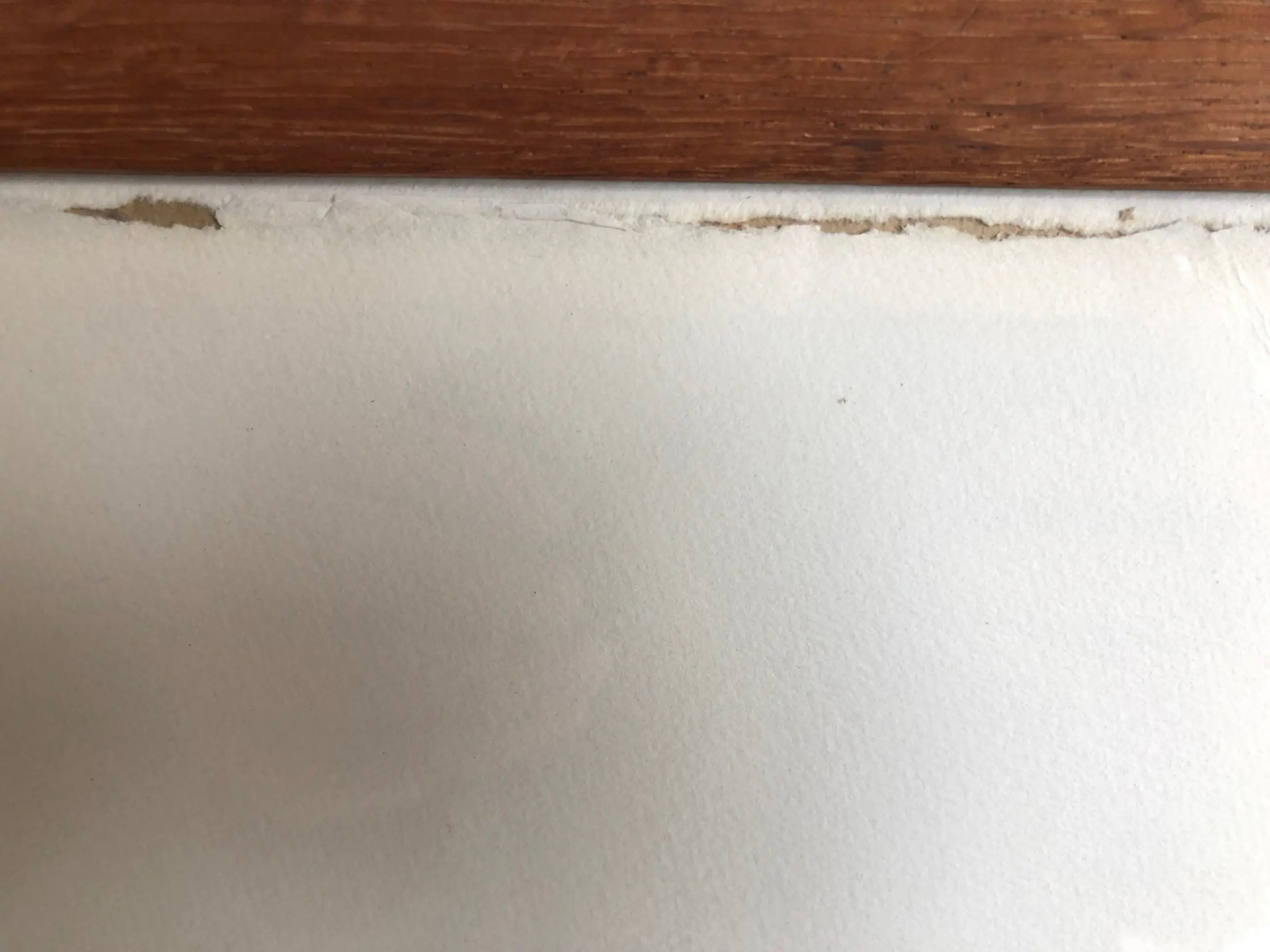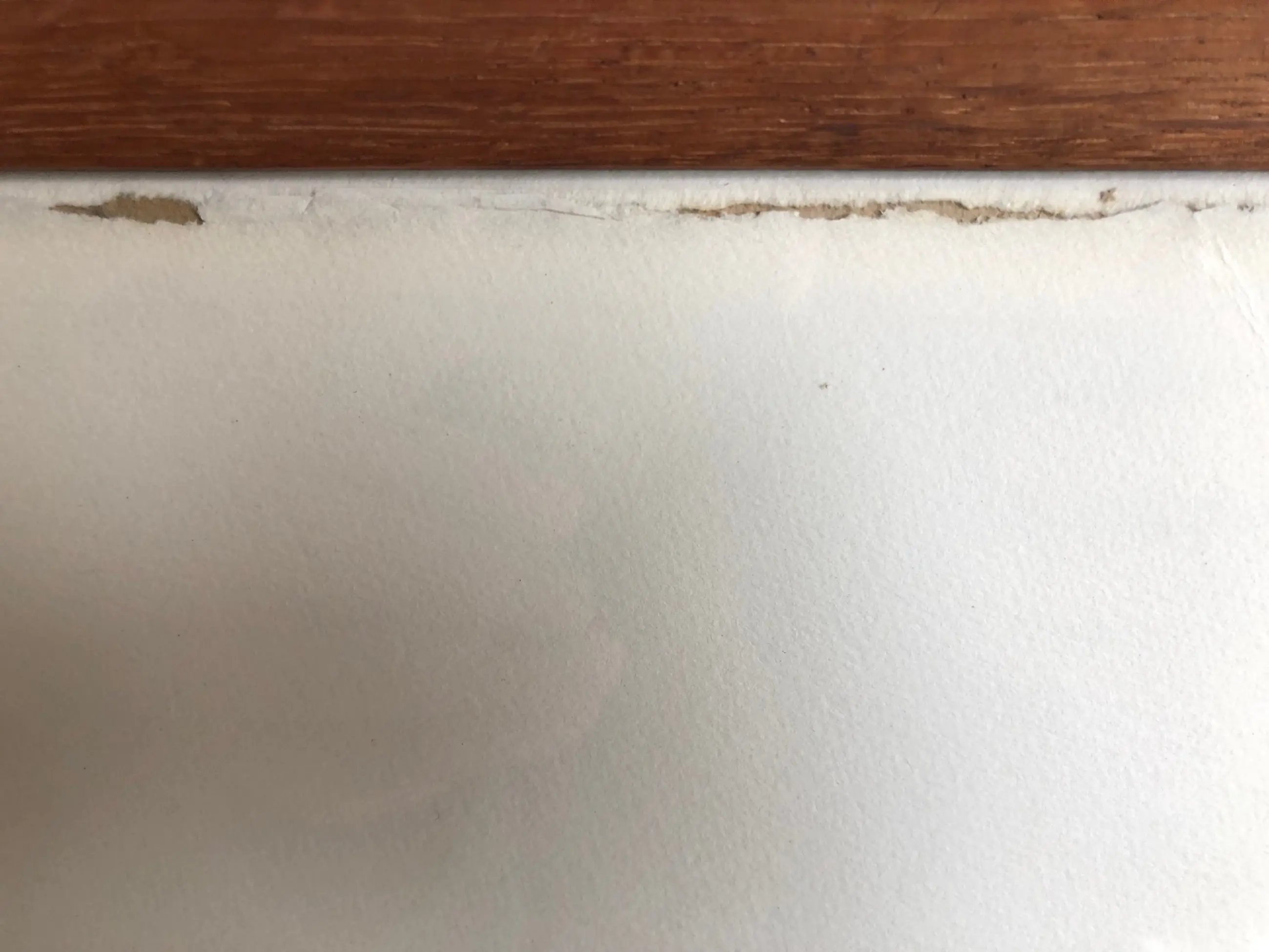 Beschadigingen aan de rand van het papier, niet fantastisch ingelijst.