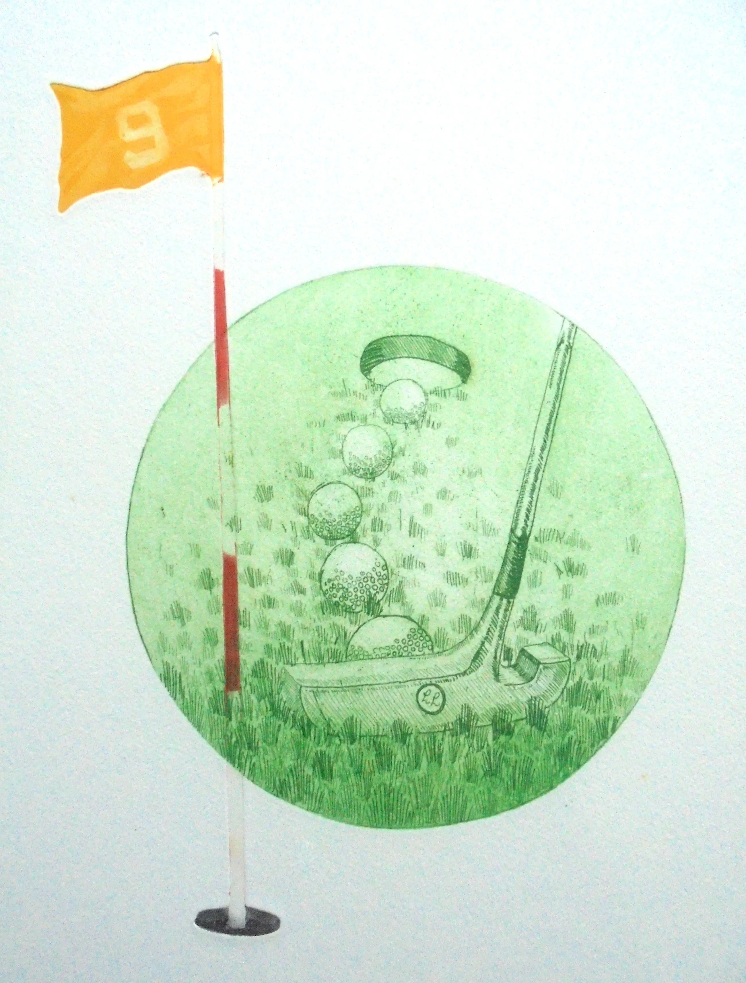 Leentje Linders - Golf.Prachtig kleurgebruik en mooi ingelijst.