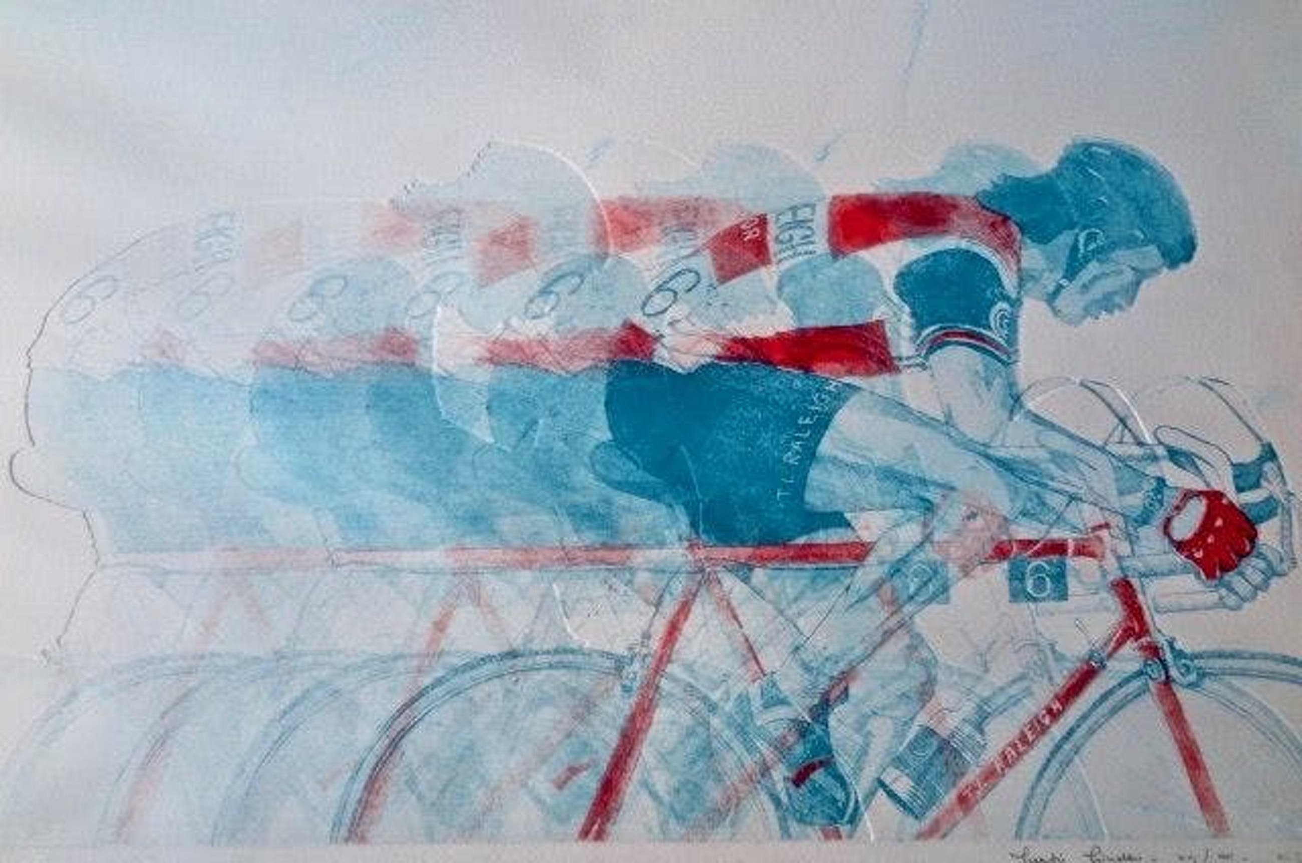 Leentje Linders heeft Lubberding aldus zeer typerend weergegeven in deze ets vol beweging waarbij Lubberding als het ware zichzelf voorbij rijdt. Titel: "he gave a jump".