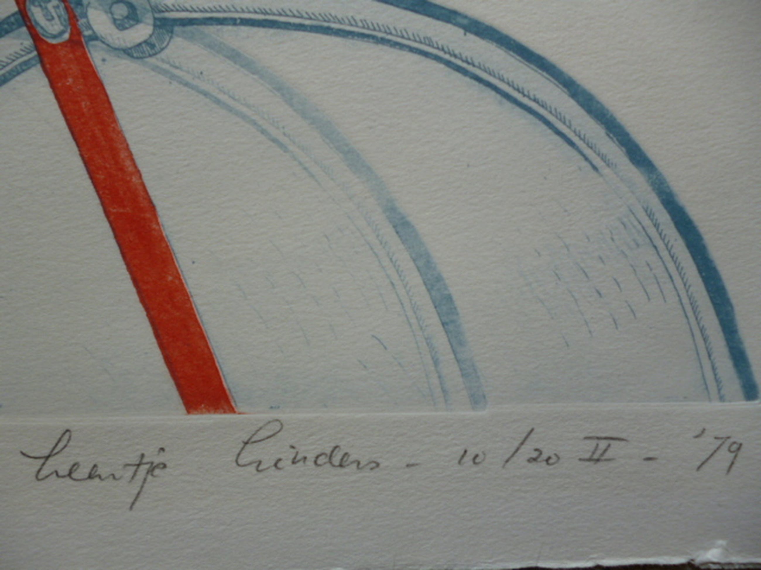 Kleurenets met reliëfdruk uit 1979. Potlood gesigneerd, gedateerd en genummerd 10/20 rechtsonder. Getiteld linksonder.