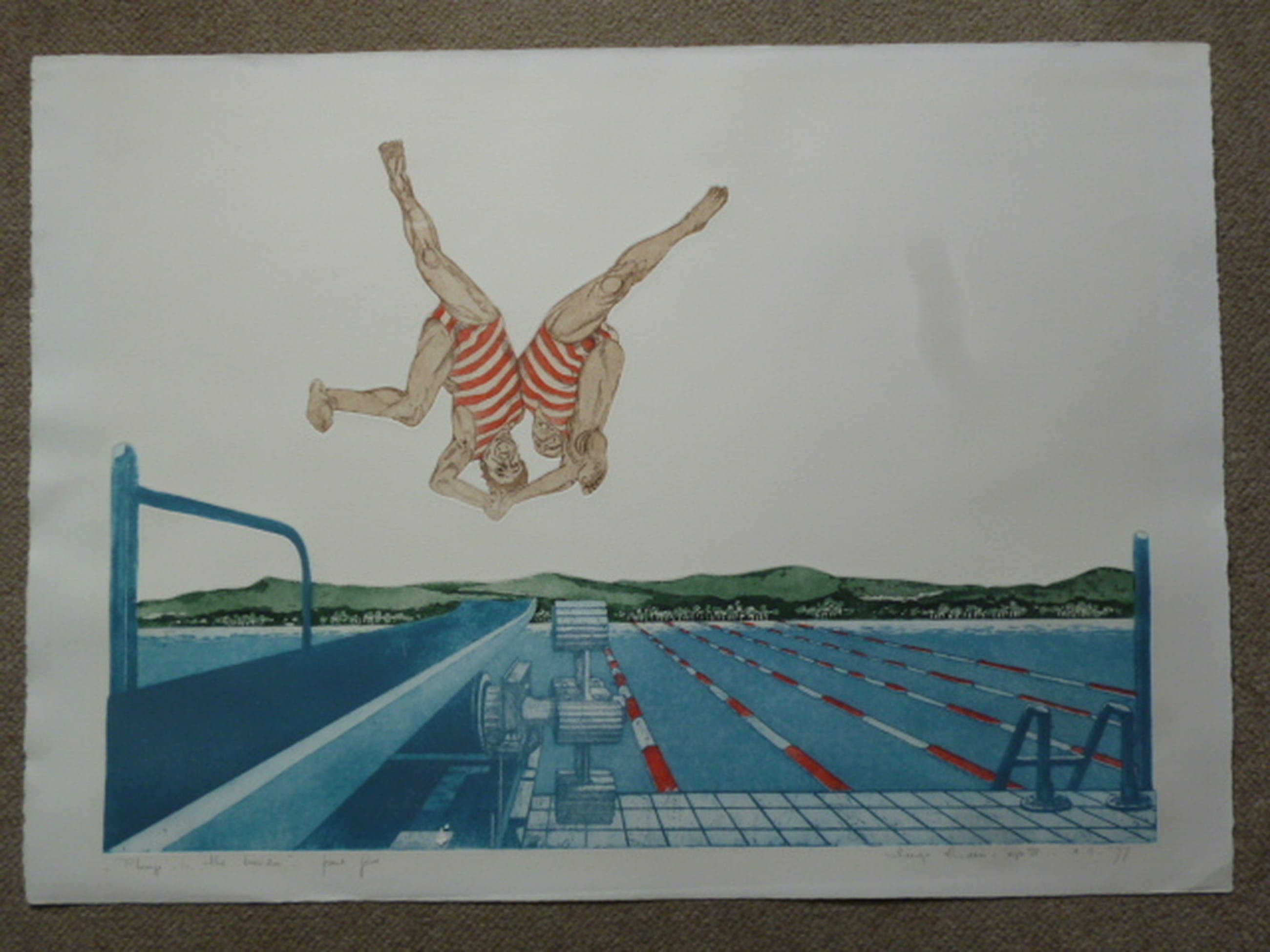 Kleurenets met reliëfdruk uit 1977. Potlood gesigneerd, gedateerd en a.p. IV rechtsonder.