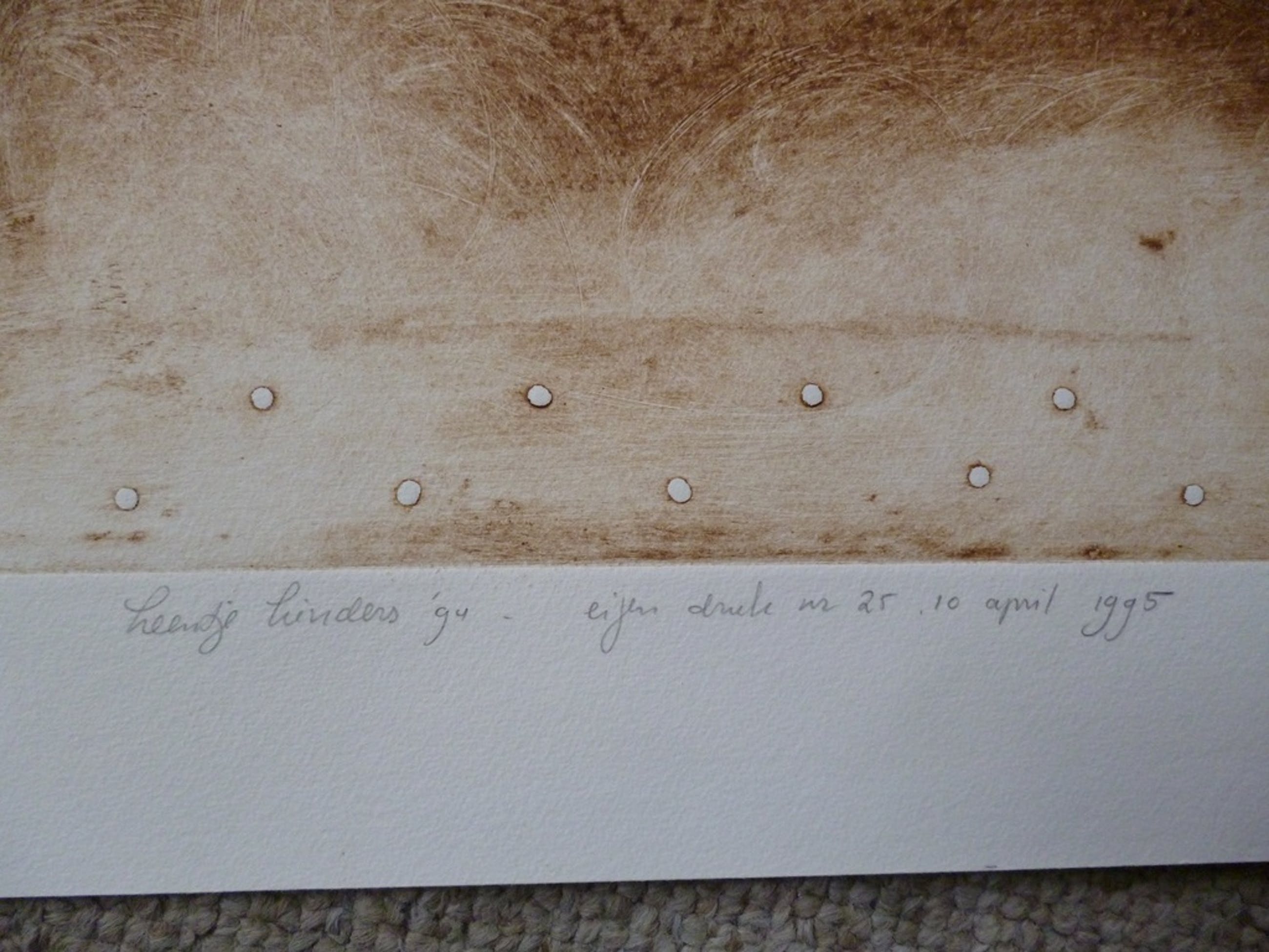 Kleurets, gesigneerd '94/gedateerd/genummerd rechtsonder nr. 25. Eigen druk 10 april 1995.