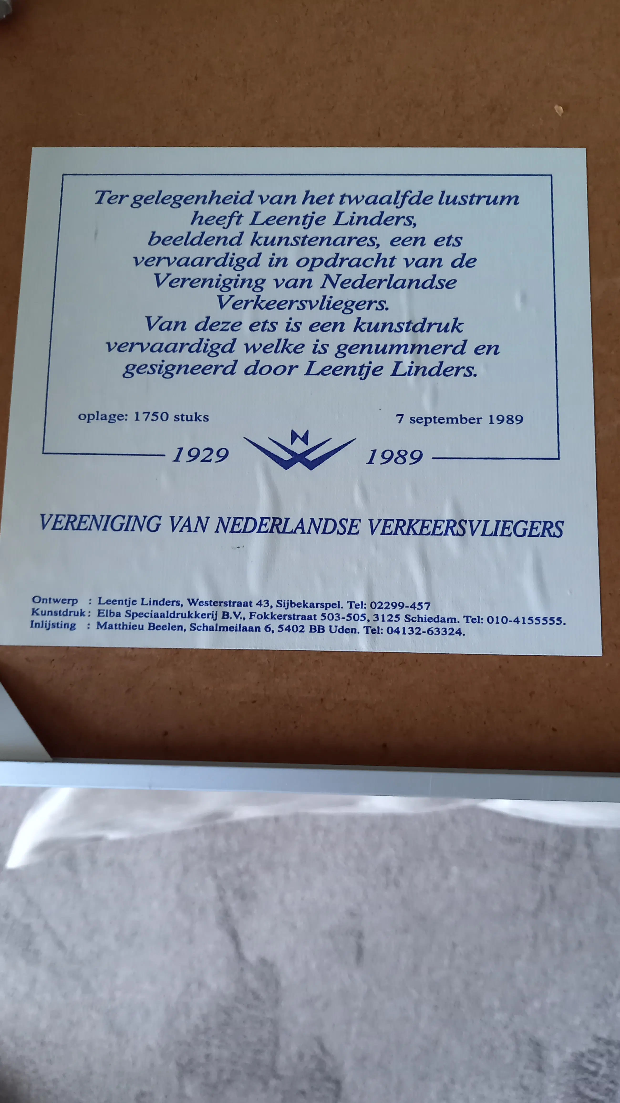 Het werk is af te halen op locatie. Als koper dient u zelf verpakkingsmateriaal mee te nemen. De locatie is: Ermelo, Nederland