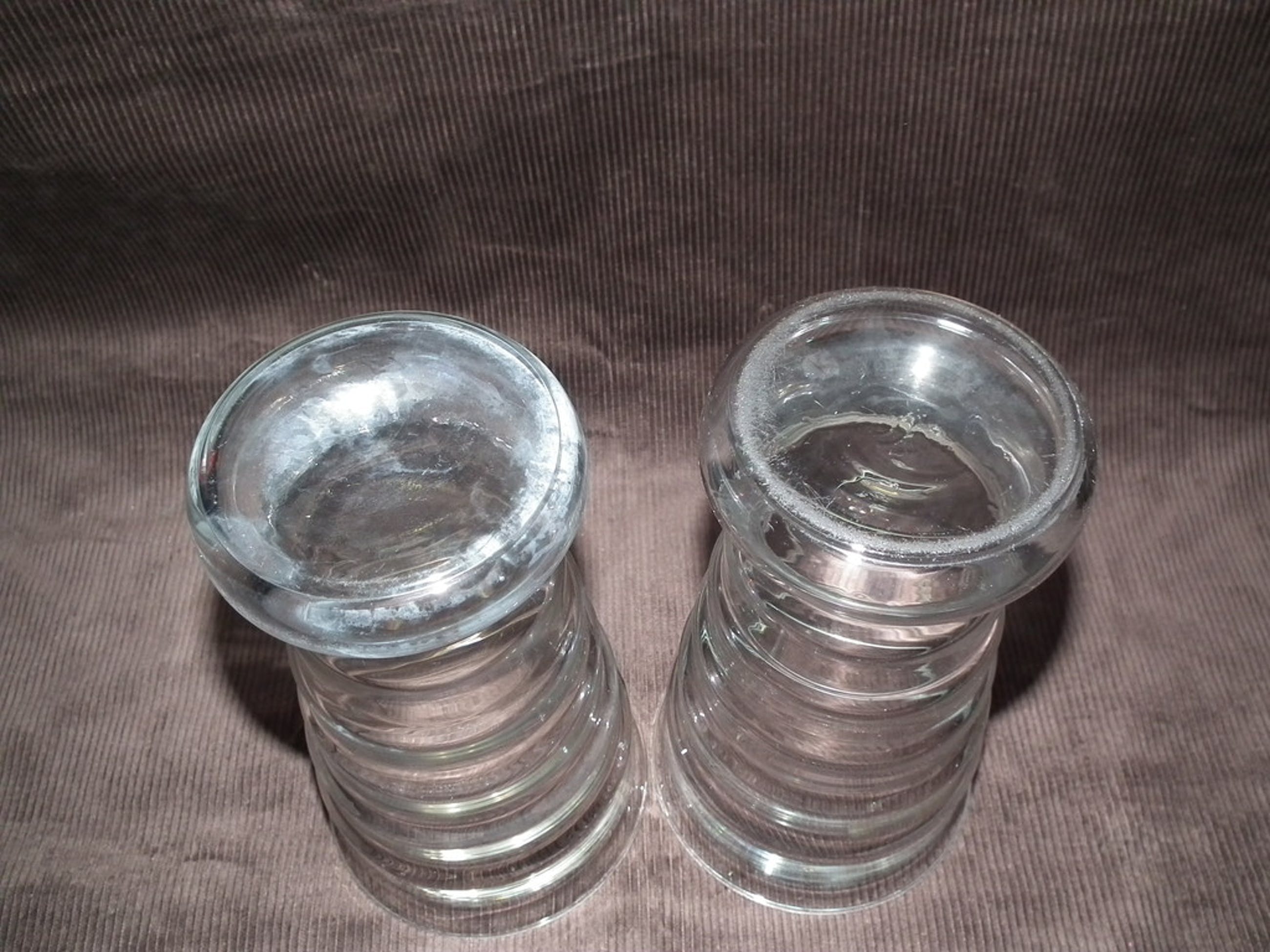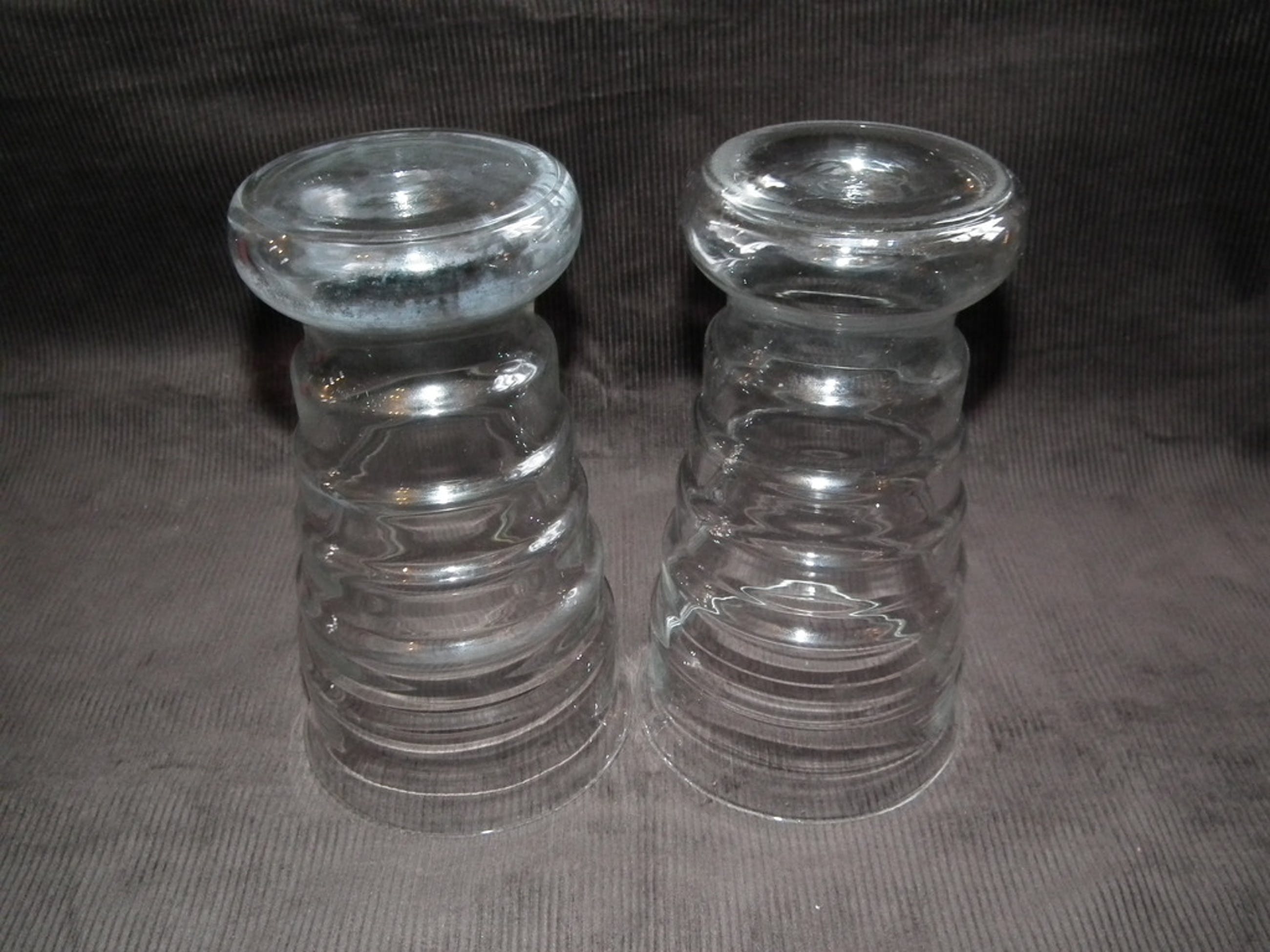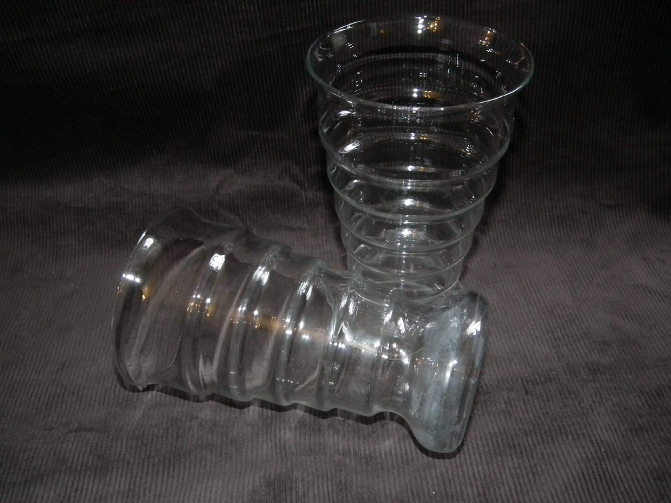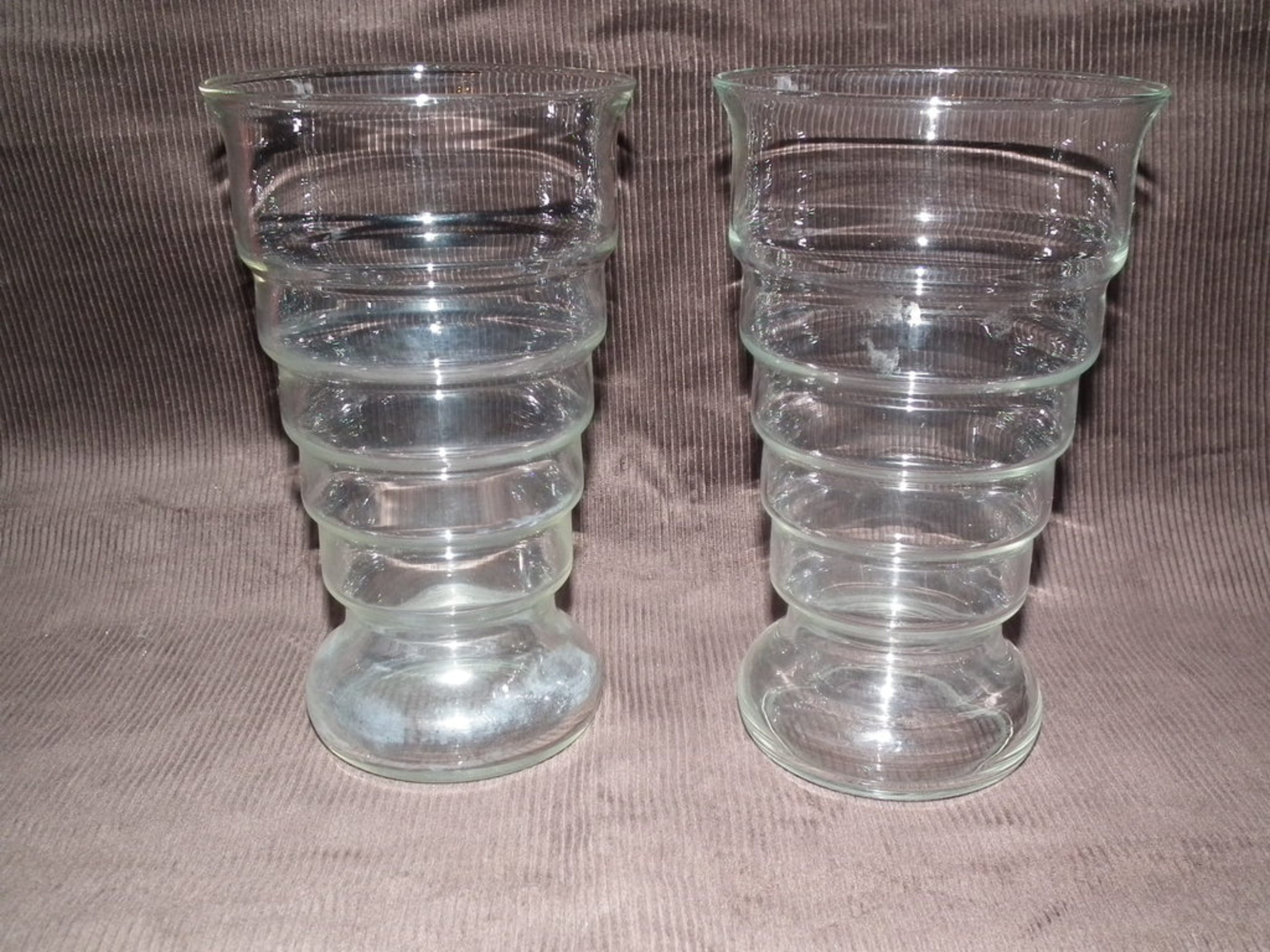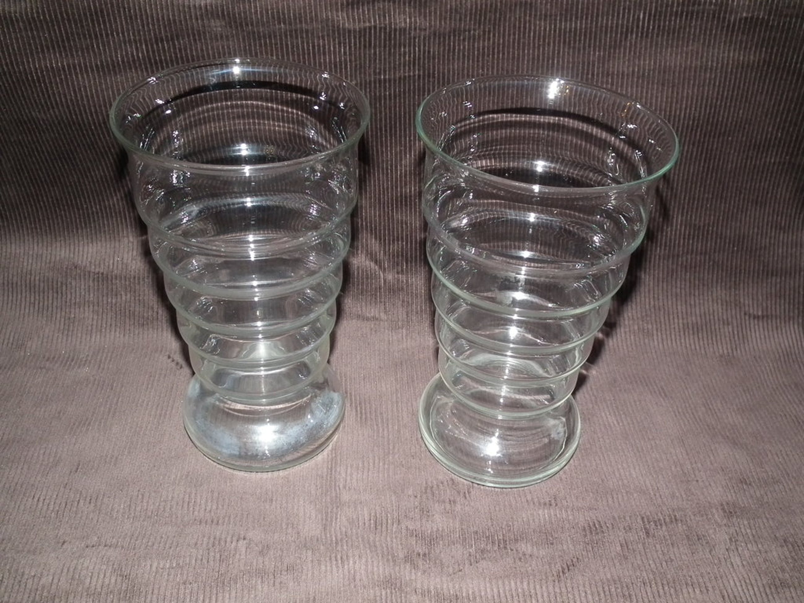 Set van twee ribbelvazen gemaakt bij de glasfabriek leerdam naar ontwerp van K.P.C. de Bazel citca 1919.