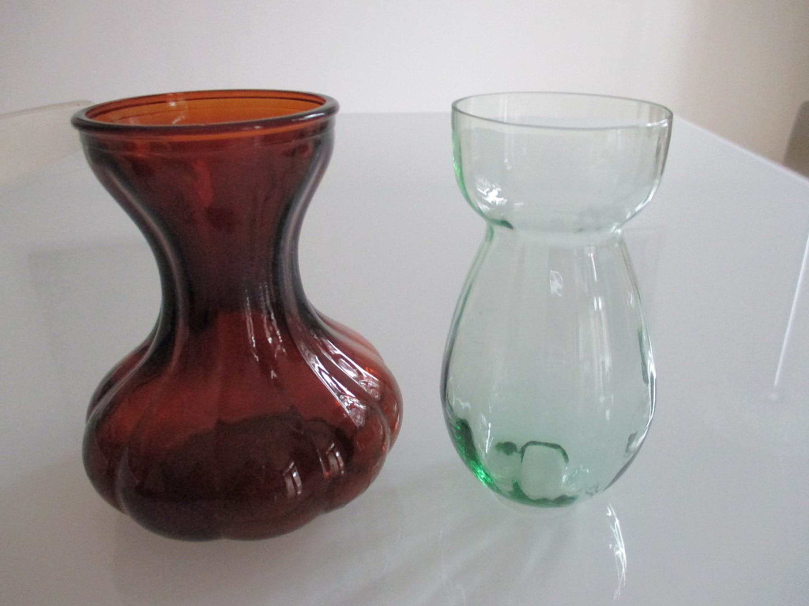 Twee glazen hyacintvazen, een ontwerp van A. Copier.