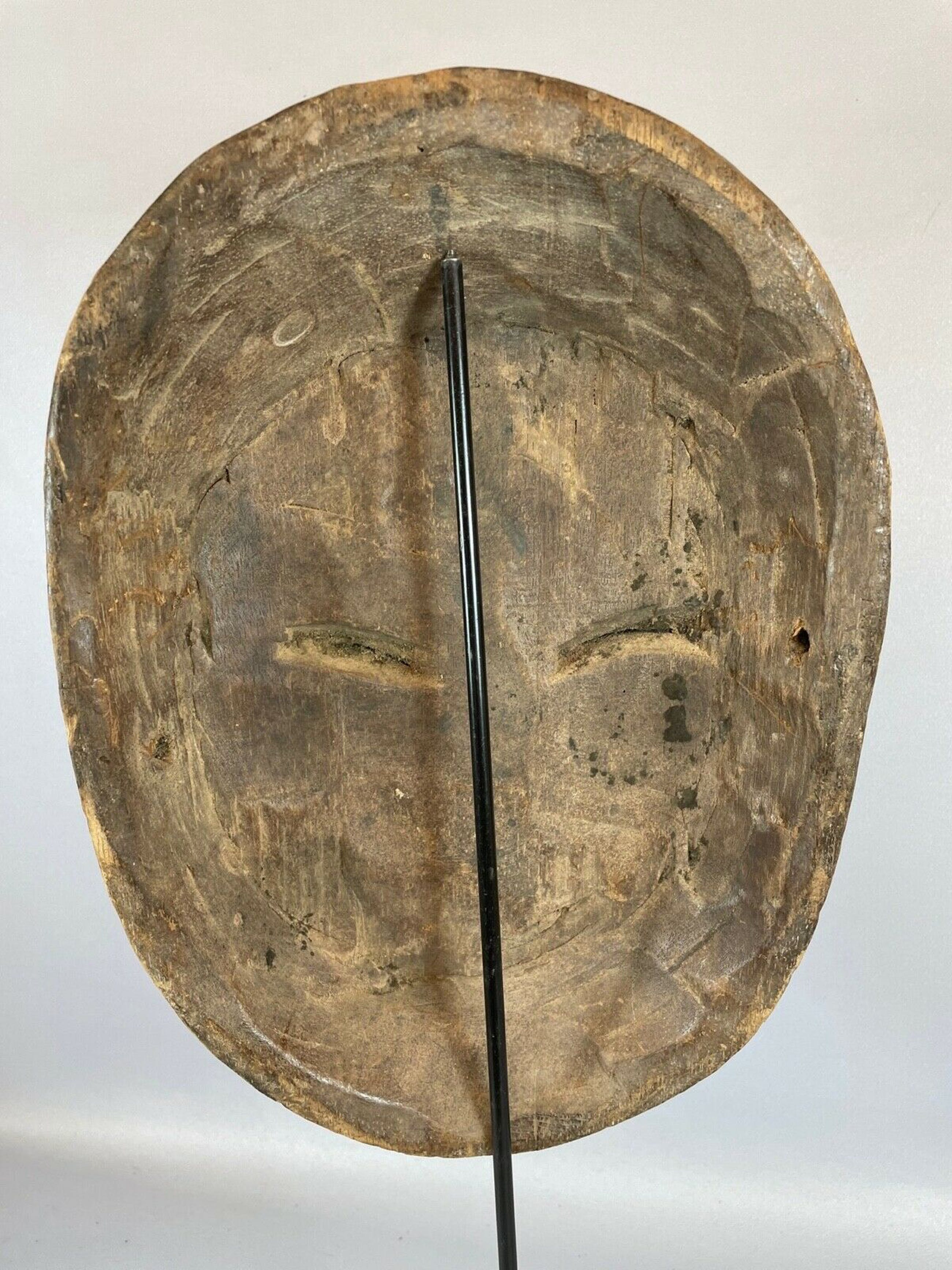 Congo: Tribal used African mask from the Lega Bwami.This type of mask is used in context of initiation.Hand carved from a single piece of colorful painted wood.Height: 34 cm.