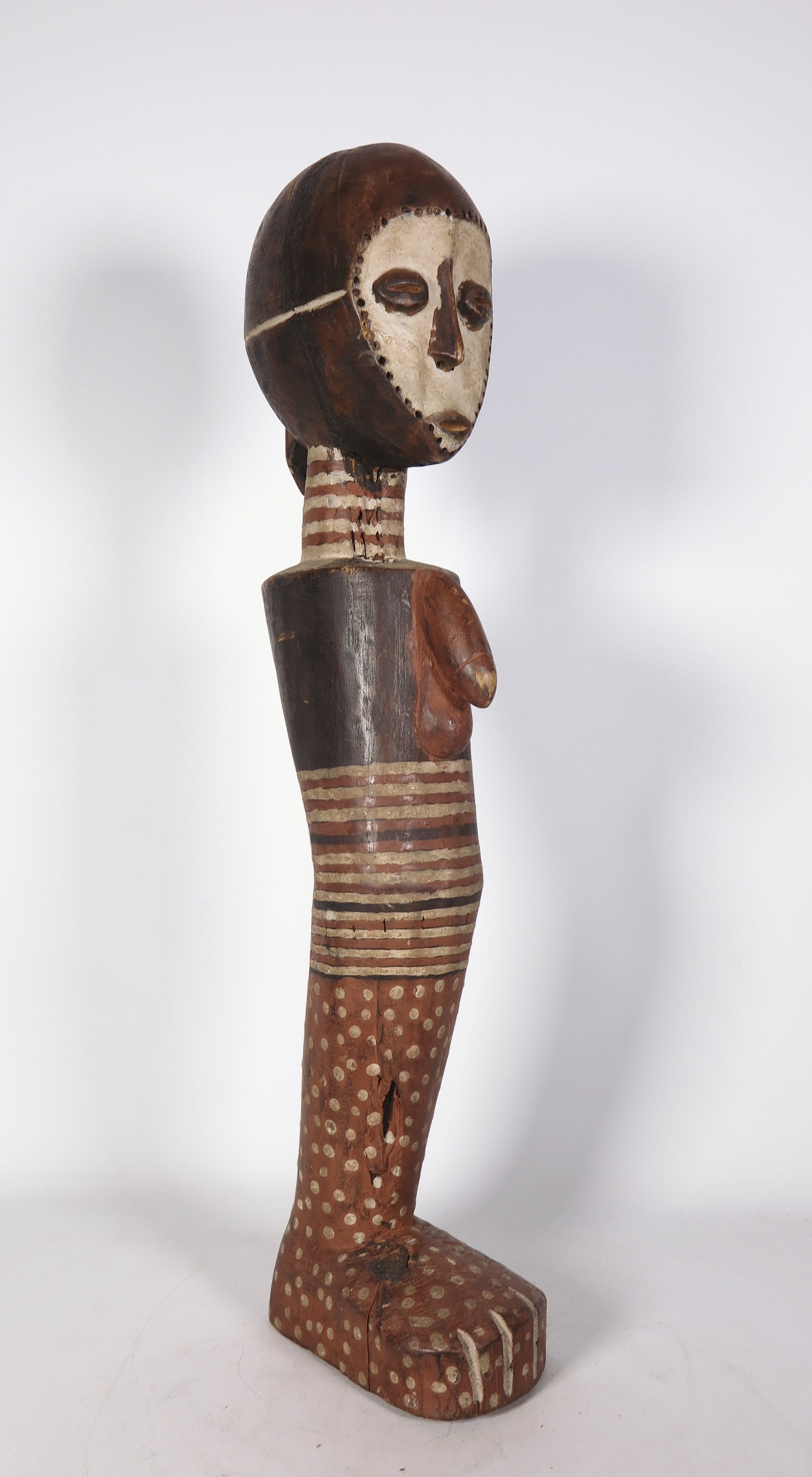 Houten gestoken beeld, rood wit zwart beschilderd.