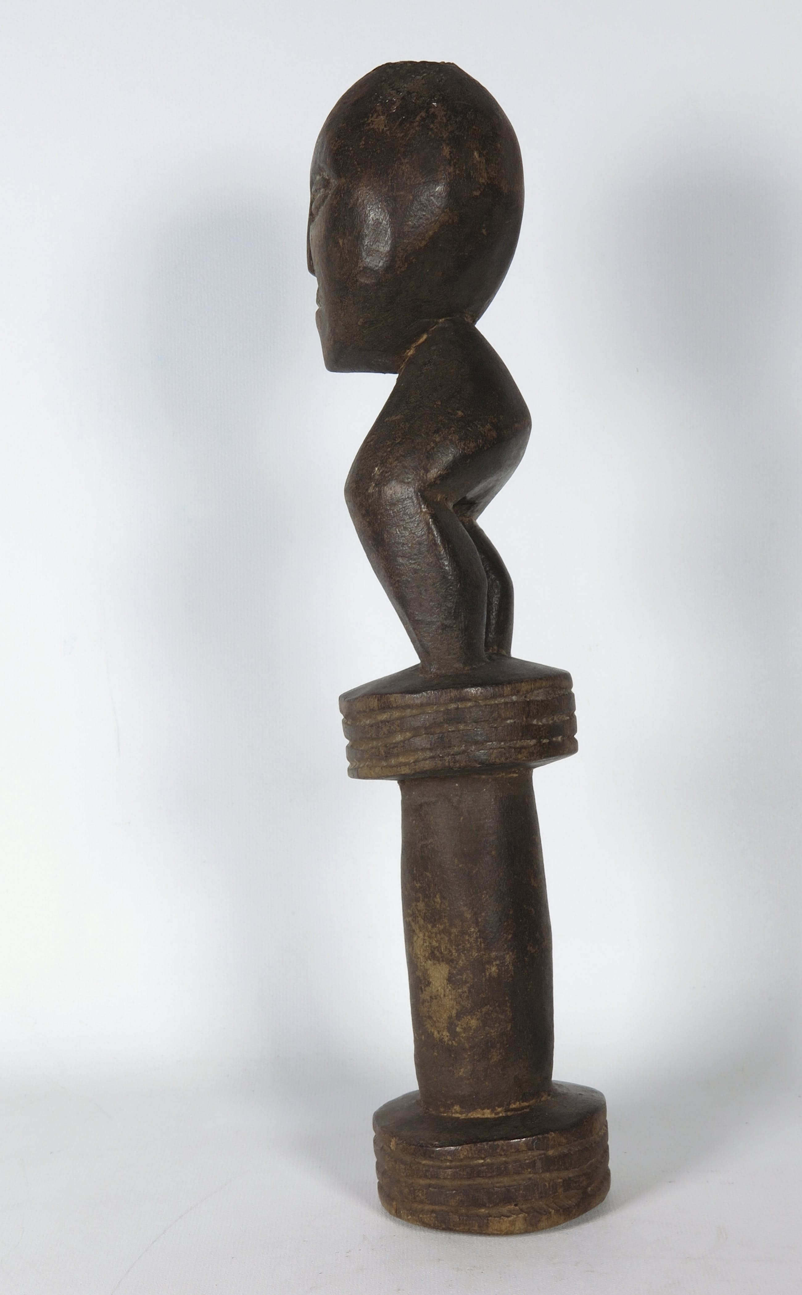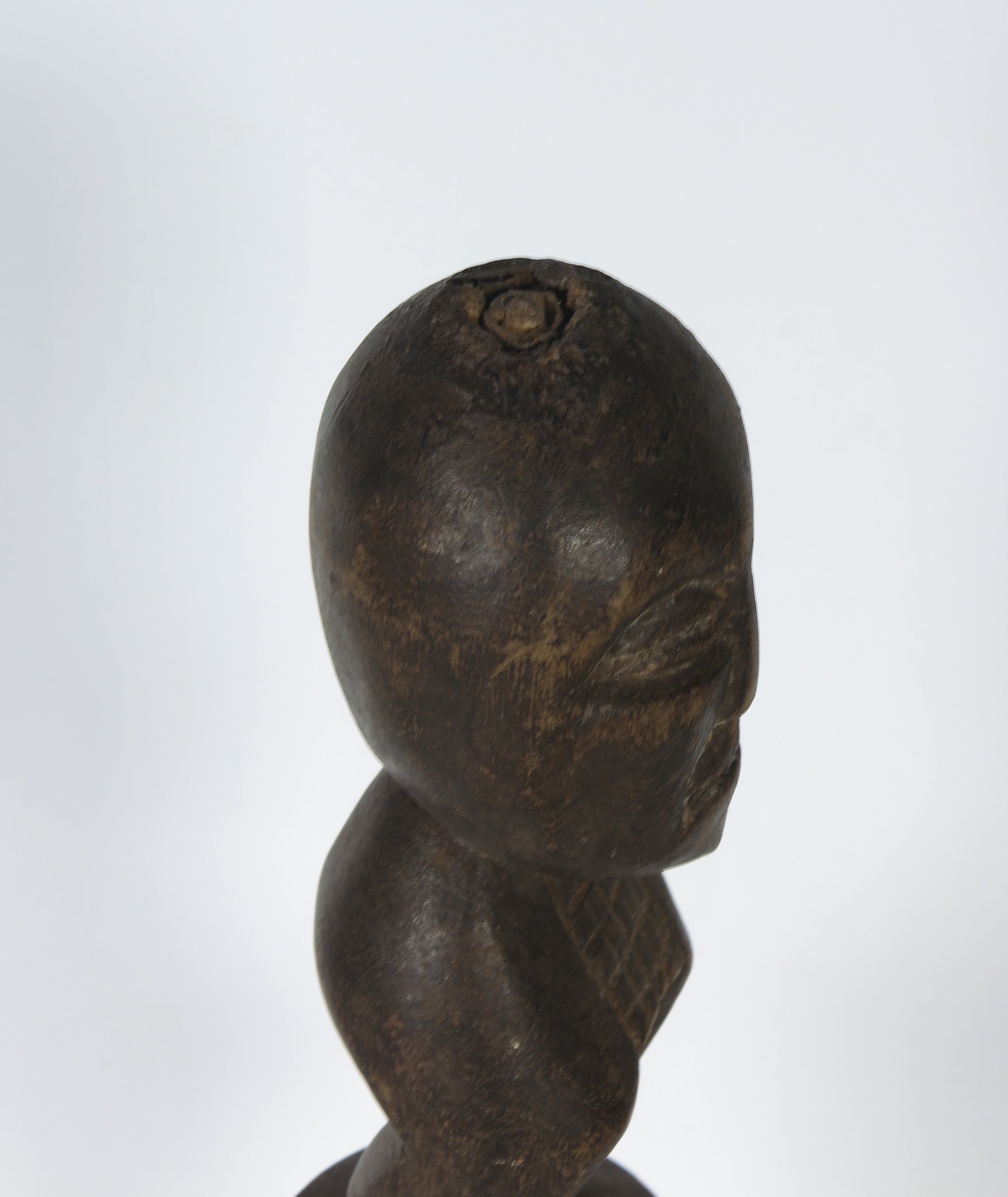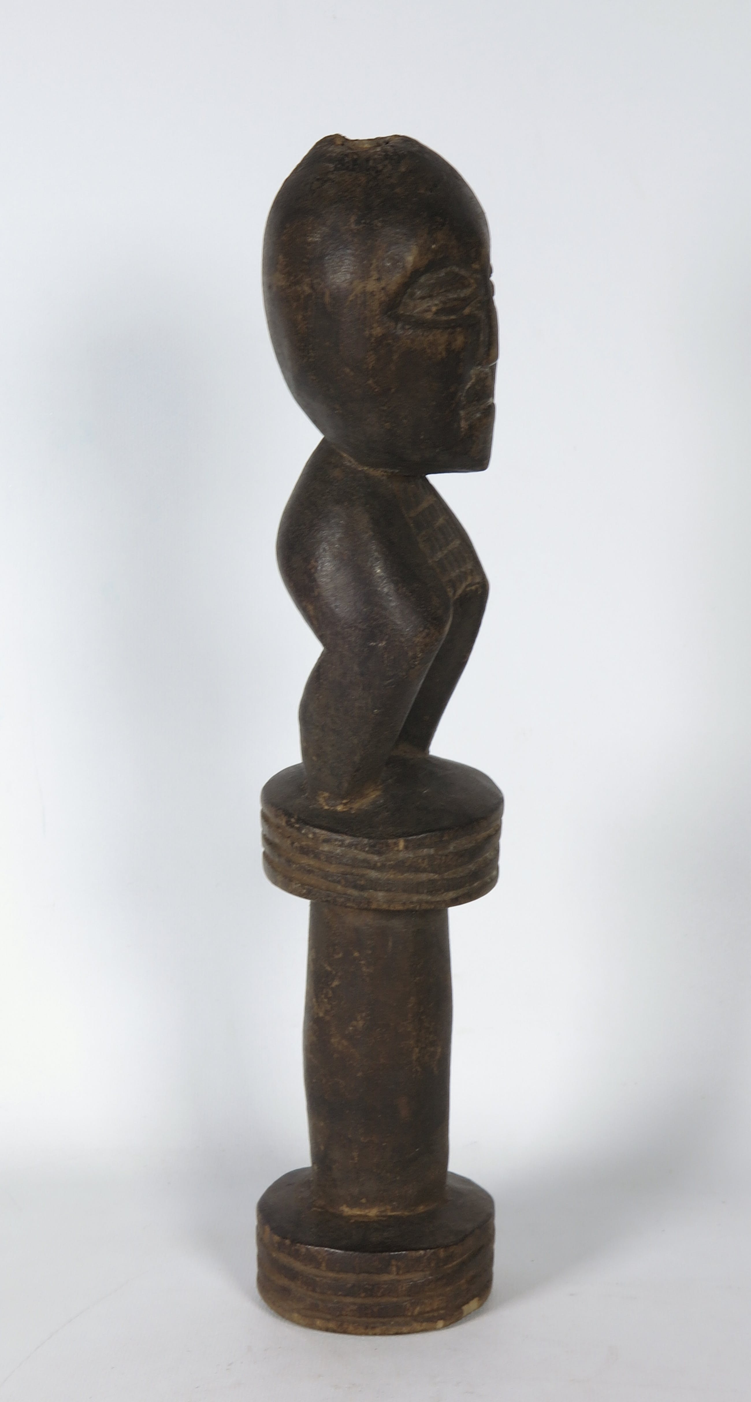Lichte gebruikssporen en krimpnaden. Aan bovenzijde (op hoofd) lijkt het alsof er wat materiaal ontbreekt. | |||