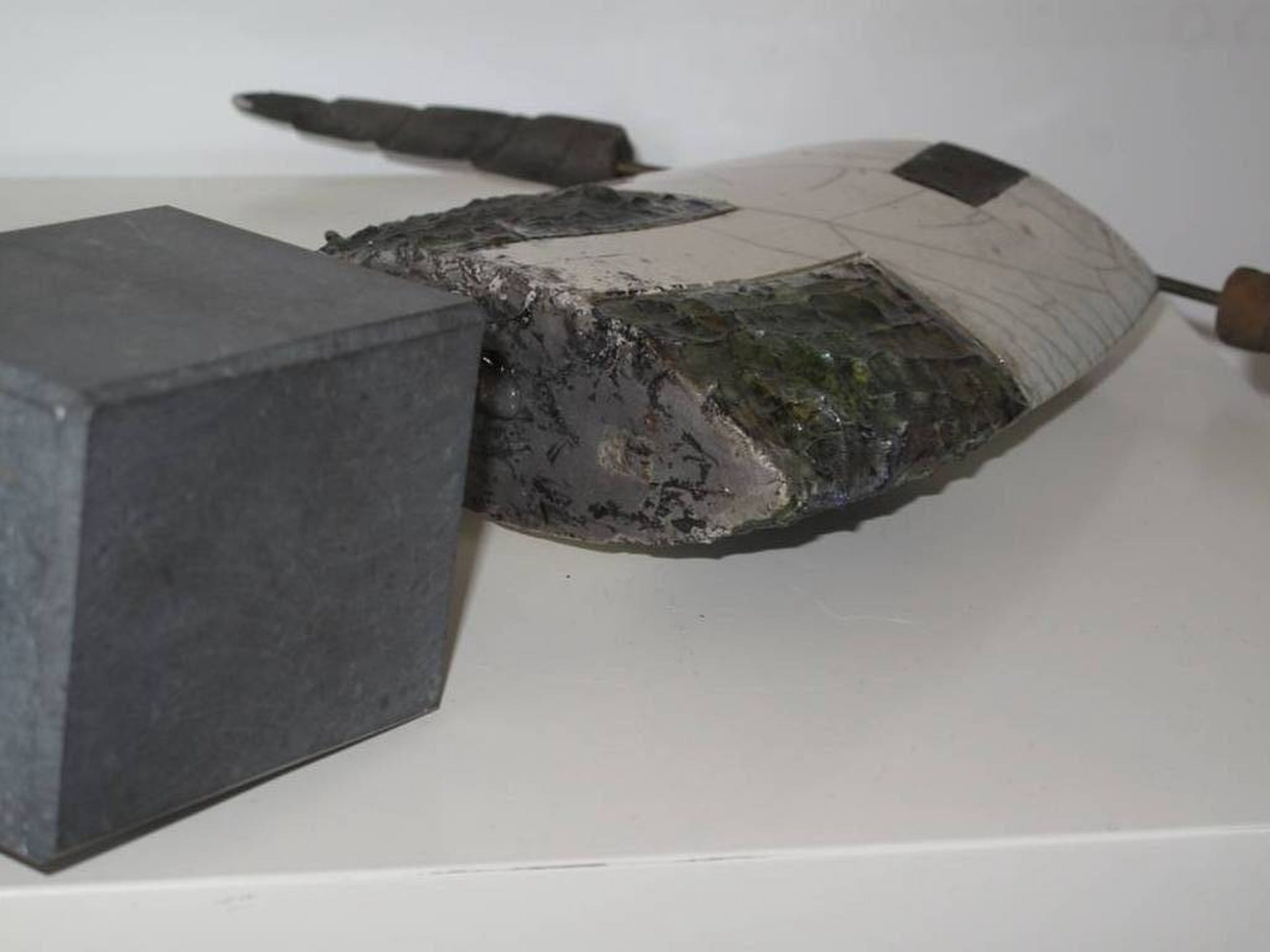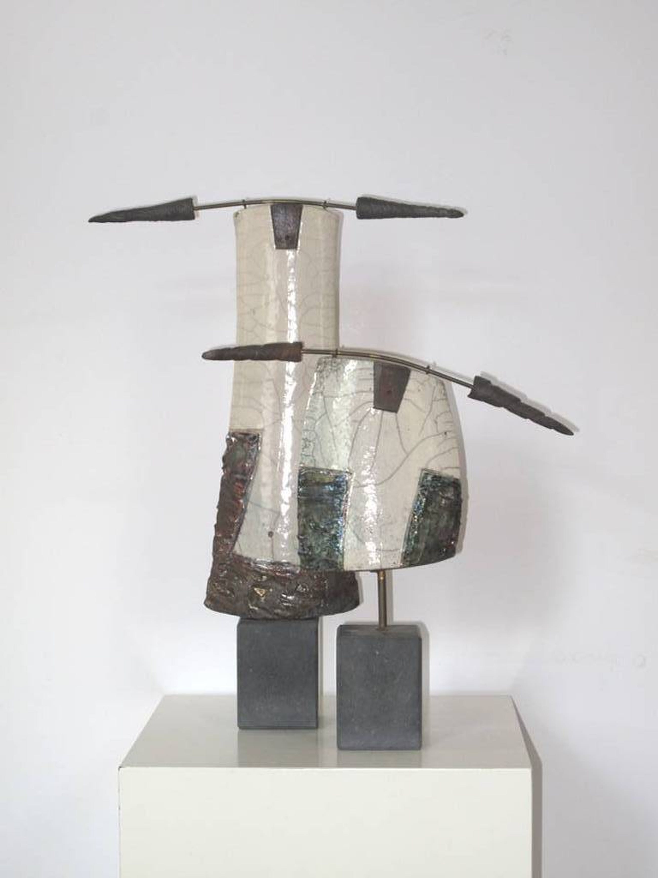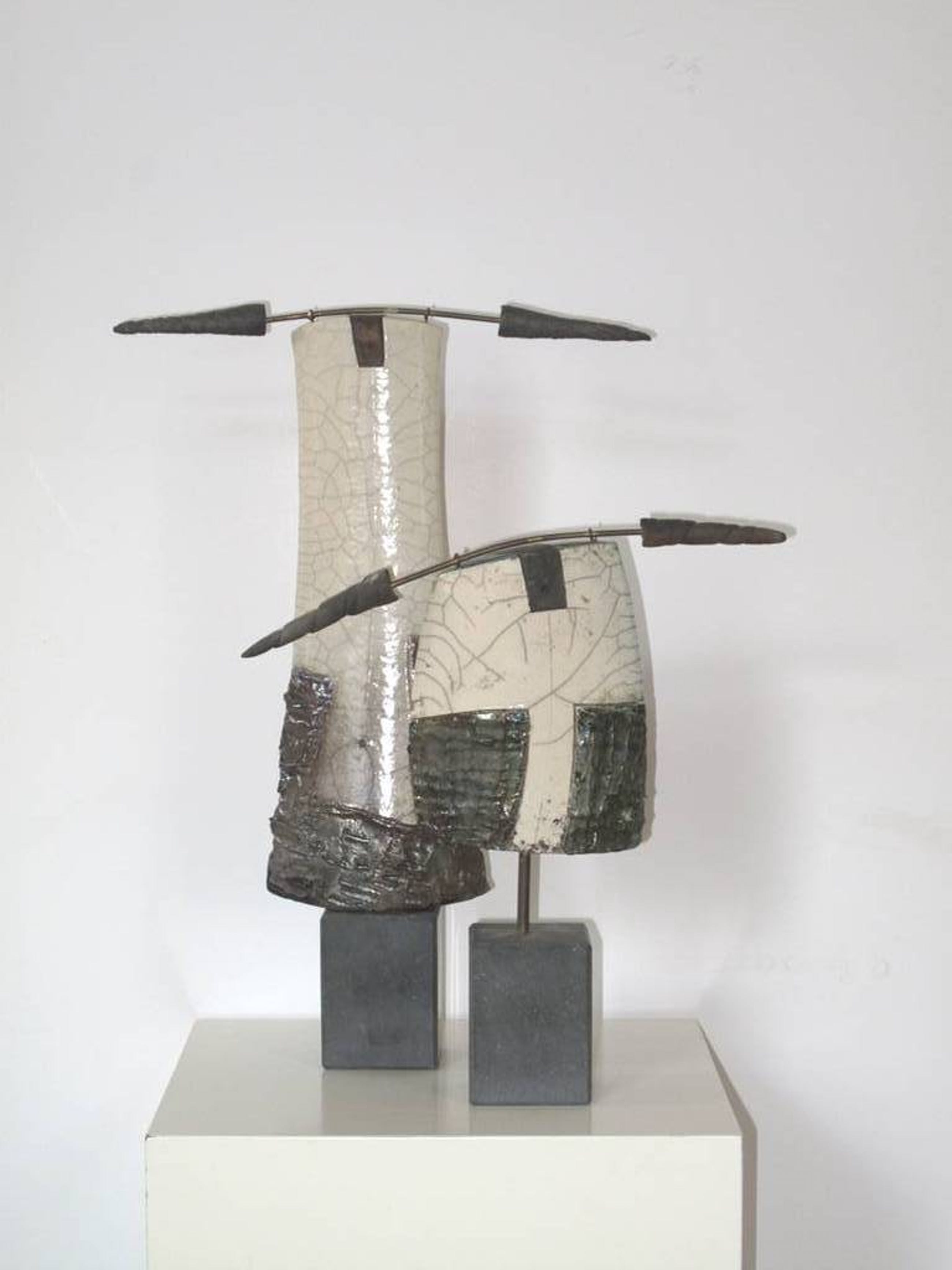 De afmetingen van het werk Evenwicht zijn 15-15-25 cm en van Gids 15-20-20 cm.