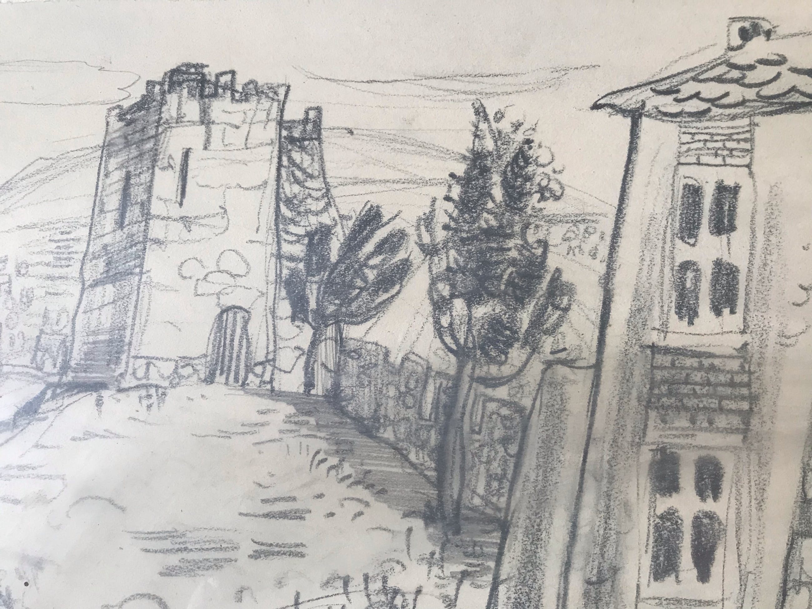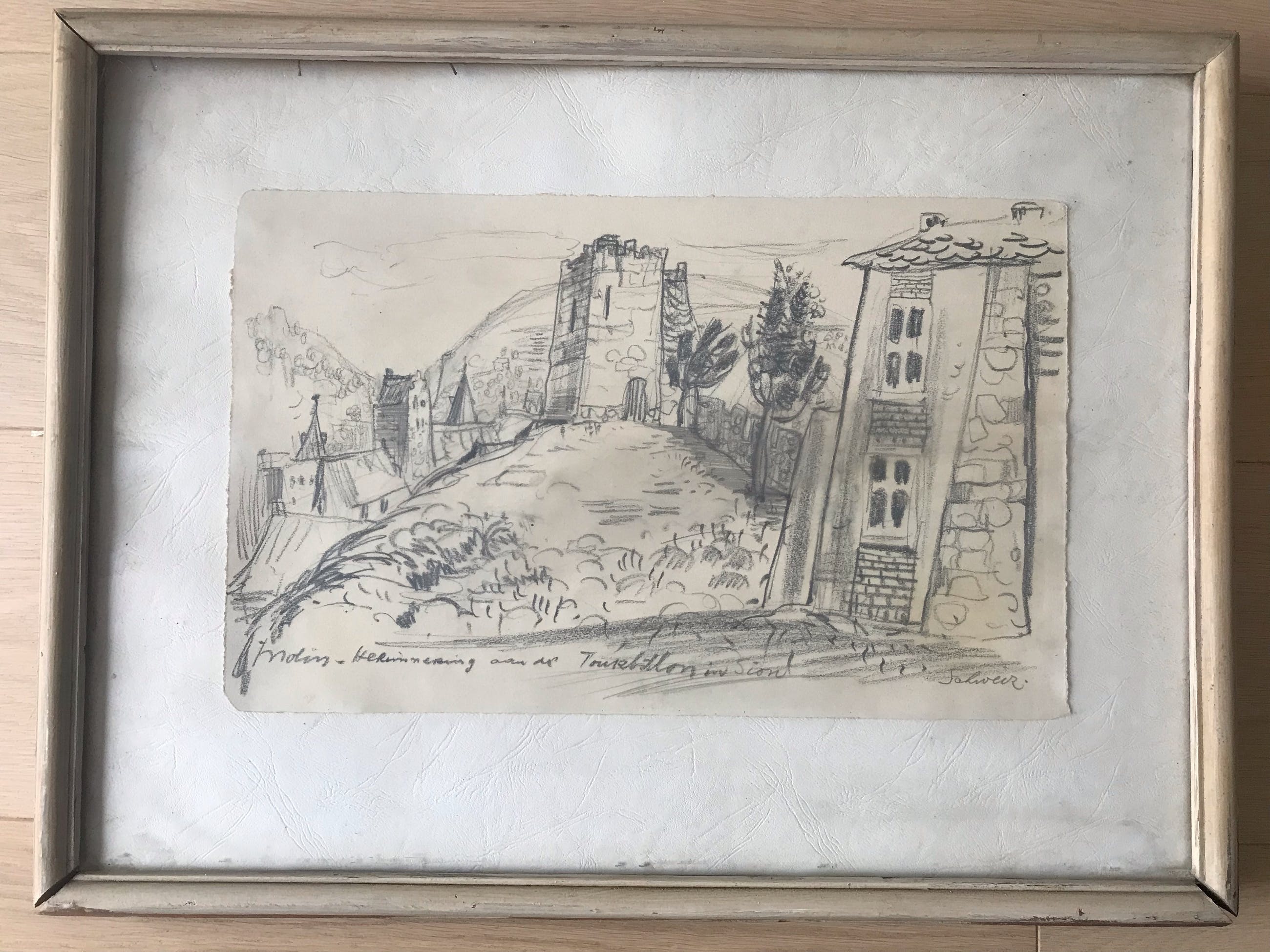 Dit is een schets, die sinds de 60/70er jaren in bezit van mijn moeder was. Aangezien de lijst niet meer mooi is, zal ik het werk zonder deze, opgerold in een kartonnen koker, opsturen.