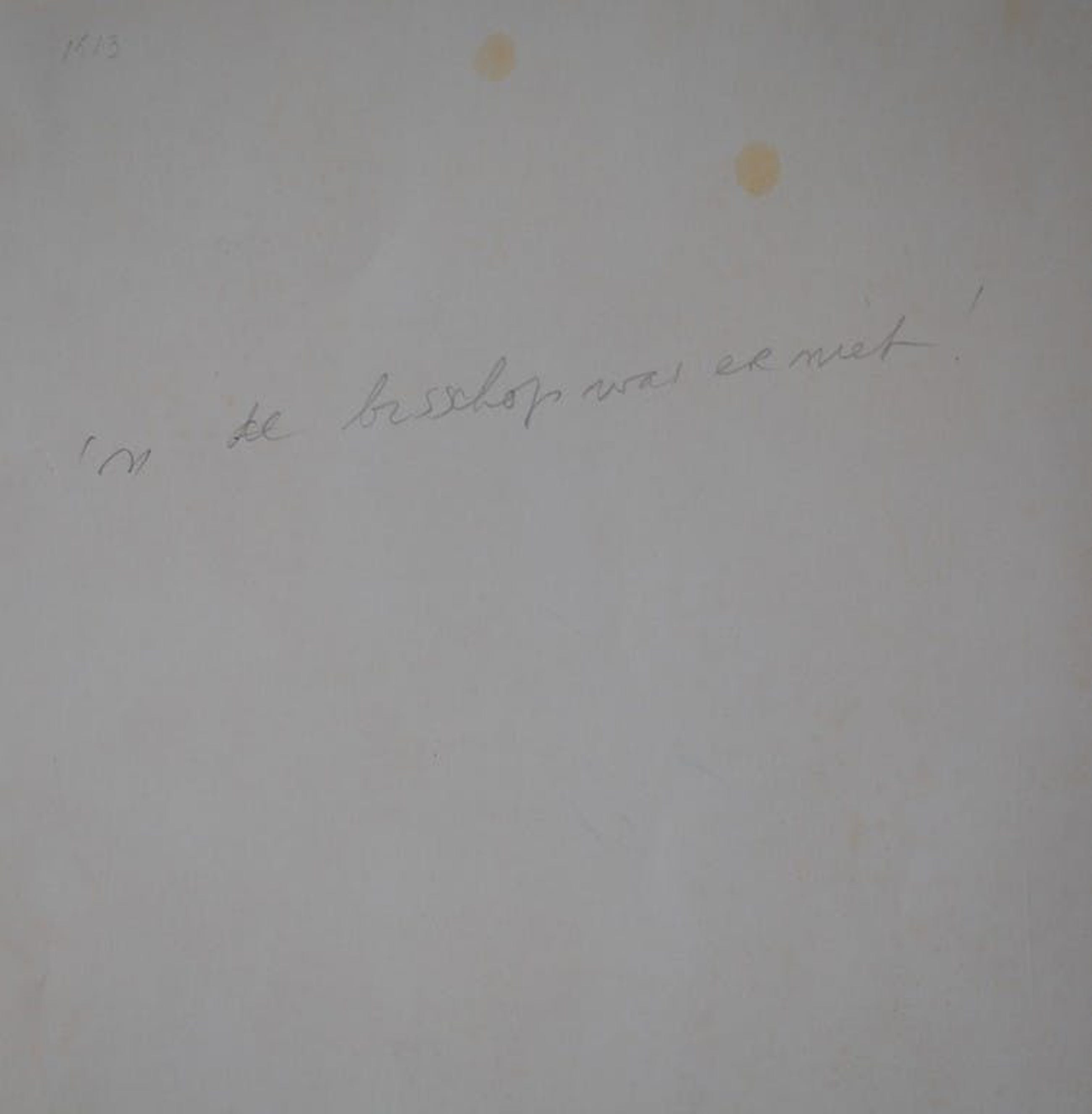 Op de achterzijde heeft hij met potlood de titel 'En de bisschop was er niet'! geschreven.