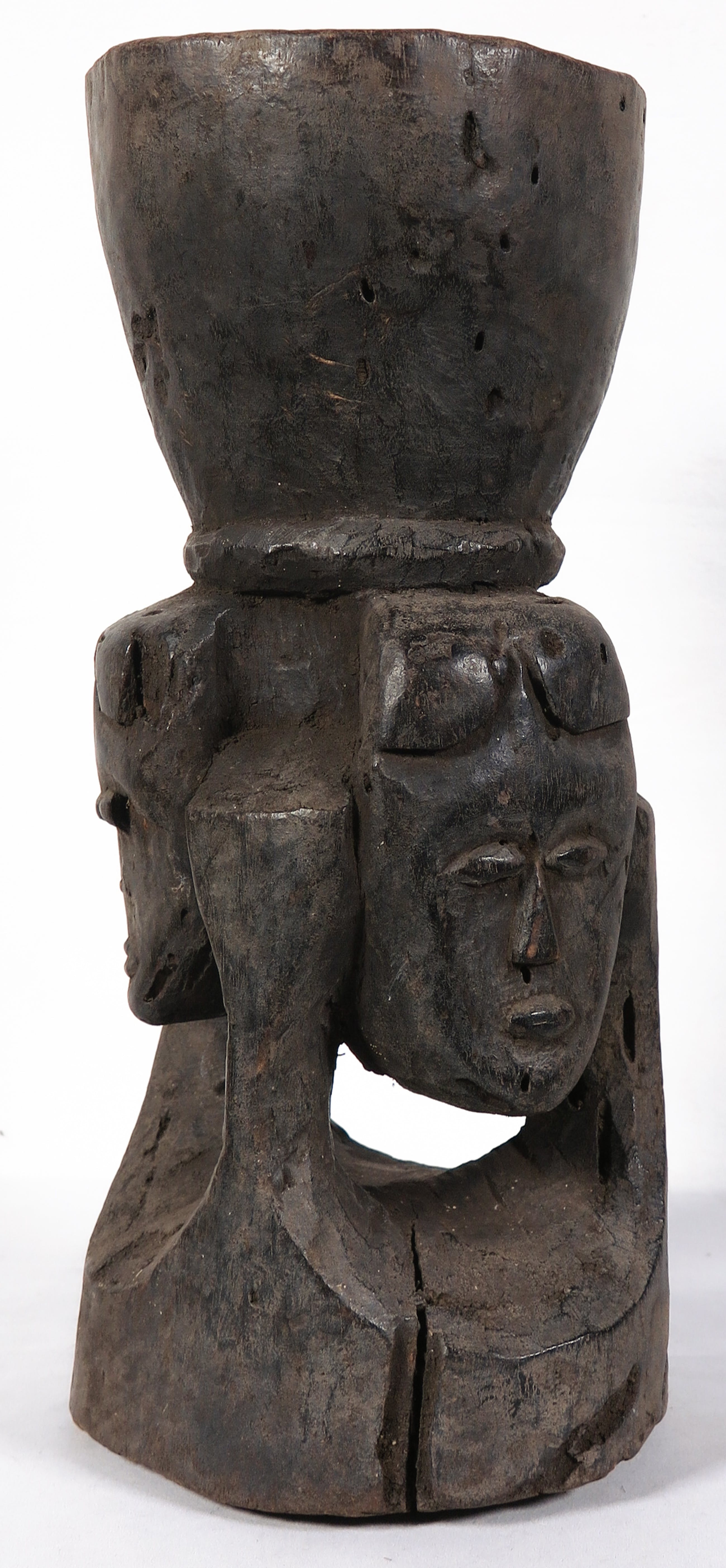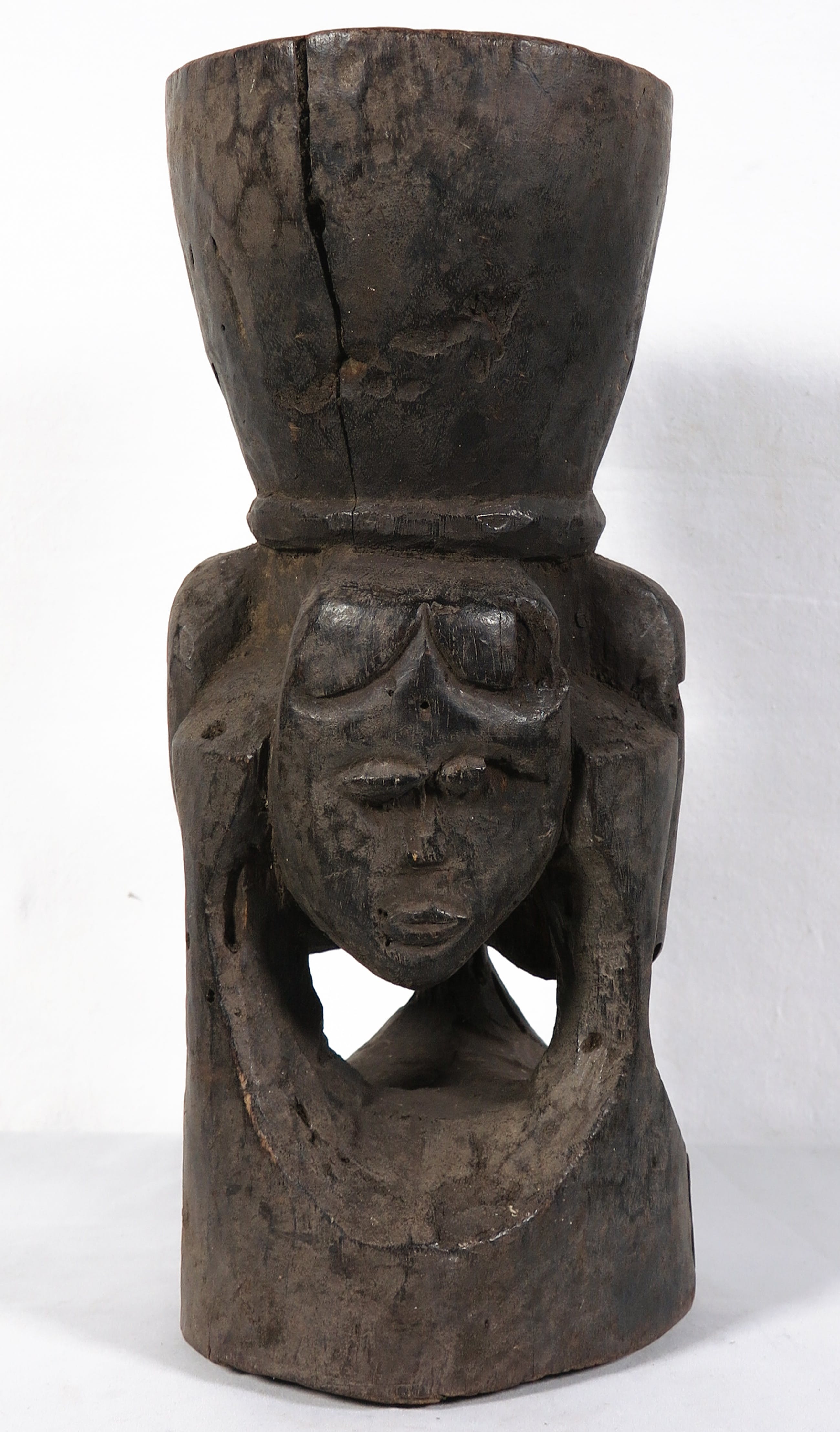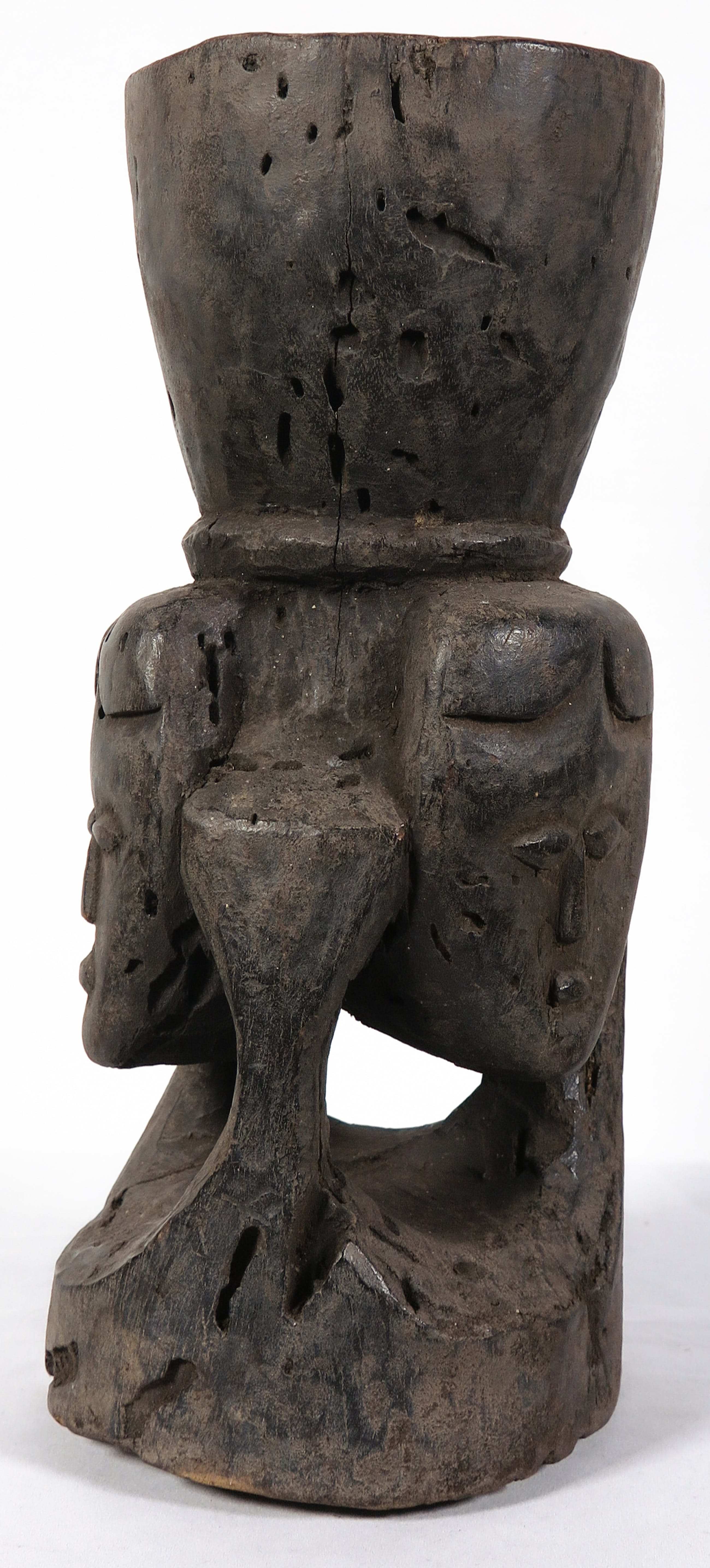 | Scheur aan de zijkant van de beker. Lichte gebruikssporen. Gaatjes in het hout als gevolg van een keverachtige. | |||||||||||