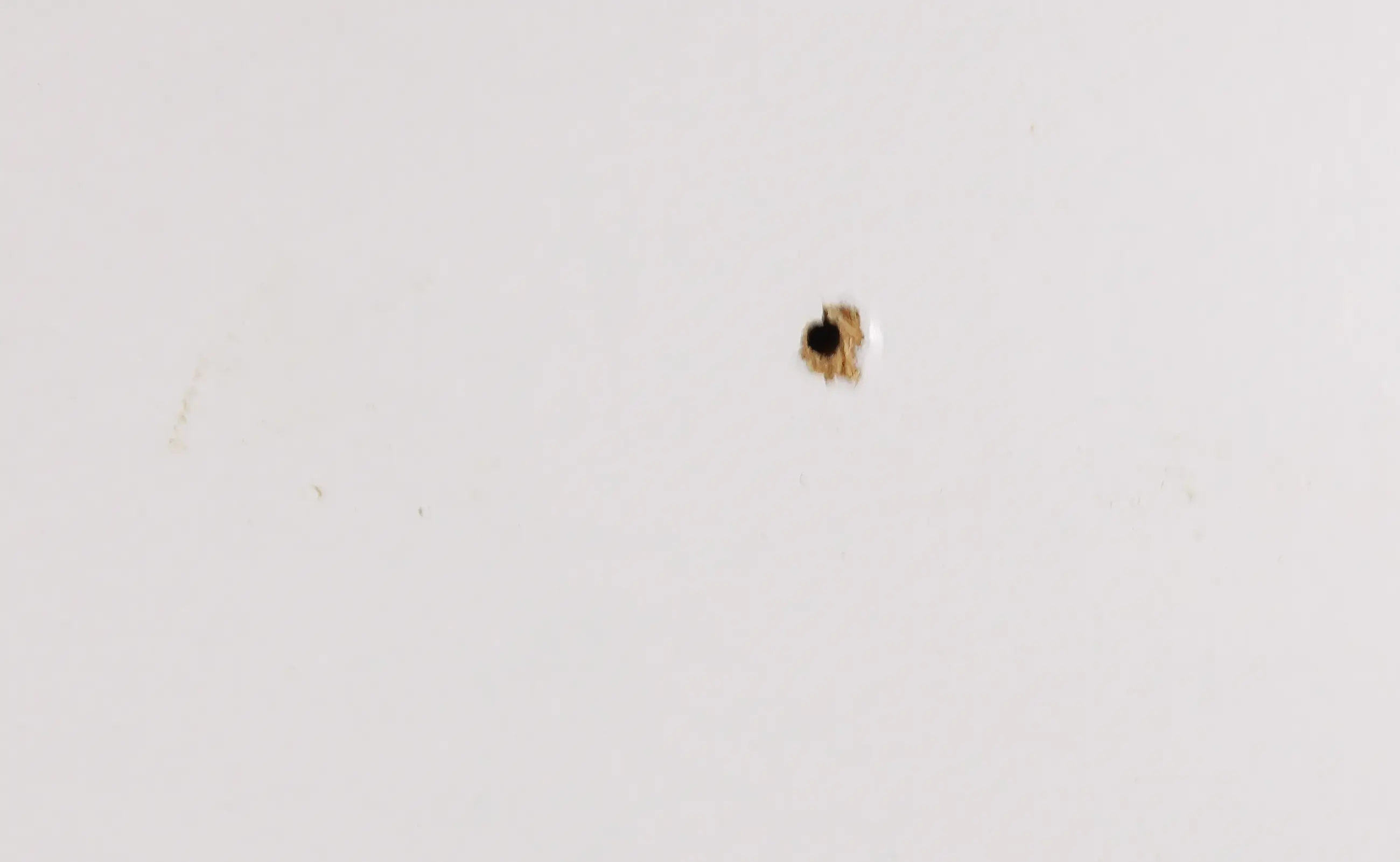 | Het is lastig te zeggen of het papier is verkleurd of dat dit de originele kleur van het papier is. Linker benedenhoek is gevouwen. Daarnaast wat gaatjes in het paneel. | |