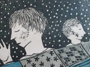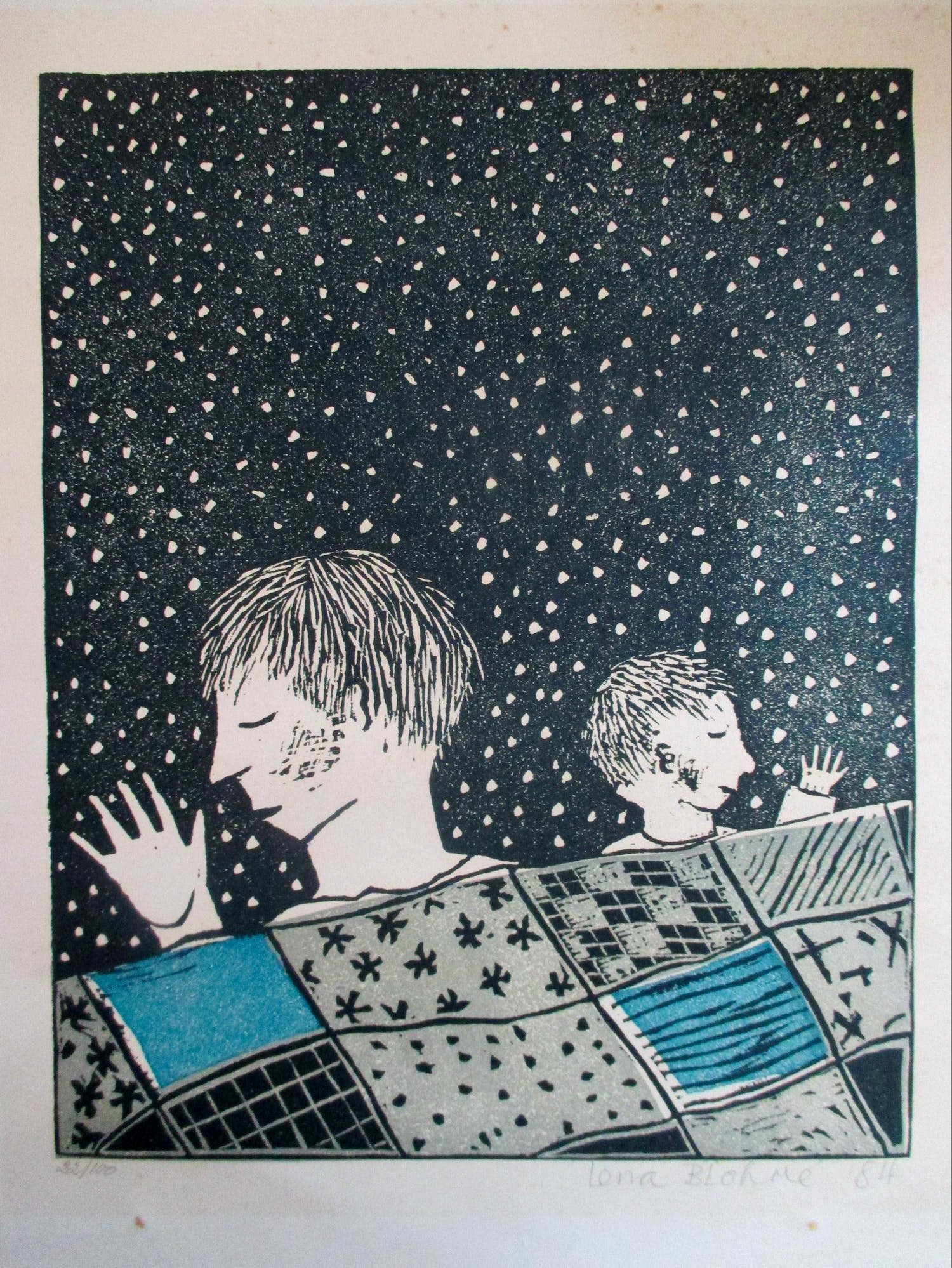 Lena Blohmé - Houtsnede met voorstelling van slapende kinderen