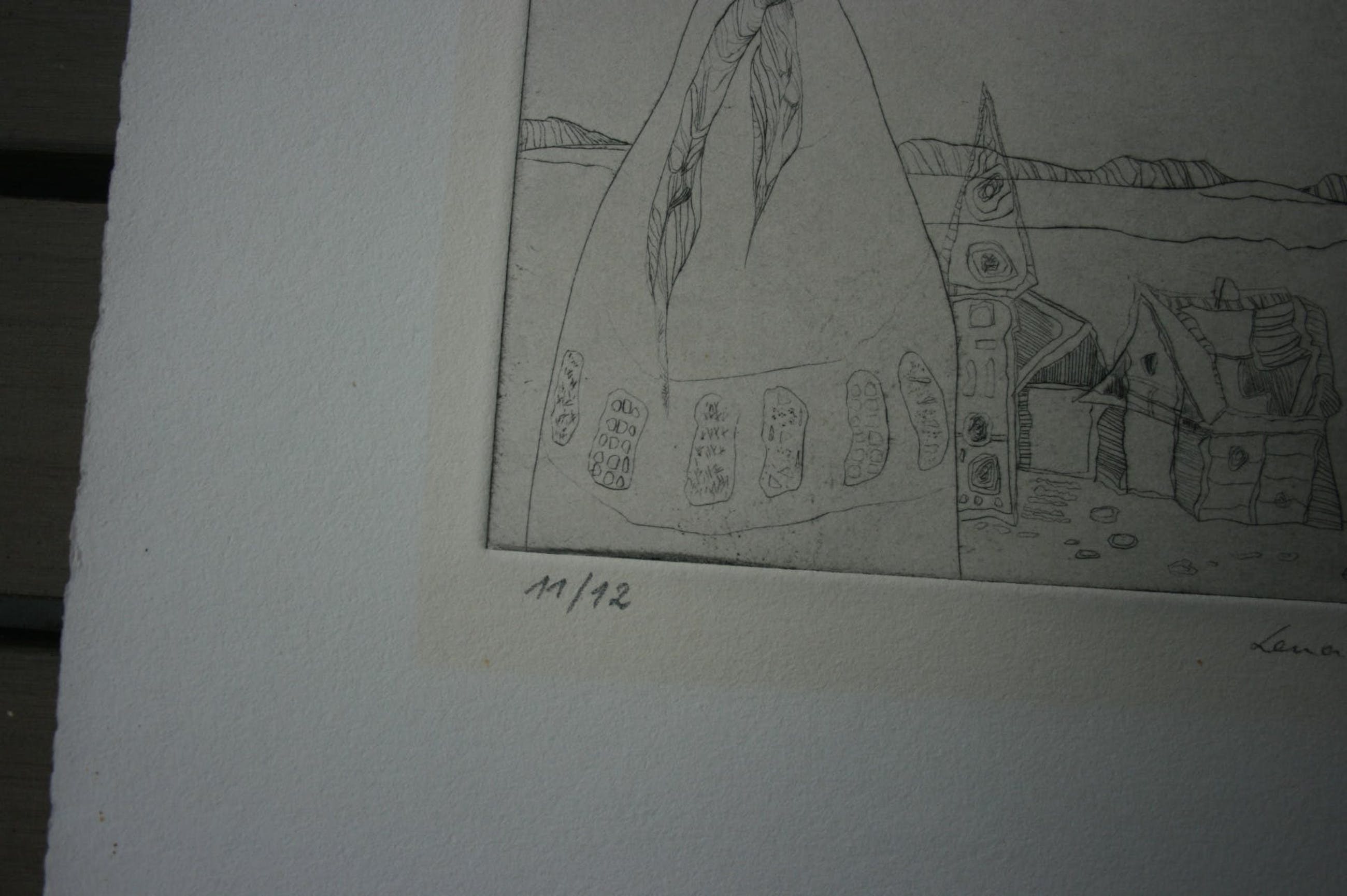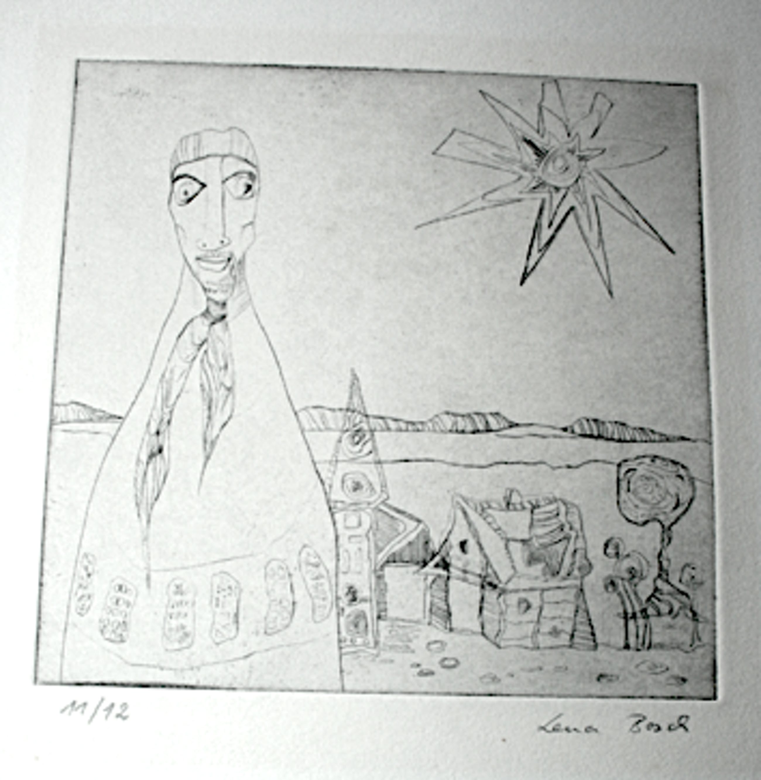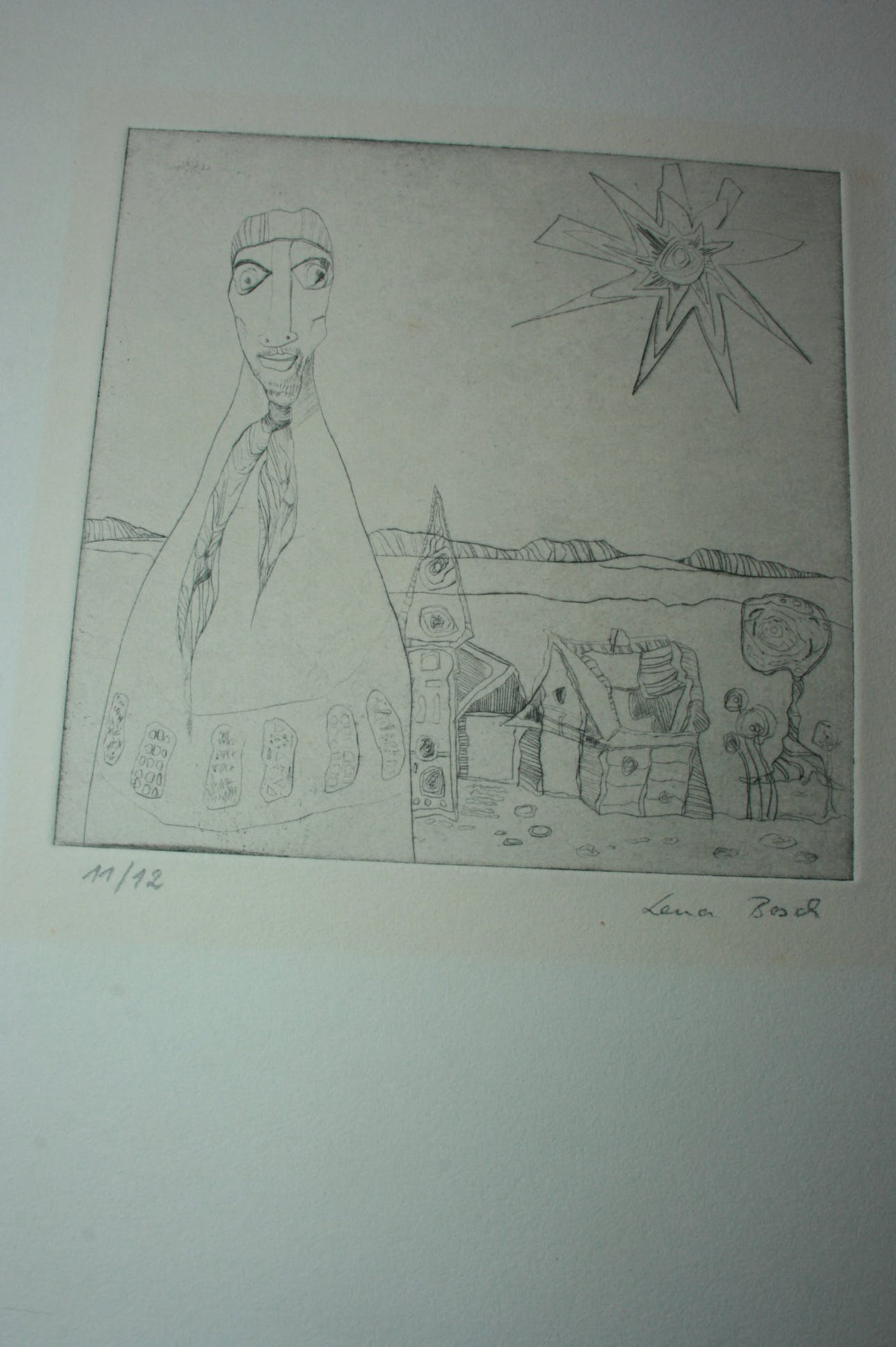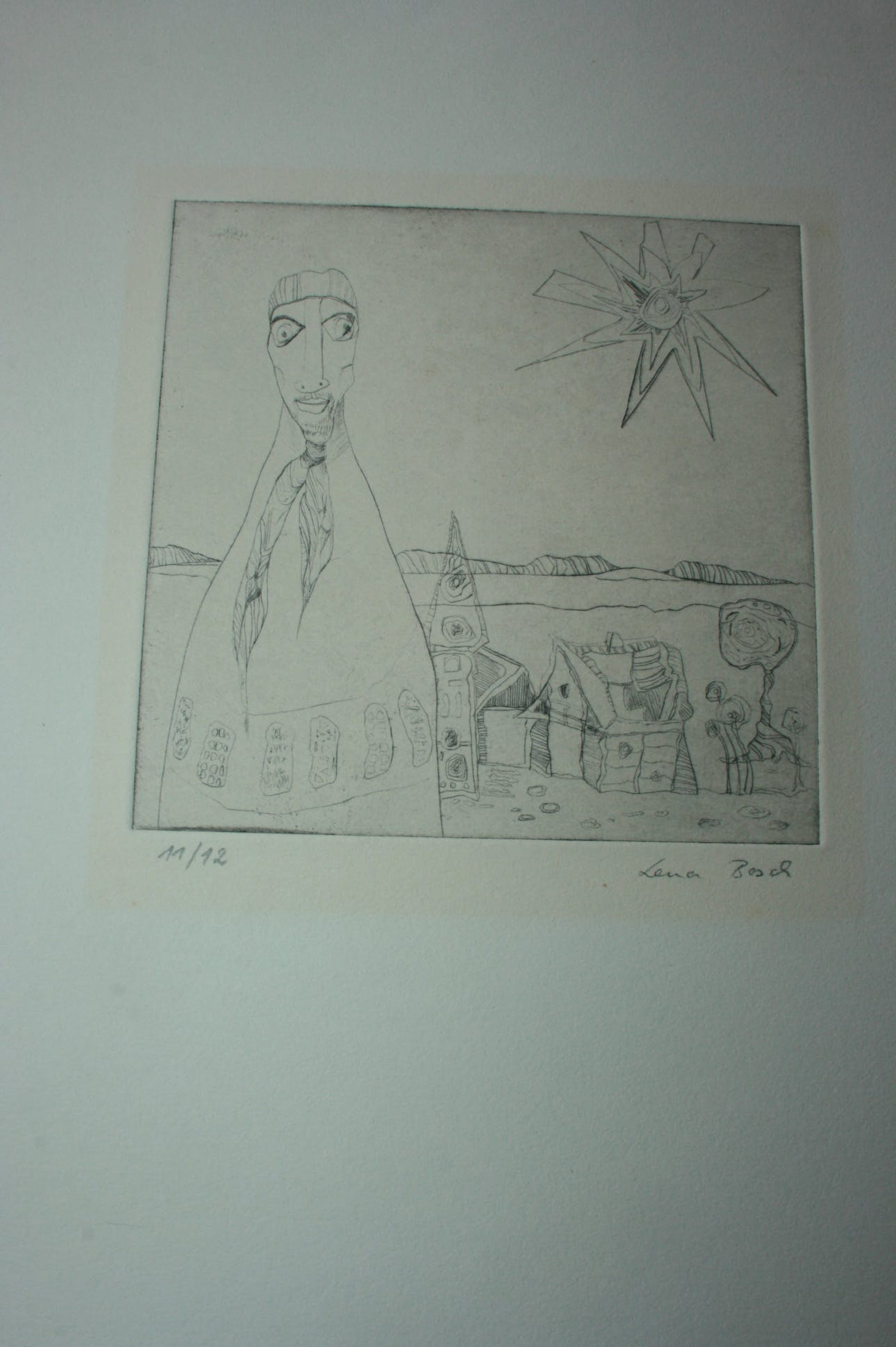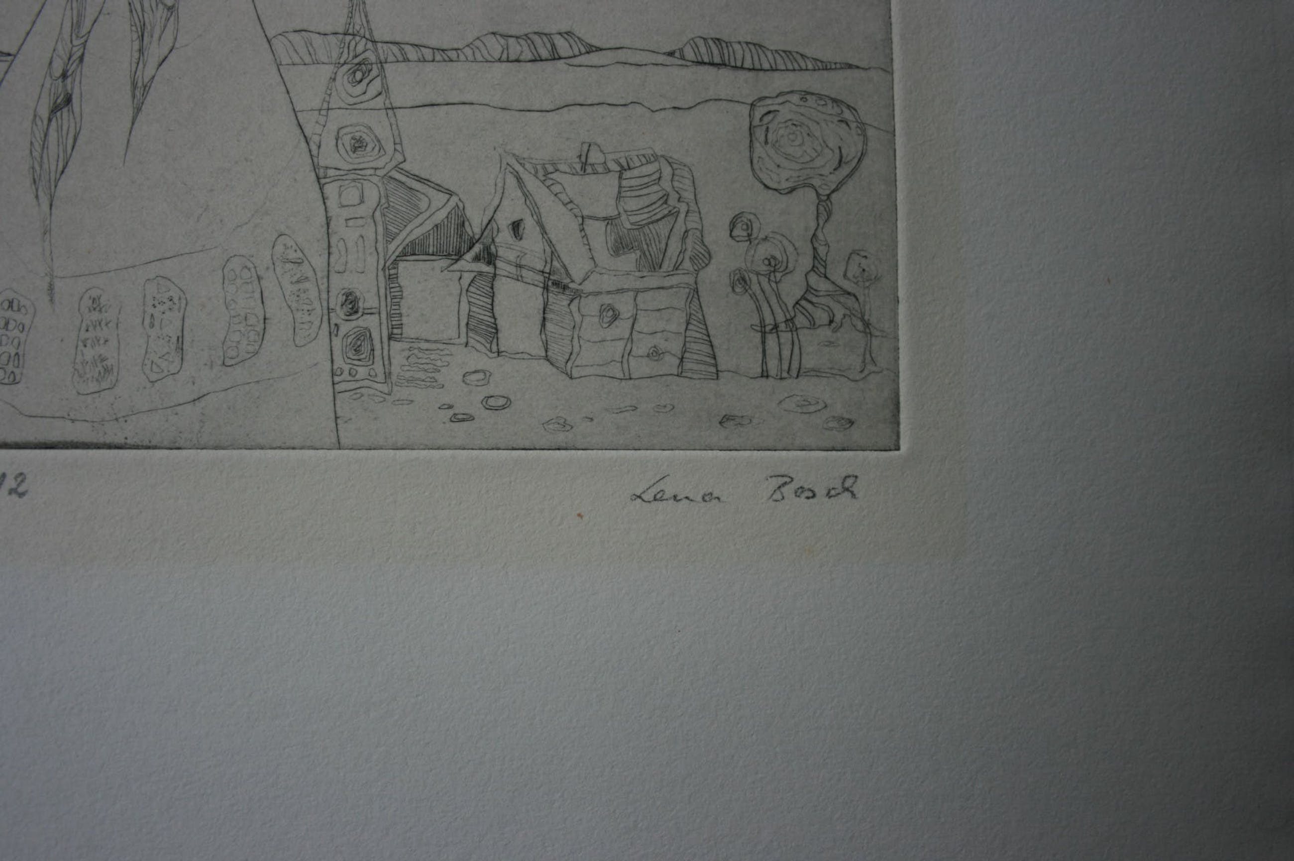 etsen. Gesigneerd Lena Bosch rechtsonder, genummerd 11/12 linksonder. Expressionistisch motief