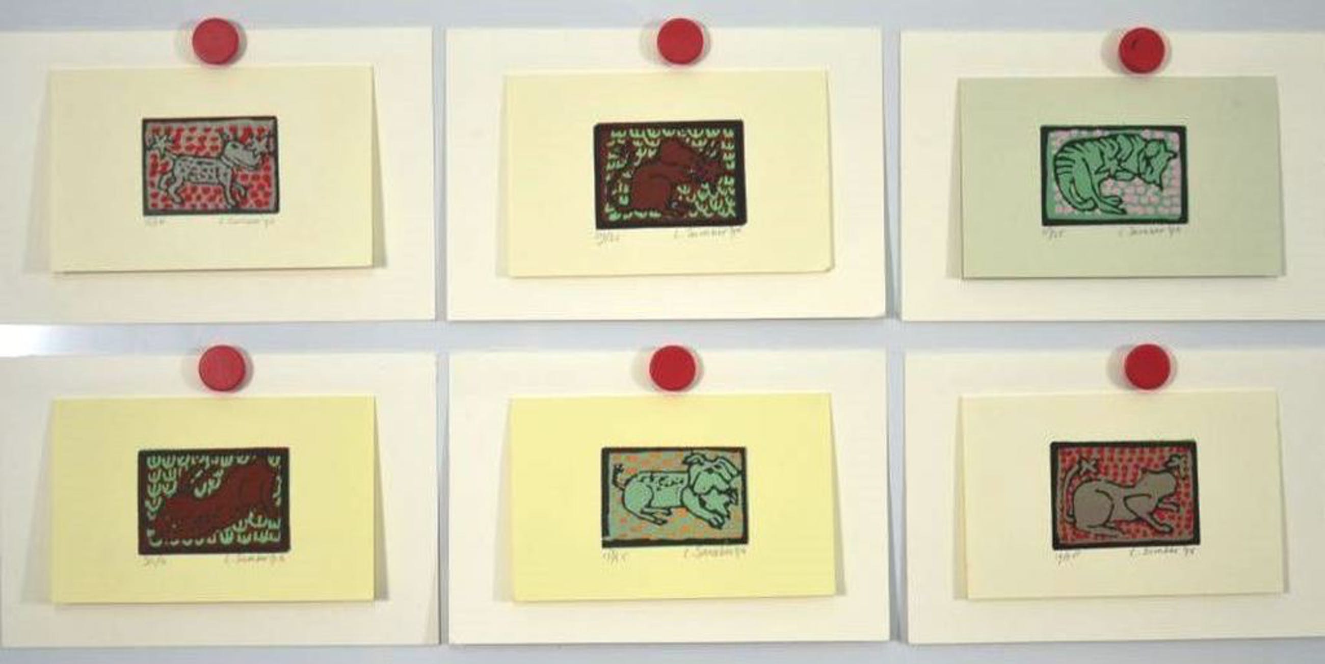Afmetingen beeld: (6x) 4,5 cm x 6,5 cm (afmetingen blad: 8,5 cm x 13 cm) en (1x) 11 cm x 11 cm (afmetingen blad: 16 cm x 21 cm)
