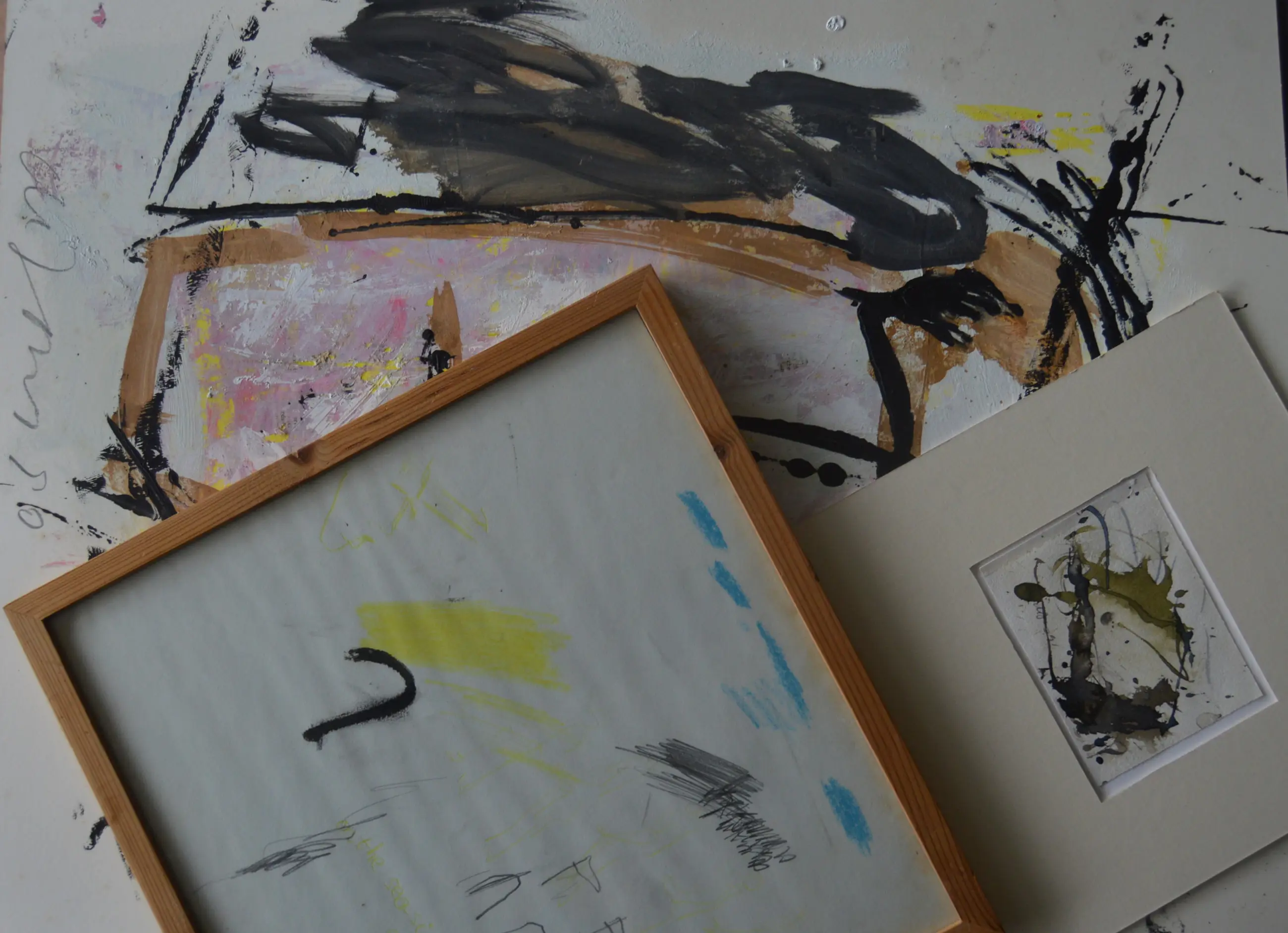 1. Acryl op karton; 65 x 50 cm. 1996. 2. Aquarel; in PP. Afmetingen 12 x 10 cm. PP; 35 x 25 cm. 1991. 3. Gemengde techniek. "On the seaside" Ingelijst achter glas. 36 x 36 cm. 1994. Alle 3 gesigneerd door de Jong.
