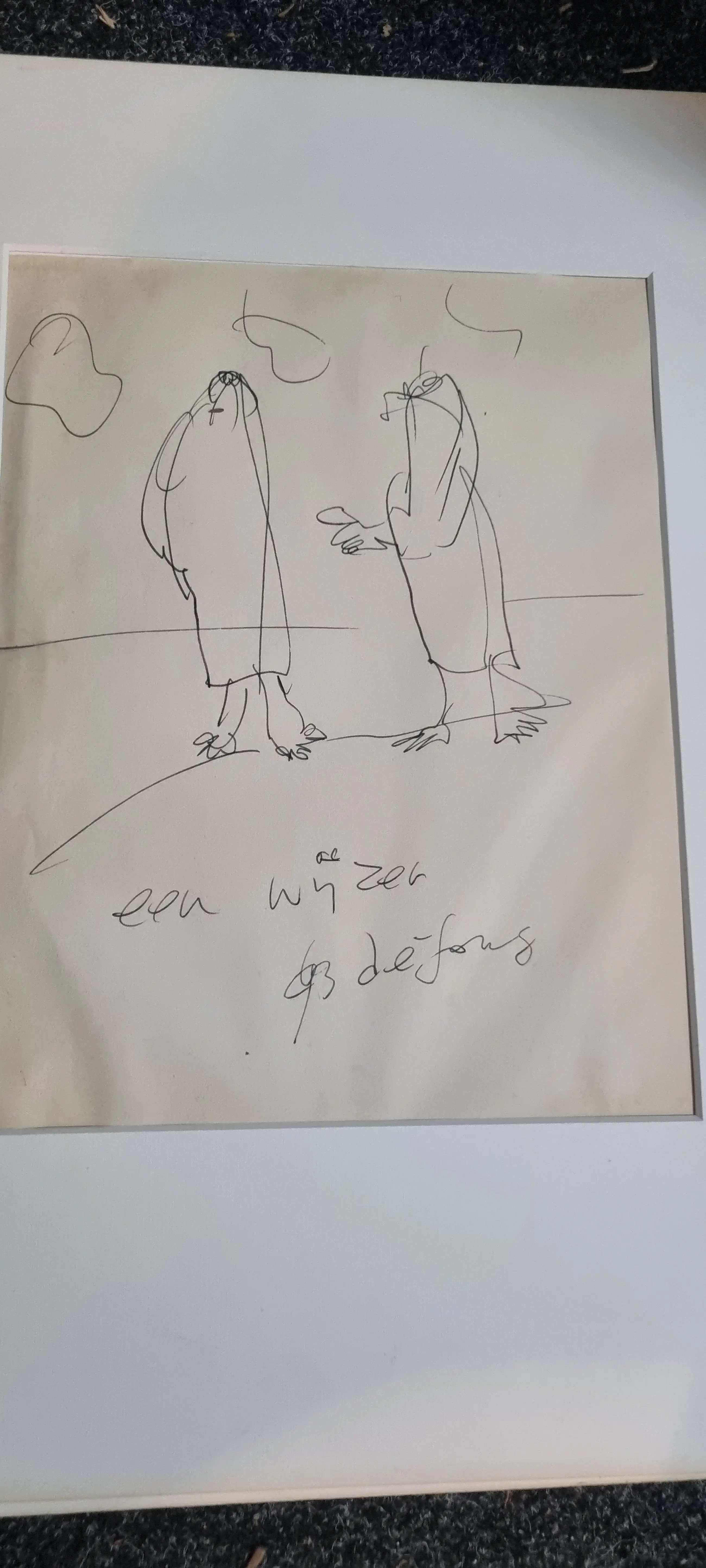 Tekening van Leo de Jong niet ingelijst met passpartou