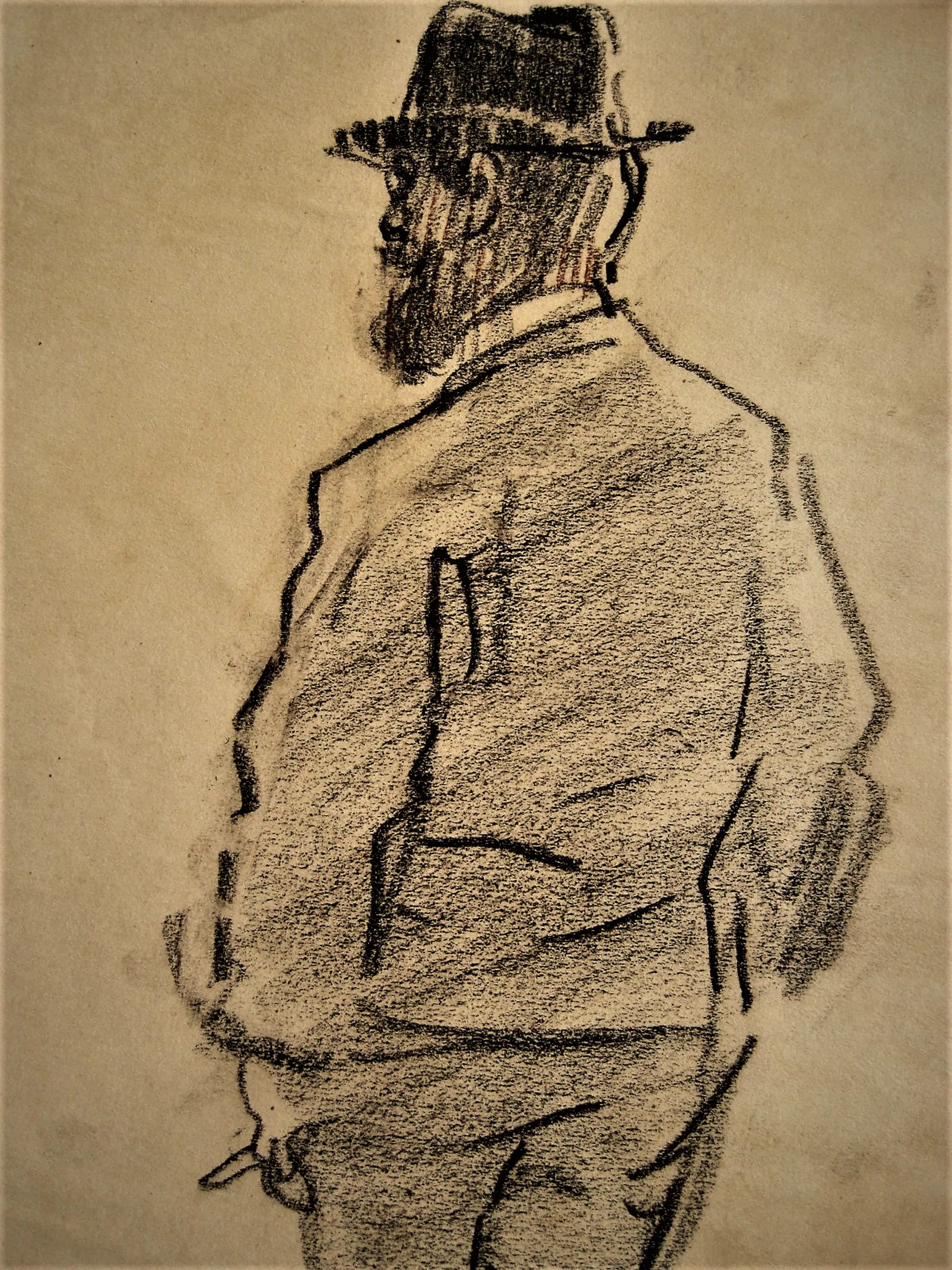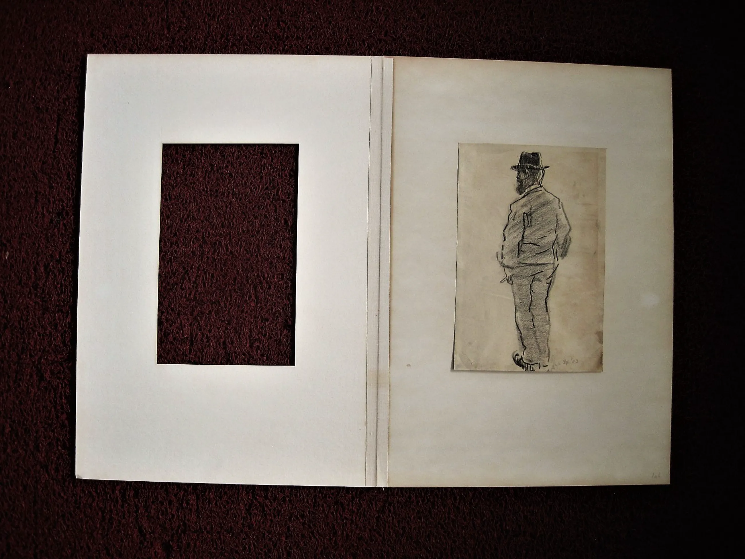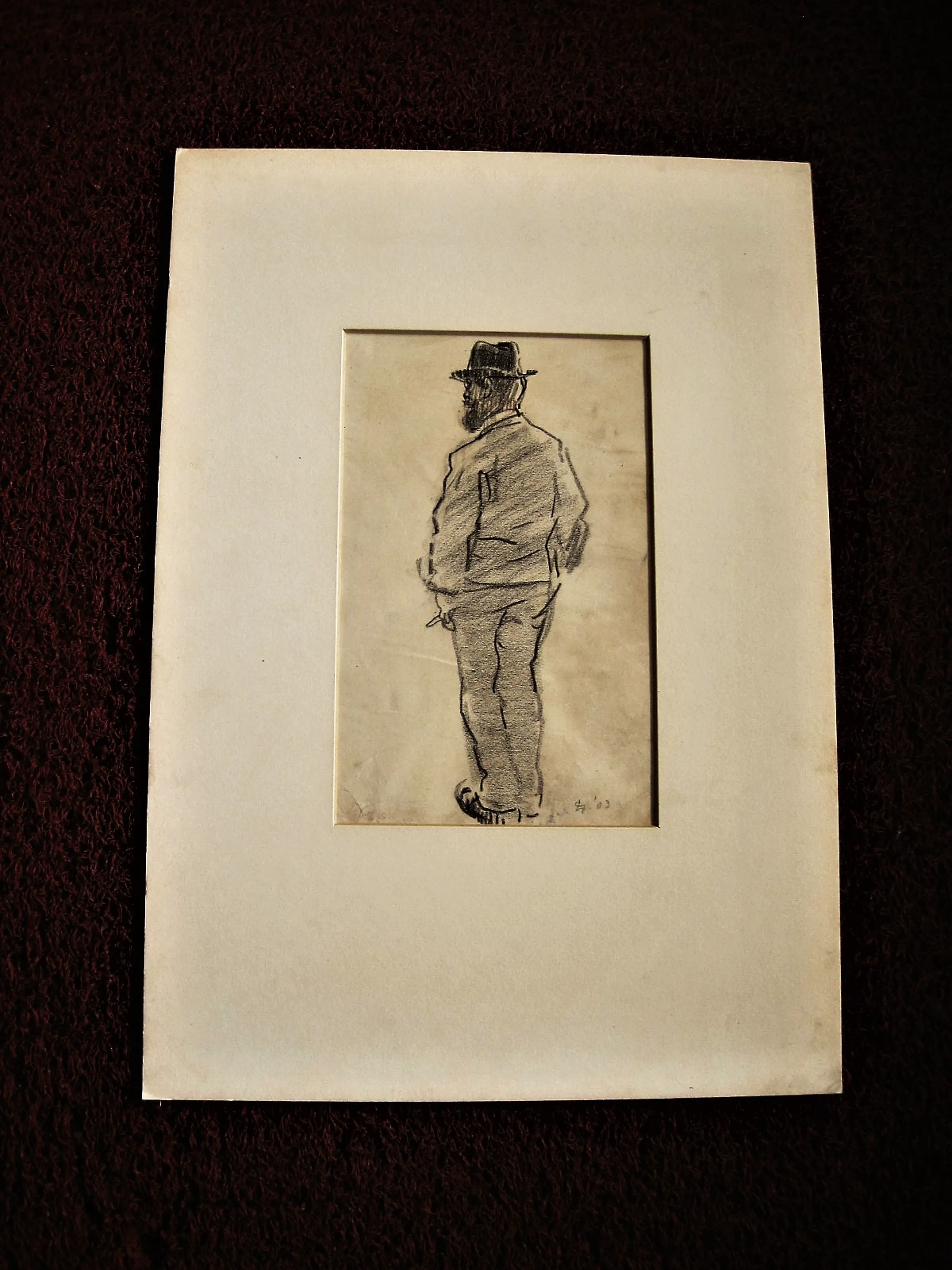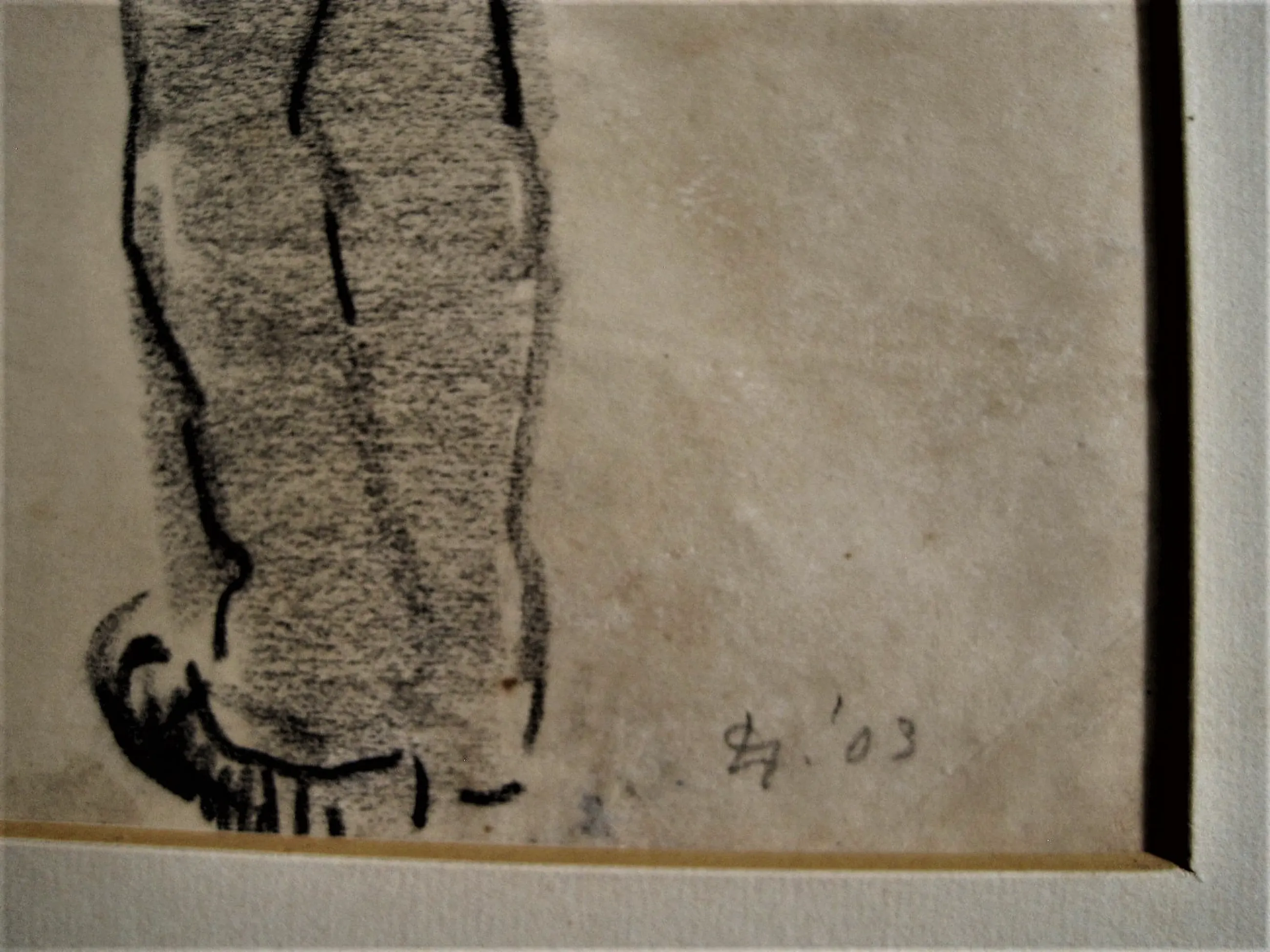 - Originele, in 1903 door de franse neo impressionistische schilder, tekenaar en beeldhouwer Leo Gausson (1860-1944) getekend portret van de Franse componist erik Satie (1866-1925) Krachtige houtskool en pastelkrijt op papier tekening, rechtsonder gemonogrammeerd en gedateerd met potlood. Het portret verkeert in redelijk goede conditie. Het papier vertoont wat (houtskool)vlekken en kleine vouwen. Bladmaat van het papier bedraagt 26x18cm.