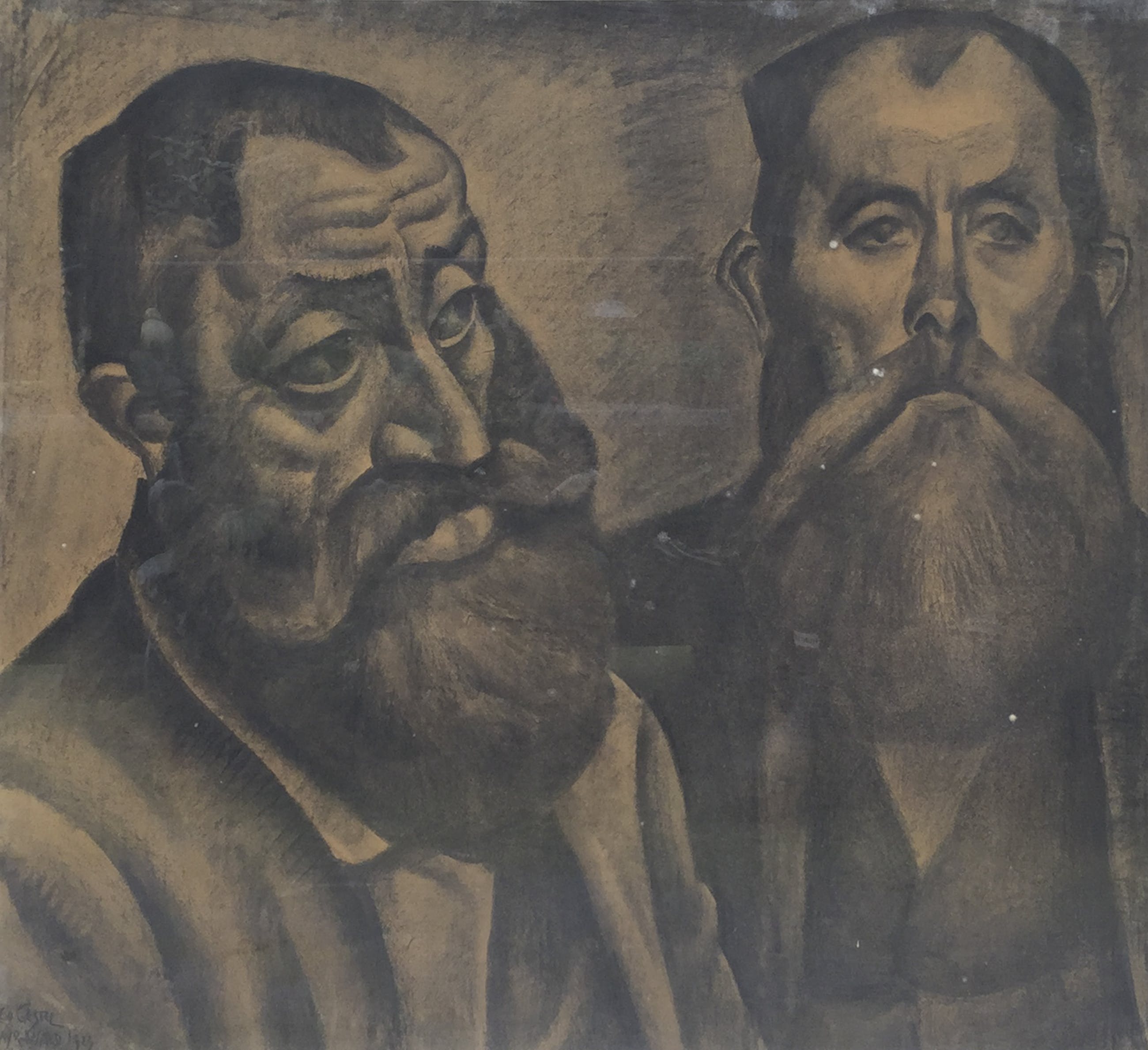 Papier verkleurd door de tijd, bevat witte vlekjes van schimmel/vocht, passe-partout verkleurd door de tijd en bolt iets door vochtschade, lijst bevat oppervlaktevuil en slijtschade door de tijd. | |