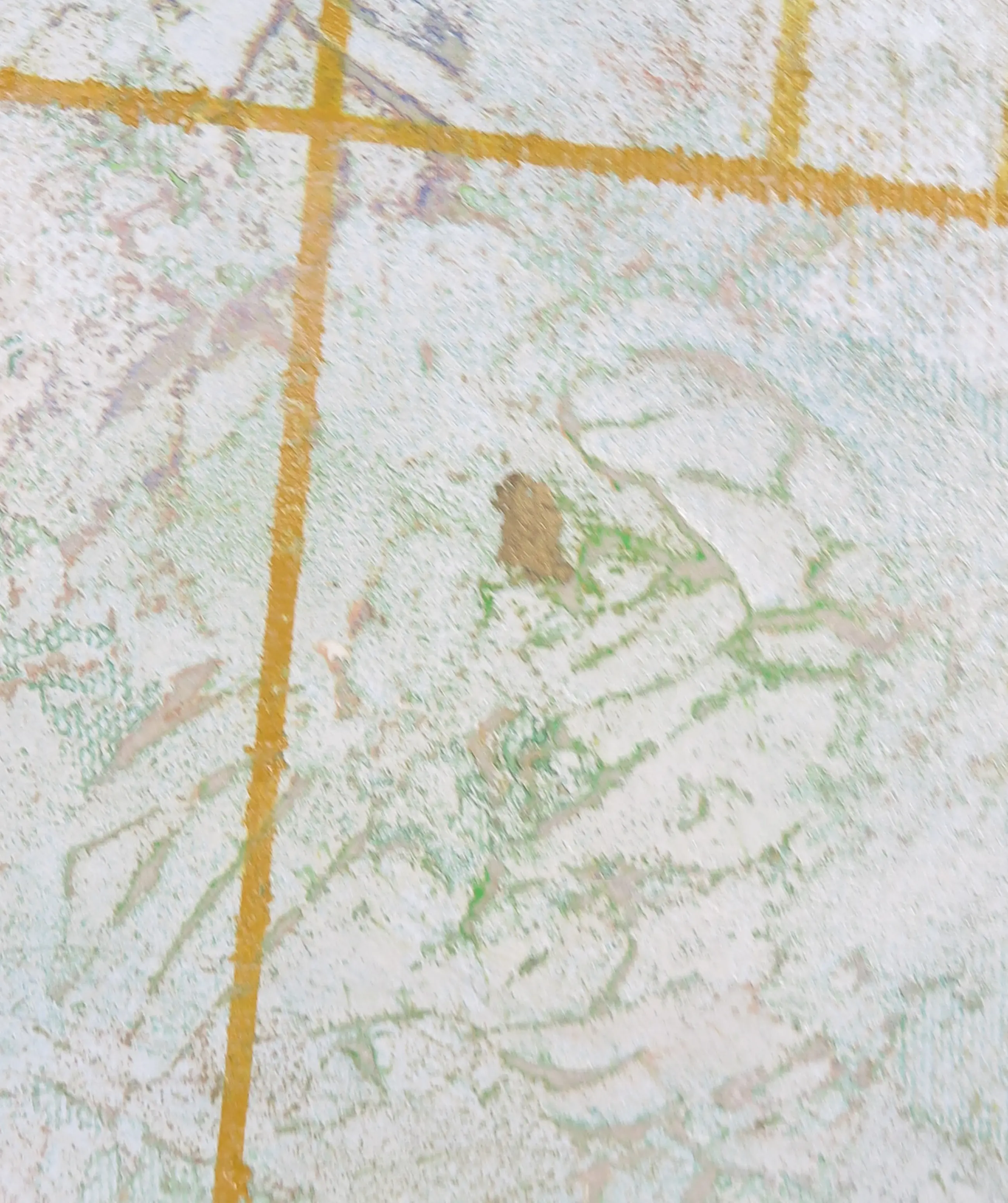 | Op een klein plekje lijkt er wat verfverlies te zien. (Zie detailfoto) | |