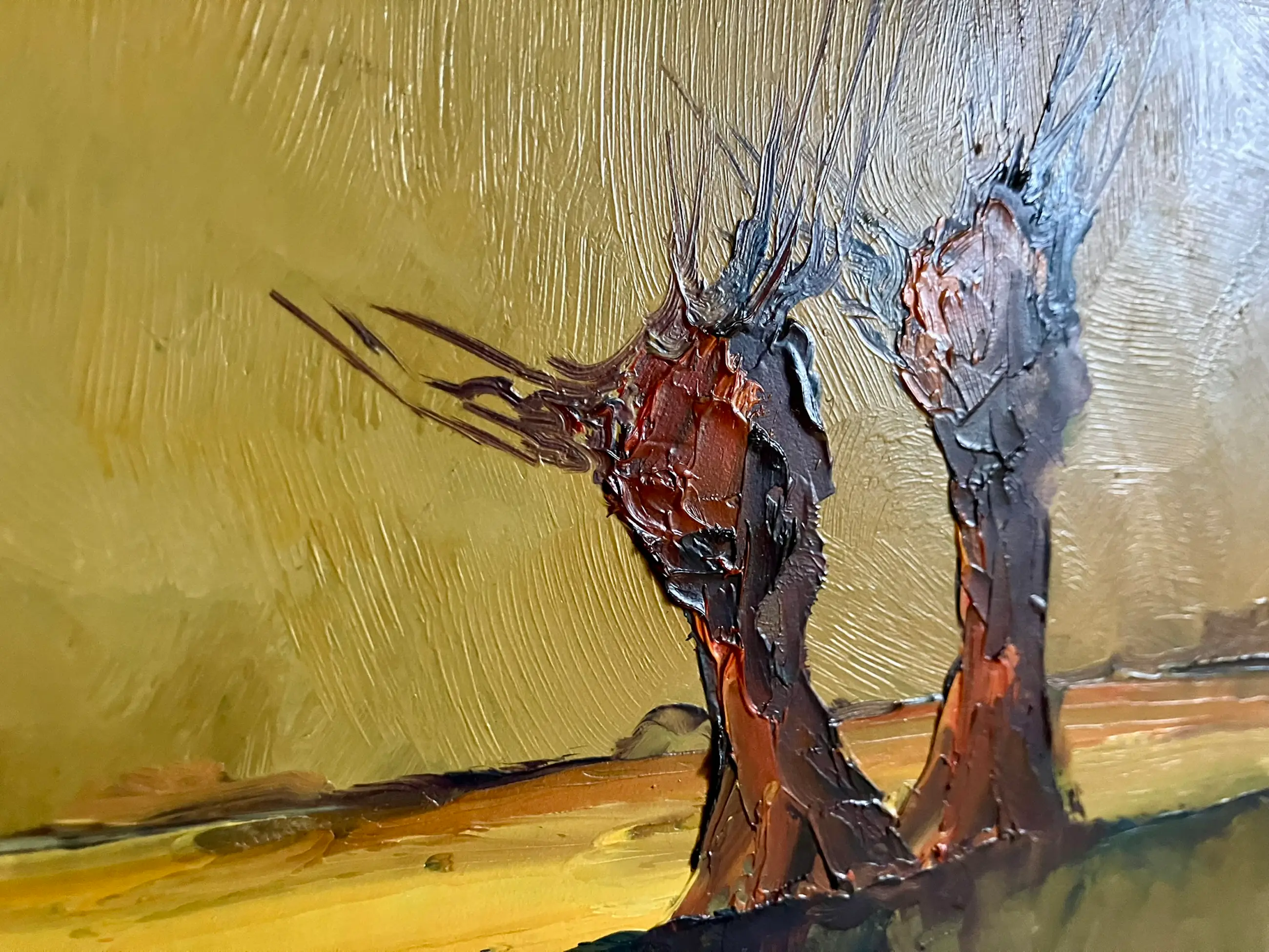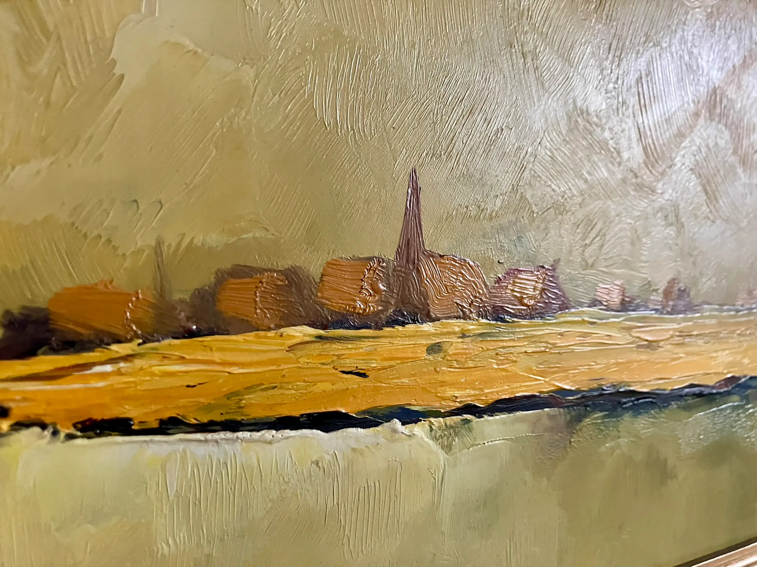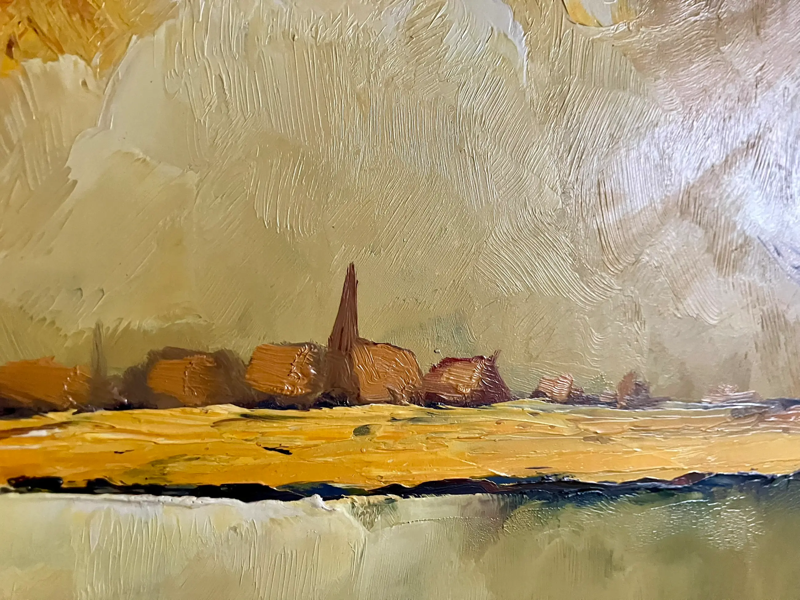 Dit schilderij is een werk van de Antwerpse kunstenaar Leo Jordaens (1944–2000). Het is een olieverfschilderij, meestal vervaardigd op paneel of hardboard, waarop hij vaak een paletmes gebruikte om textuur te creëren.