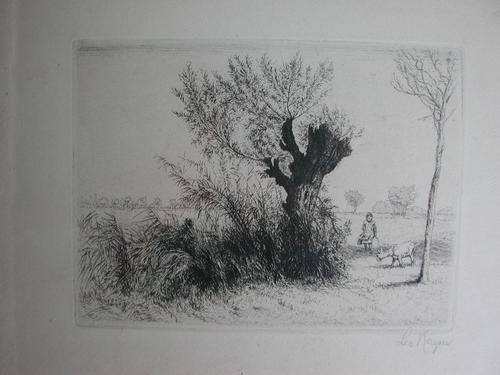 Leo Leopold Kayser - Feinste Radierung um 1920 Kind mit Ziege in Landschaft bei Darmstadt, signiert