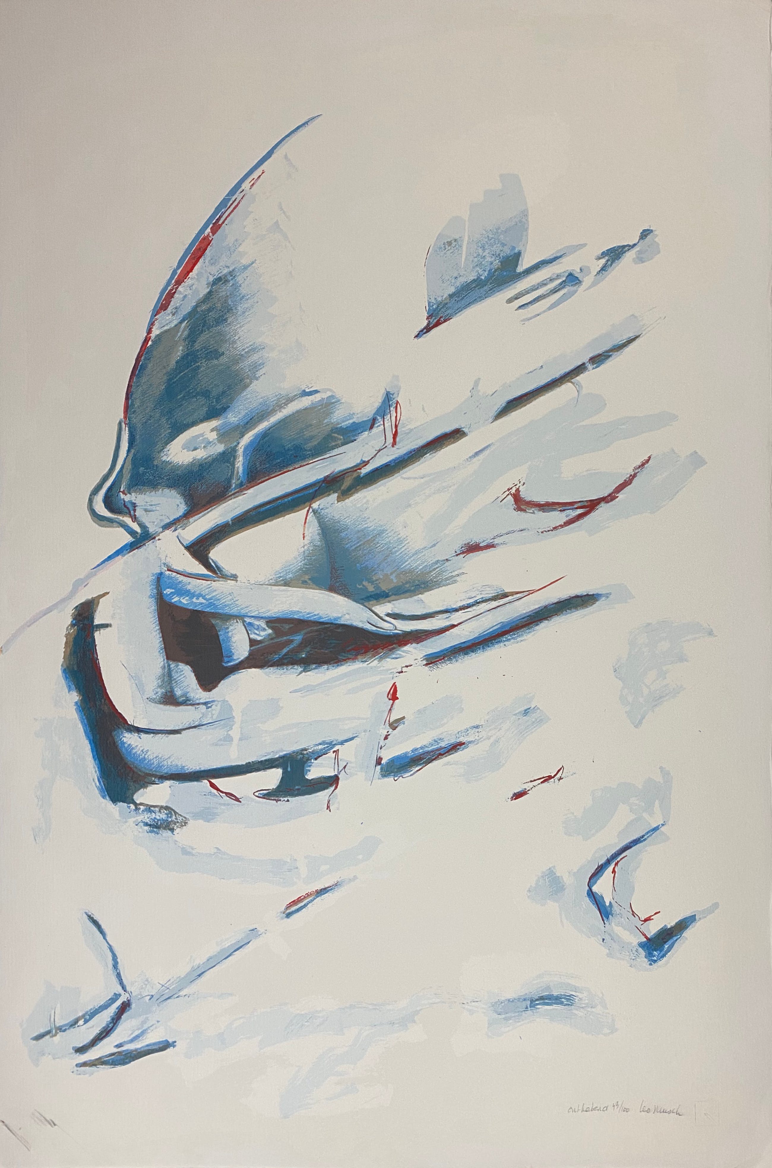 'Ontketend' is een zeer grote handgesigneerde en genummerde zeefdruk van de hand van Leo Musch. Het betreft nummer 43 van 100.