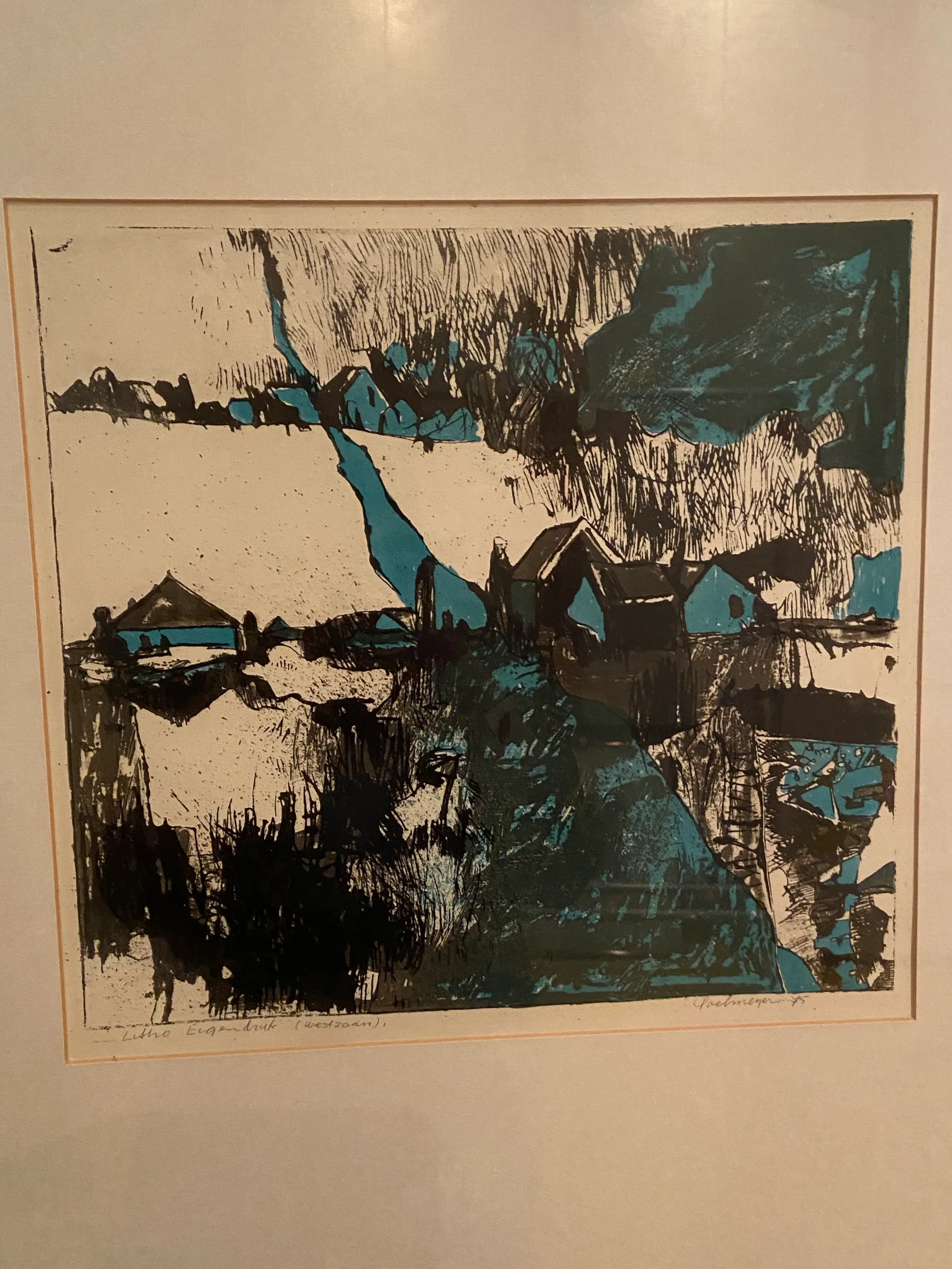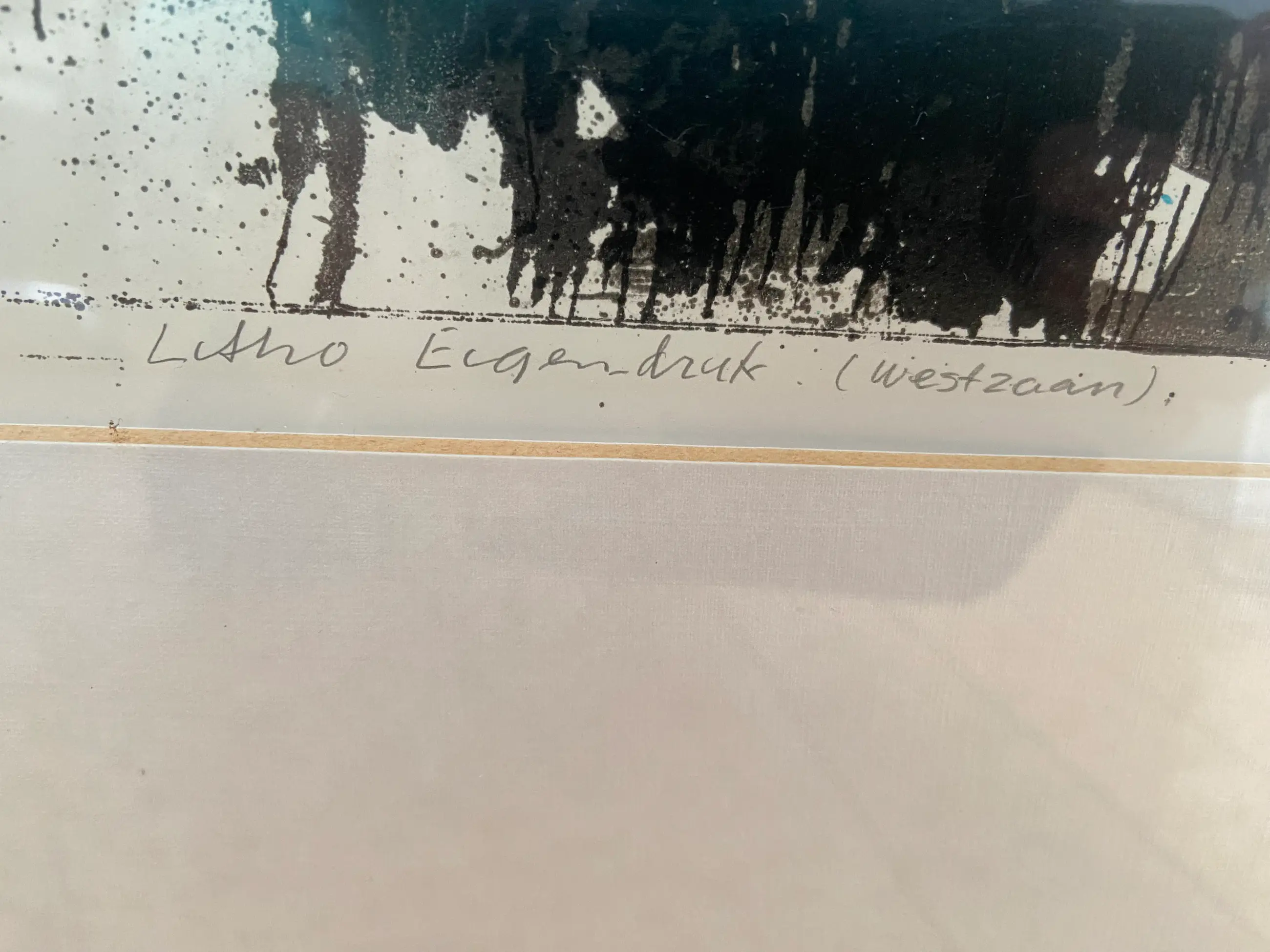 Een litho, eigen druk, van Leo Poelmeijer genaamd "Westzaan".