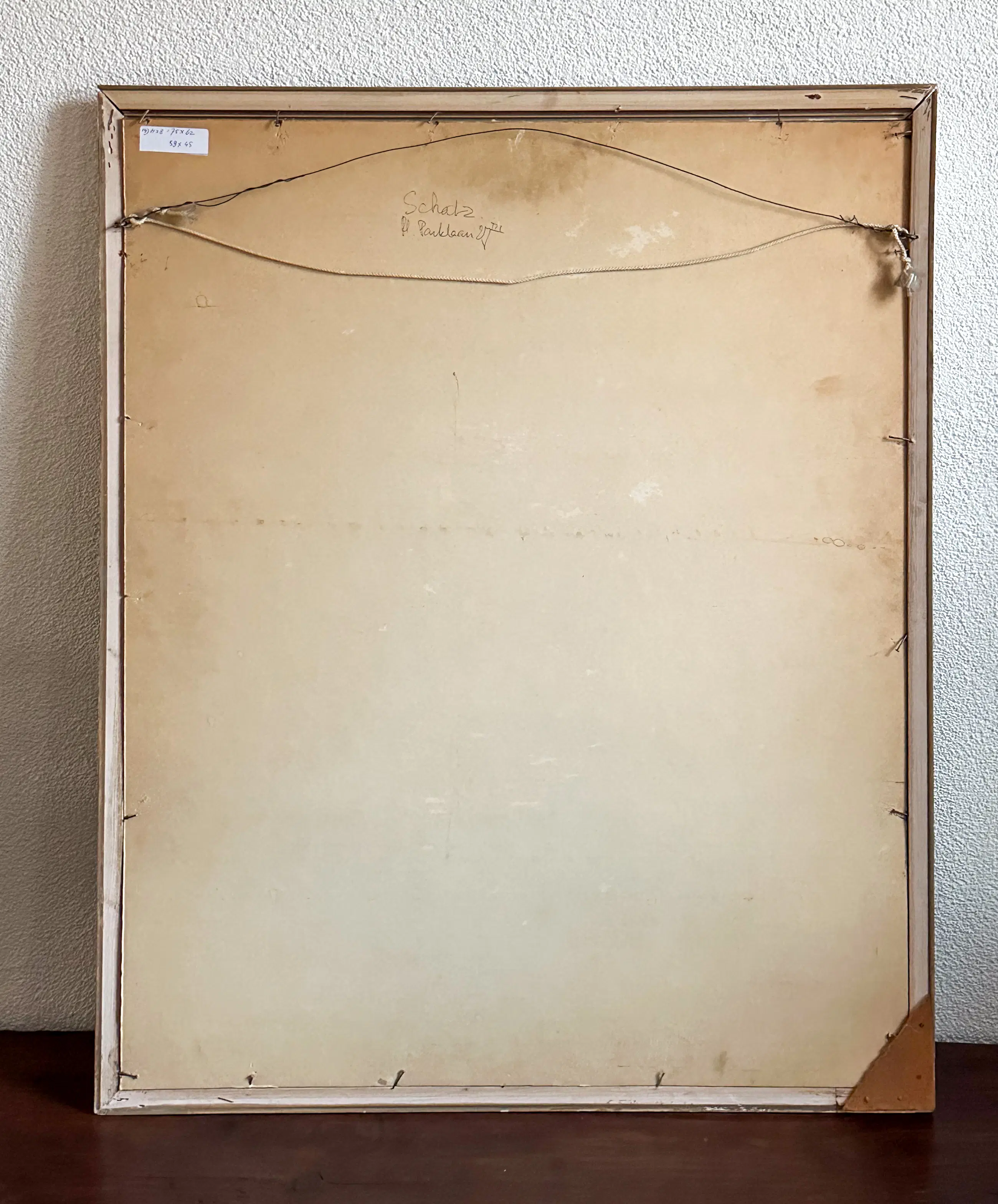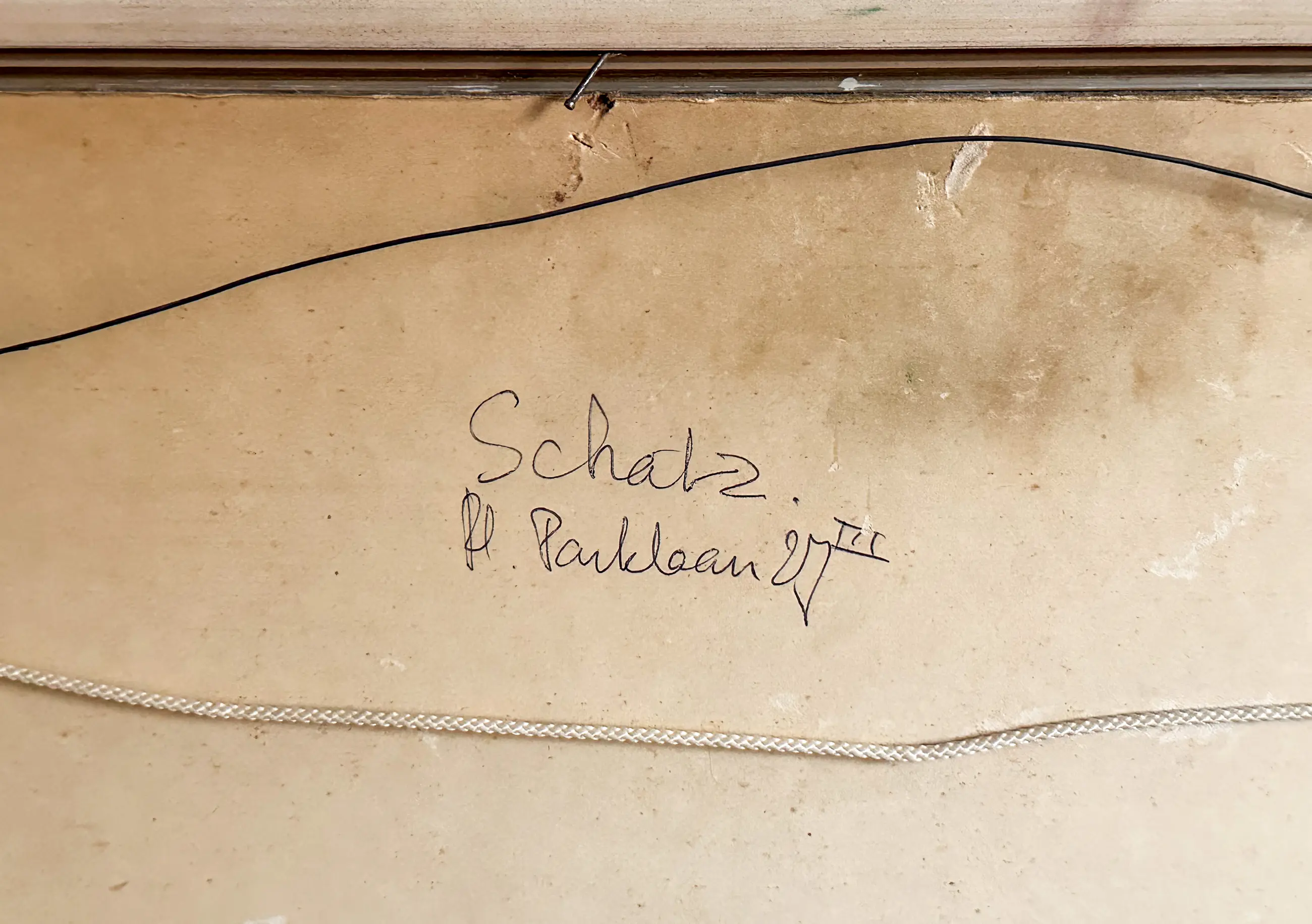 Op de achterzijde staat “Schatz - Pl. Parklaan 27 III”. Plantage Parklaan was het woonadres in Amsterdam van Leo Schatz tussen 1954 en 1981 (bron: leoschatz.nl).