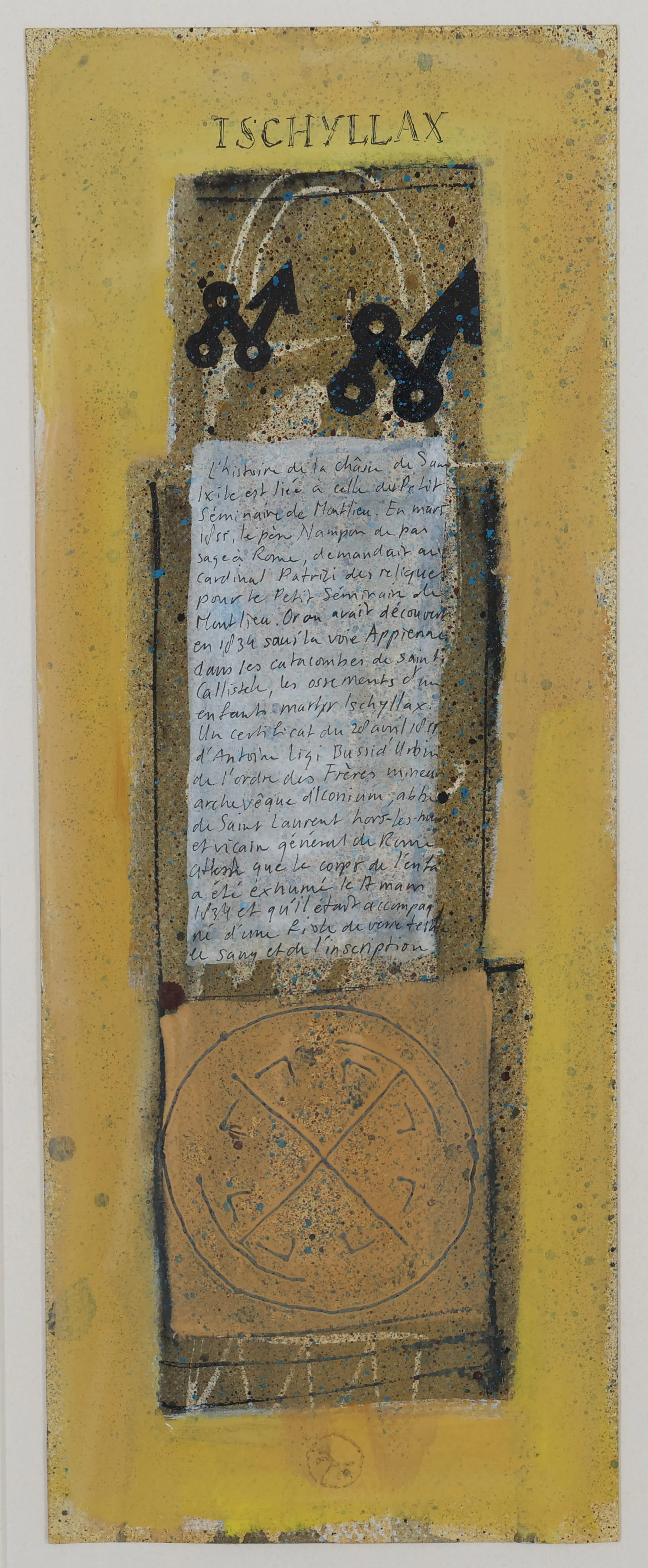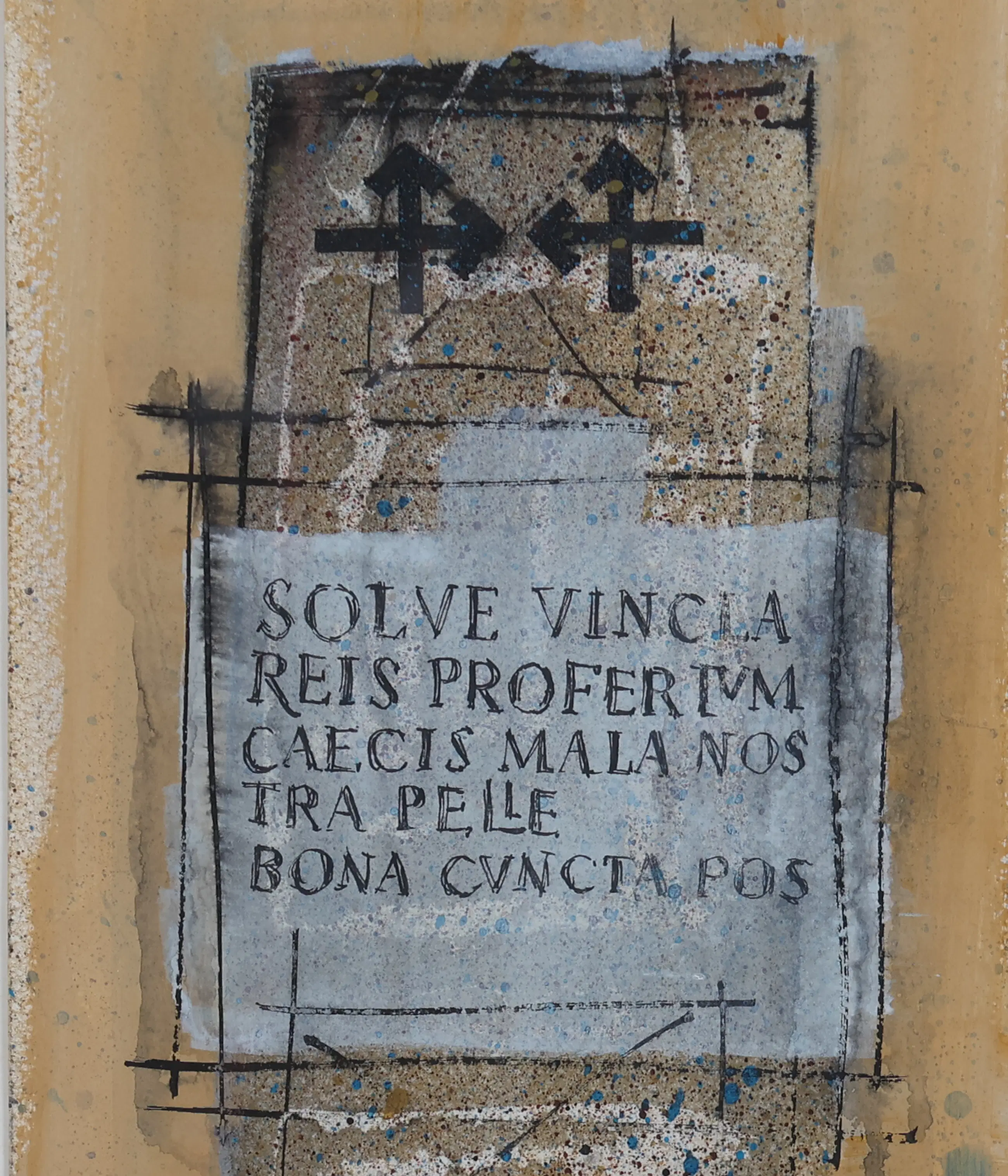 Deze werken zijn gemaakt door de Nederlandse kunstenaar Leo Schepens. Zijn inspiratie vindt hij in de vele bezoeken aan de kleine Romaanse dorpskerkjes op het Franse platteland, in de streek Haute Saintonge. Deze middeleeuwse bouwwerken uit de 11e en 12e eeuw trotseren al eeuwen de tand des tijds, maar dragen de sporen van hun geschiedenis zichtbaar met zich mee. Juist die slijtage, die “tijdsluier”, vormt voor Schepens een onuitputtelijke bron van inspiratie.
