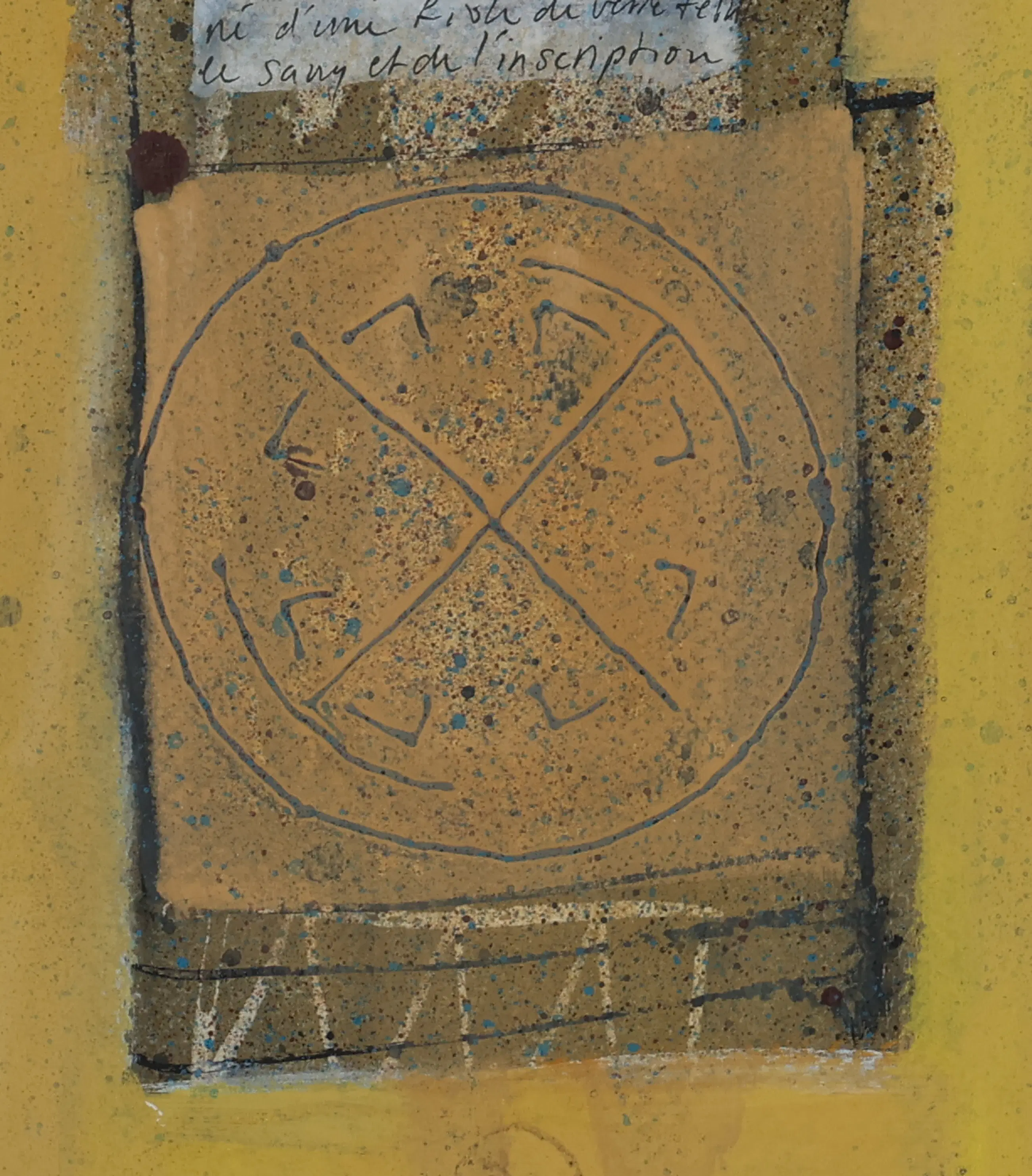 Een fascinatie voor tekens en symbolen uit verschillende culturen en tradities vormt een tweede belangrijke laag in zijn werk. Schepens verwerkt deze symboliek op een intuïtieve manier, vaak binnen een centrale compositie, alsof de kijker wordt uitgenodigd een onbekende, mysterieuze wereld te betreden — een wereld waarin we onze eigen verhouding moeten vinden.