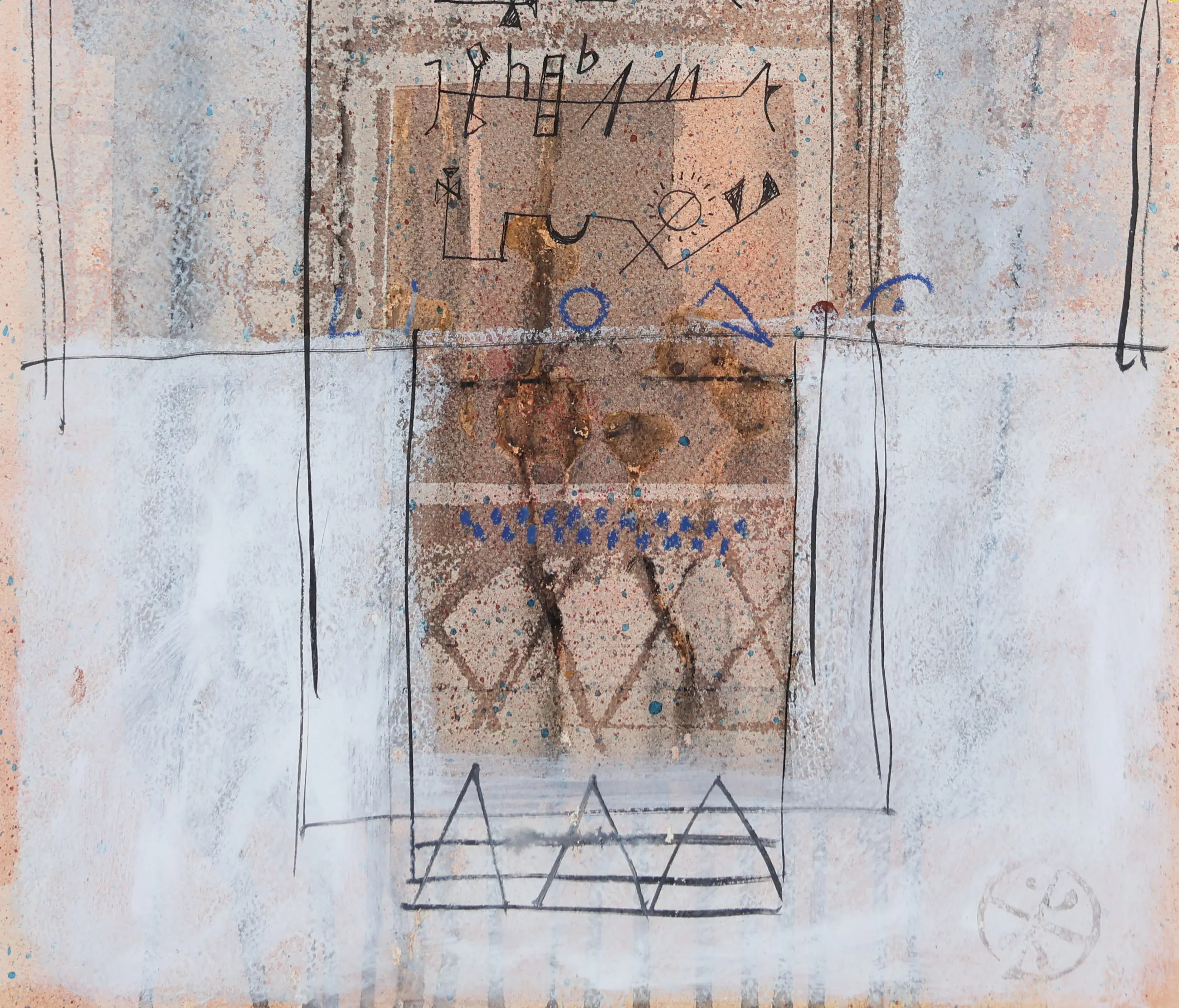 Een fascinatie voor tekens en symbolen uit verschillende culturen en tradities vormt een tweede belangrijke laag in zijn werk. Schepens verwerkt deze symboliek op een intuïtieve manier, vaak binnen een centrale compositie, alsof de kijker wordt uitgenodigd een onbekende, mysterieuze wereld te betreden — een wereld waarin we onze eigen verhouding moeten vinden.