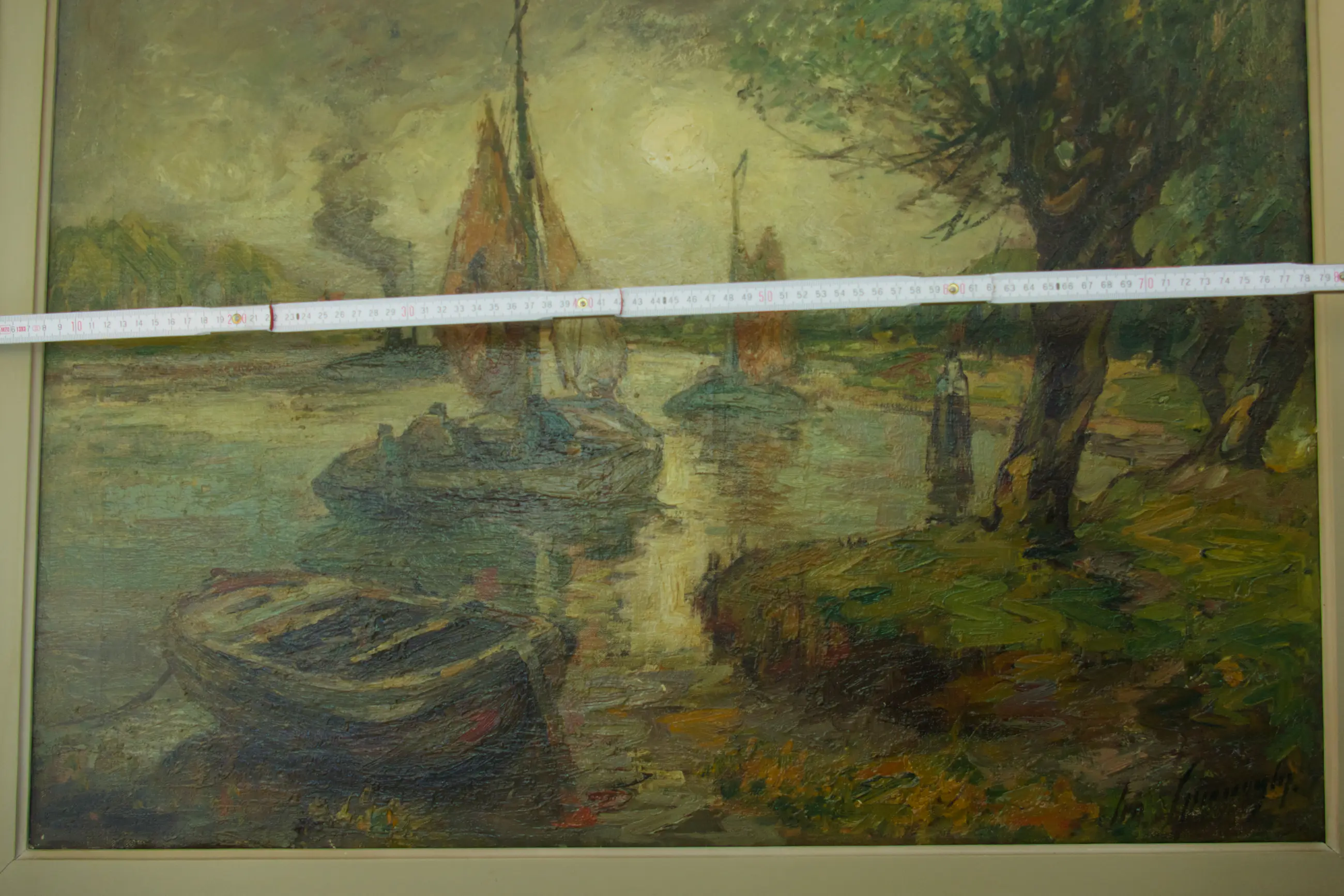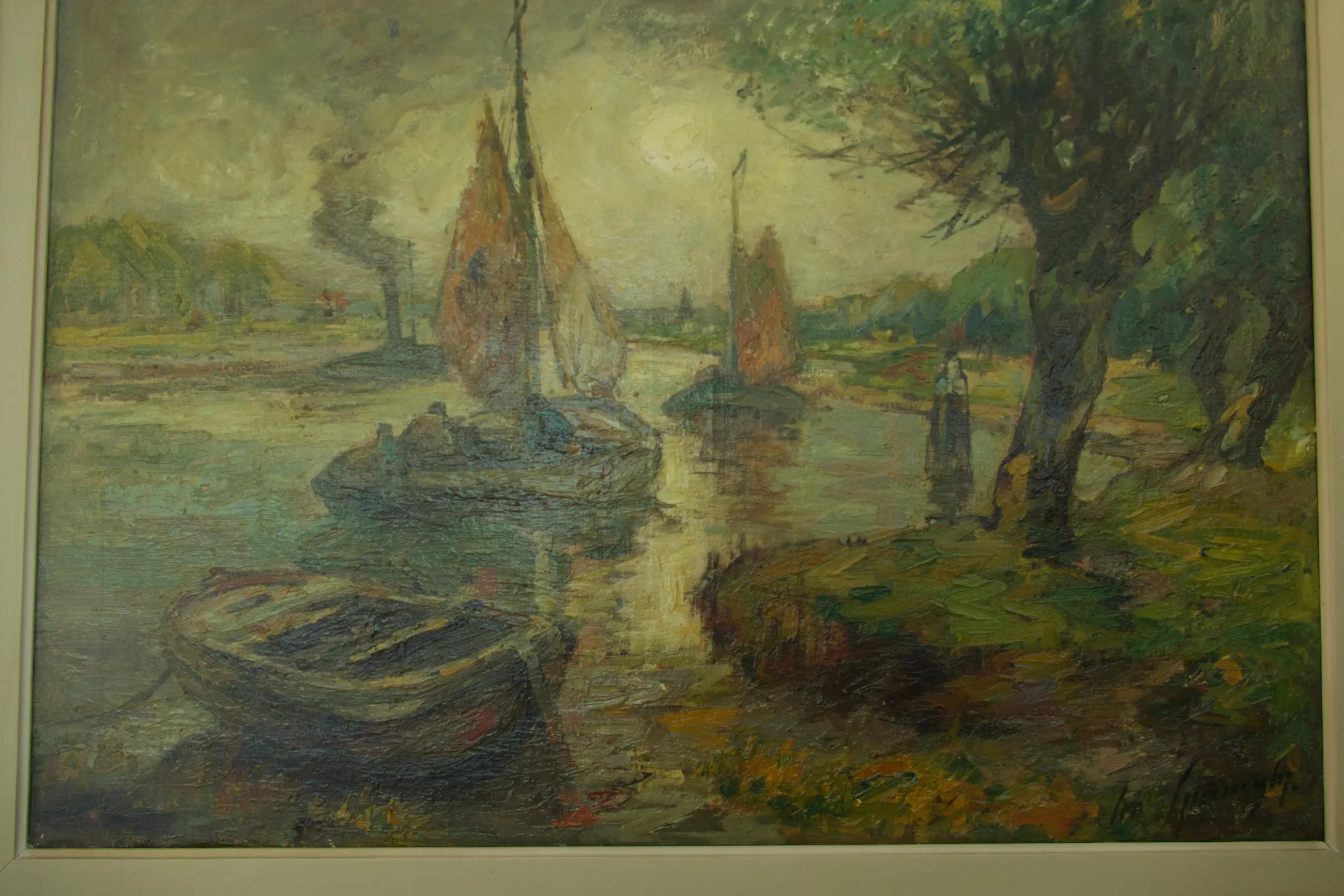 Leo Spanoghe - zicht op de Schelde en voorbijvarende rivierschepen