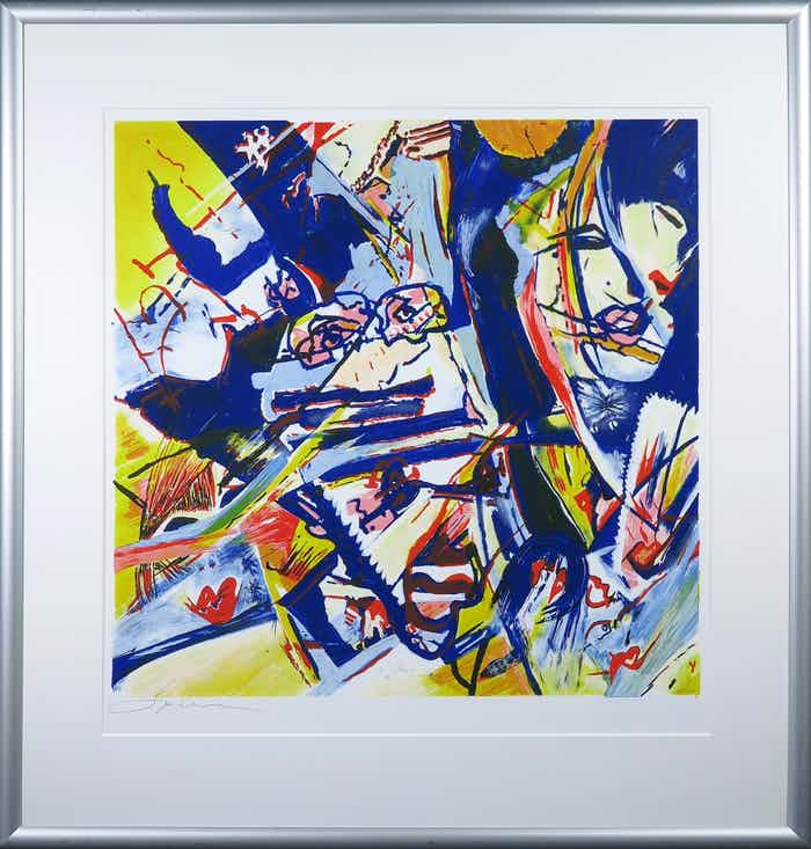 Lijst heeft lichte schade, glas en zeefdruk in Perfecte staat. Originele galerieprijs €500,-