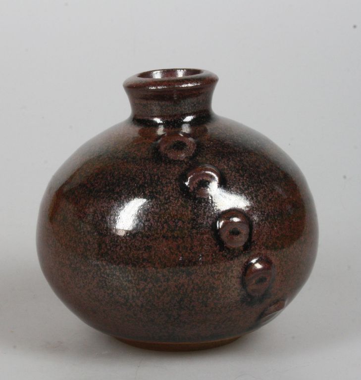 Leo van Olffen vaasje abstract met tenmoku glazuur. Uitstekende staat en gemerkt. Hoogte ca. 8 cm.