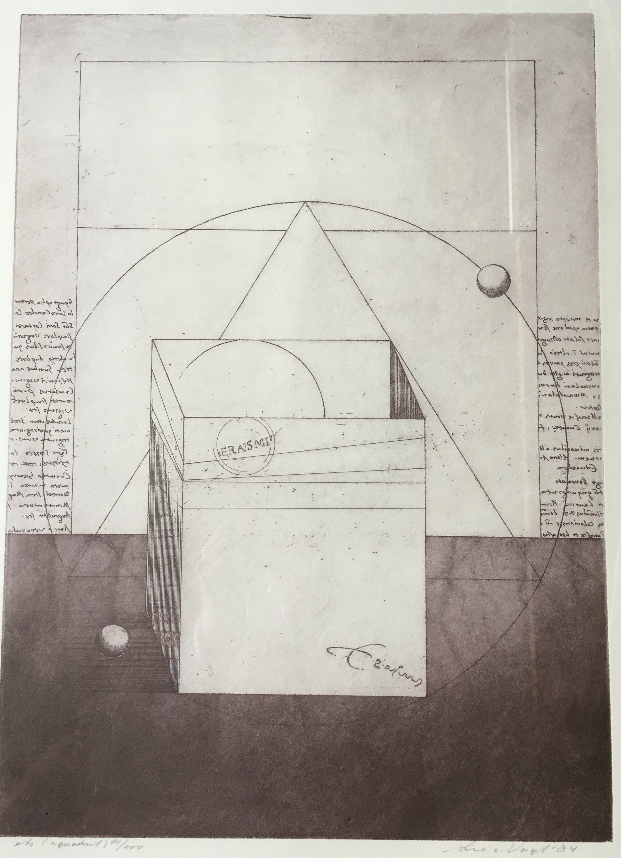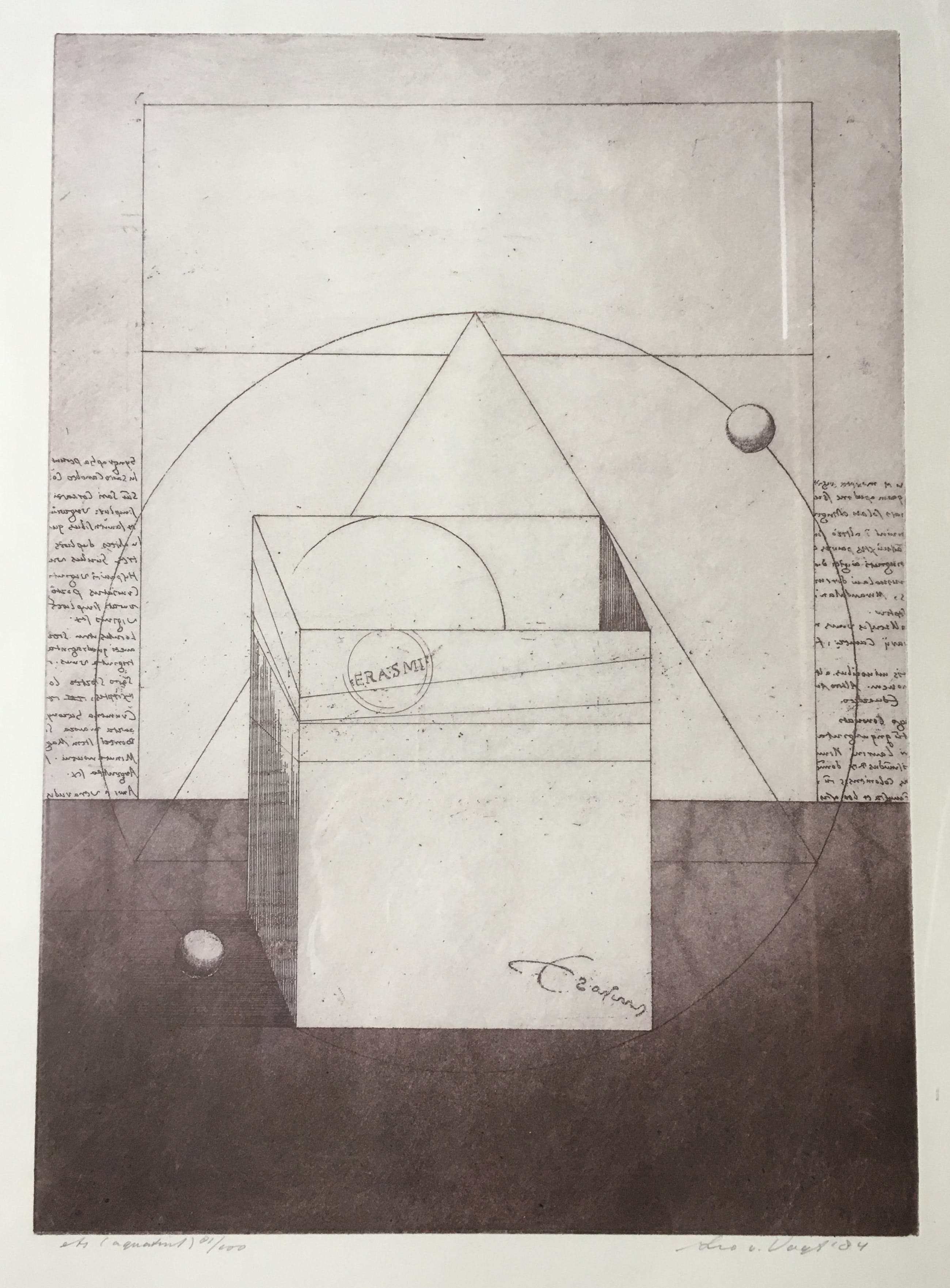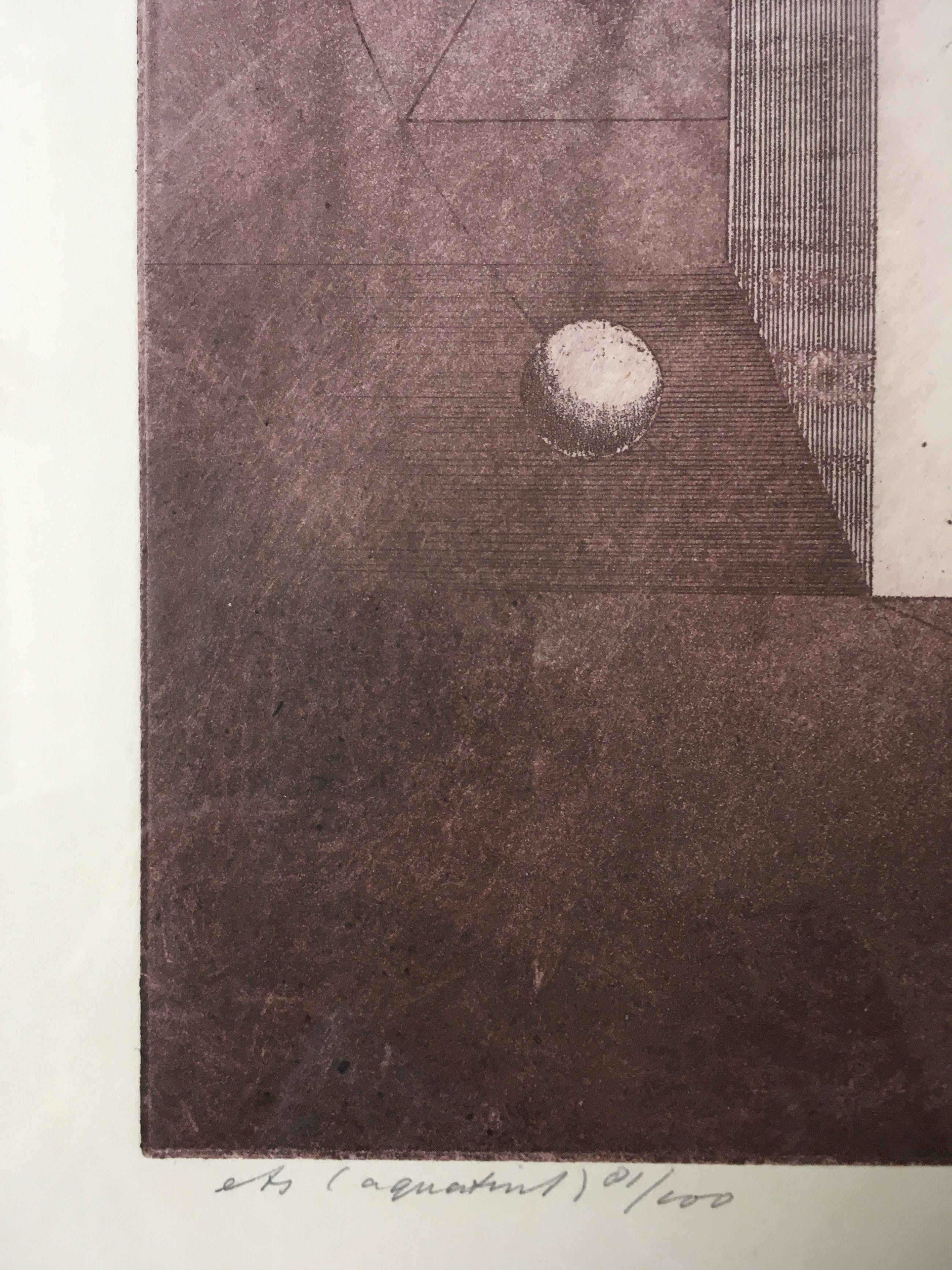 Abstracte ets/aquatint - door Leo van Vugt - 1984 - met potlood genummerd l.o.: 'ets (aquatint) 81/100', gesigneerd/gedateerd r.o.: 'Leo v. Vugt '84'. In witte aluminium wissellijst zonder passe partout. Uitstekende conditie.