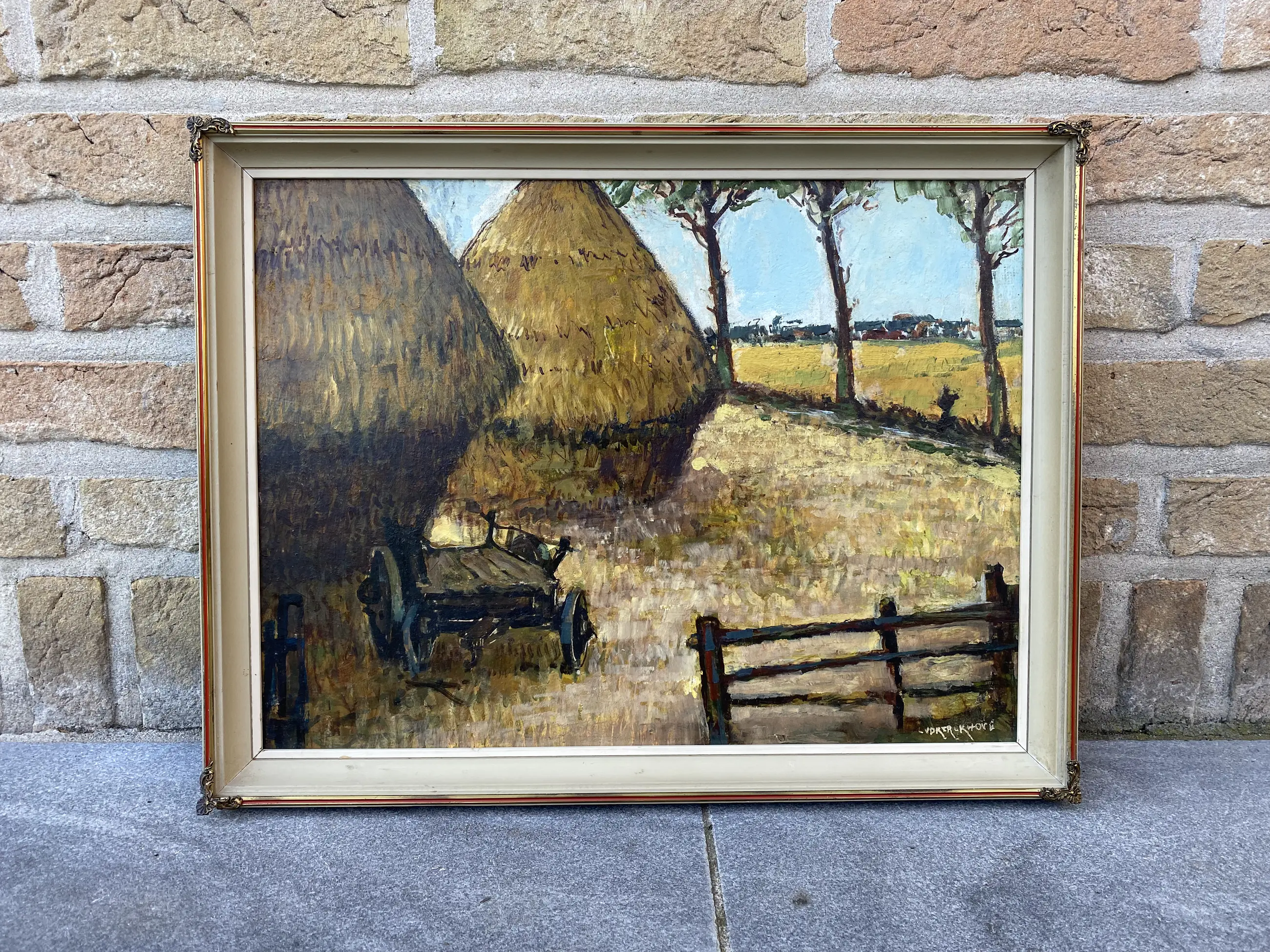 Mooie olieverf op hardboard van de Belgische kunstschilder Leo Vandekerckhove (1894-1986). Zeer goede staat. Ingekaderd in leuke kader met metalen hoekversieringen. Gesigneerd rechtsonder. Afmetingen: - met kader 43 x 33 cm - zonder kader 40 x 30 cm
