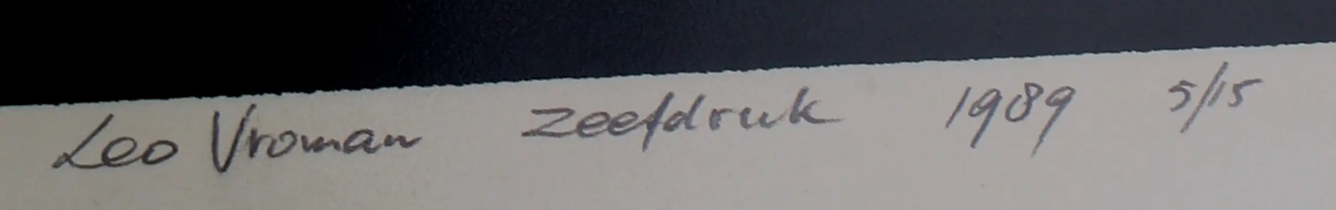 Litho van Leo Vroman. Jaar: 1989. Oplage: 5/15. Afmetingen incl: H40.5 x b30.5cm. Afmetingen voorstelling: H29.5 x b20.5cm. Het werk is, links onder, gesigneerd door de kunstenaar. De authenticiteit van het aangeboden werk wordt volledig gegarandeerd. Een certificaat van echtheid kan, op aanvraag, worden gemaild.