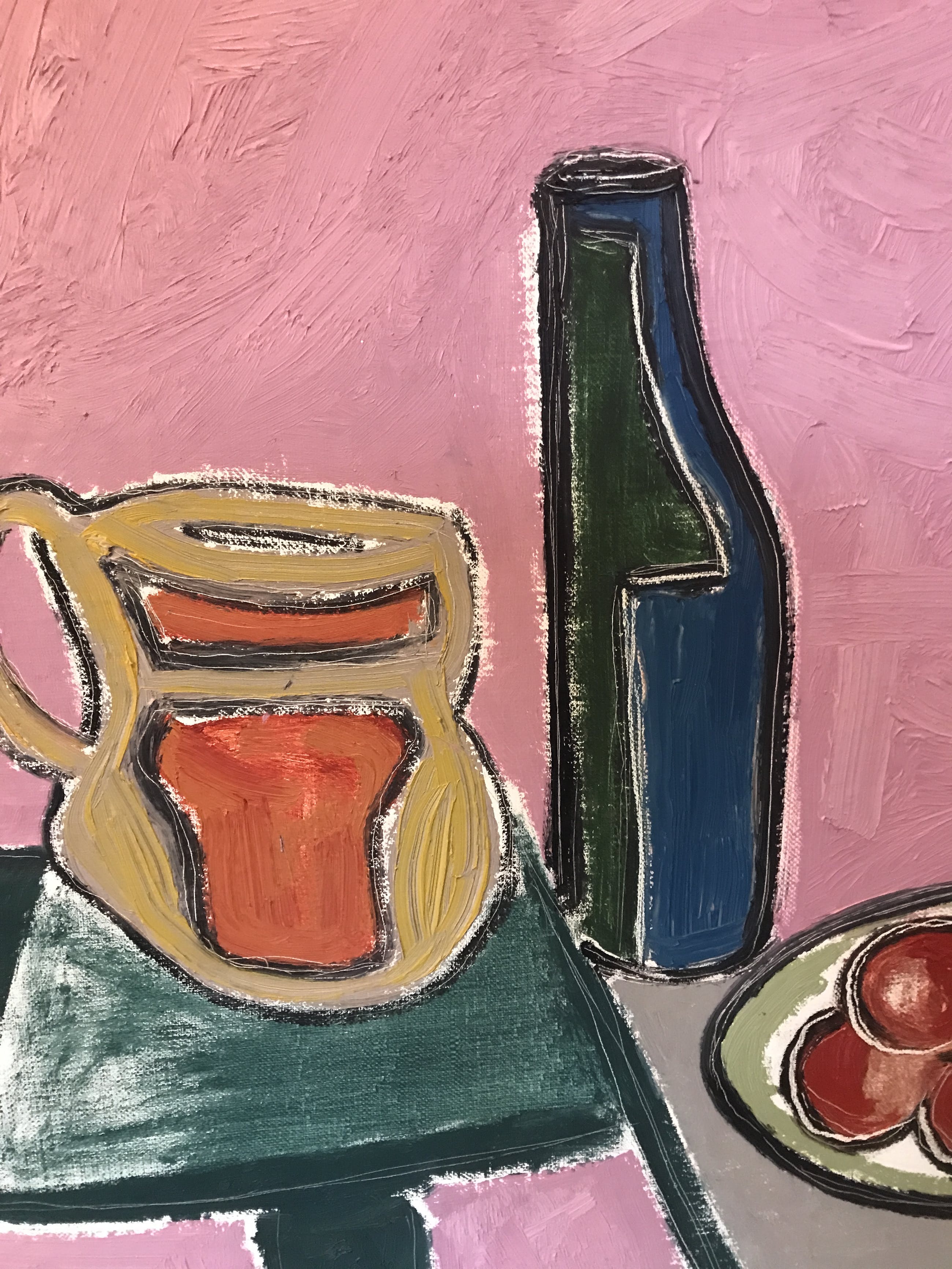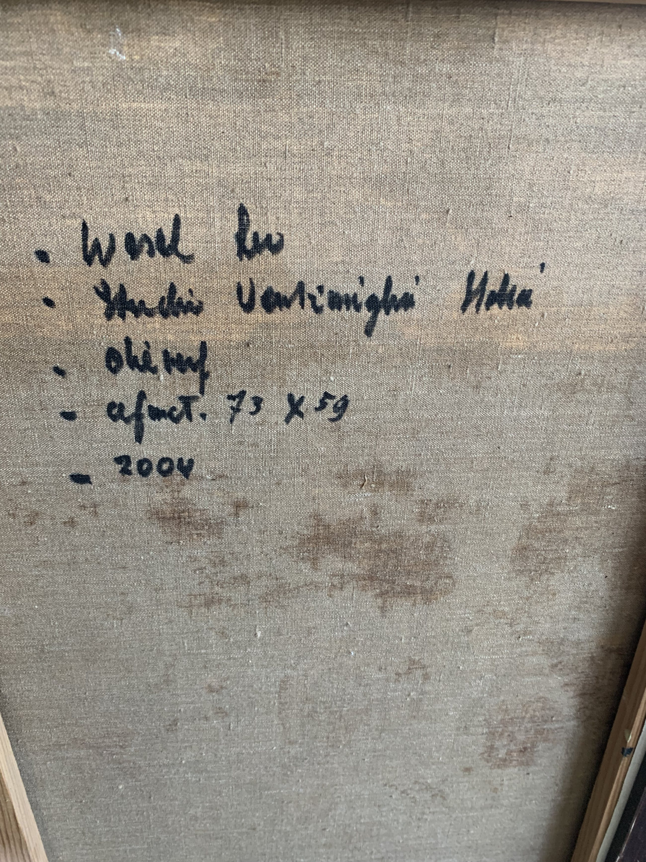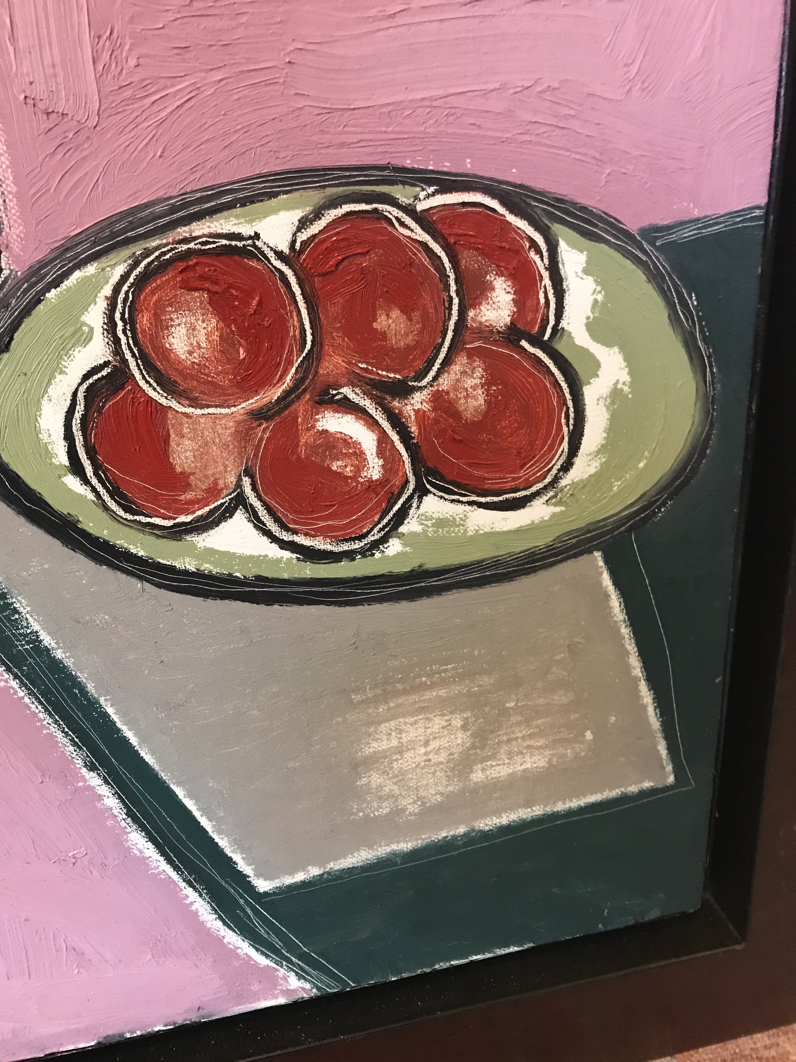 Werk is uit de Italiaanse periode van Leo Wesel in zijn studio Ventemillia. De olieverf is dik opgezet. Inclusief lijst is de omvang 100x80. Stilleven is mooi in balans.