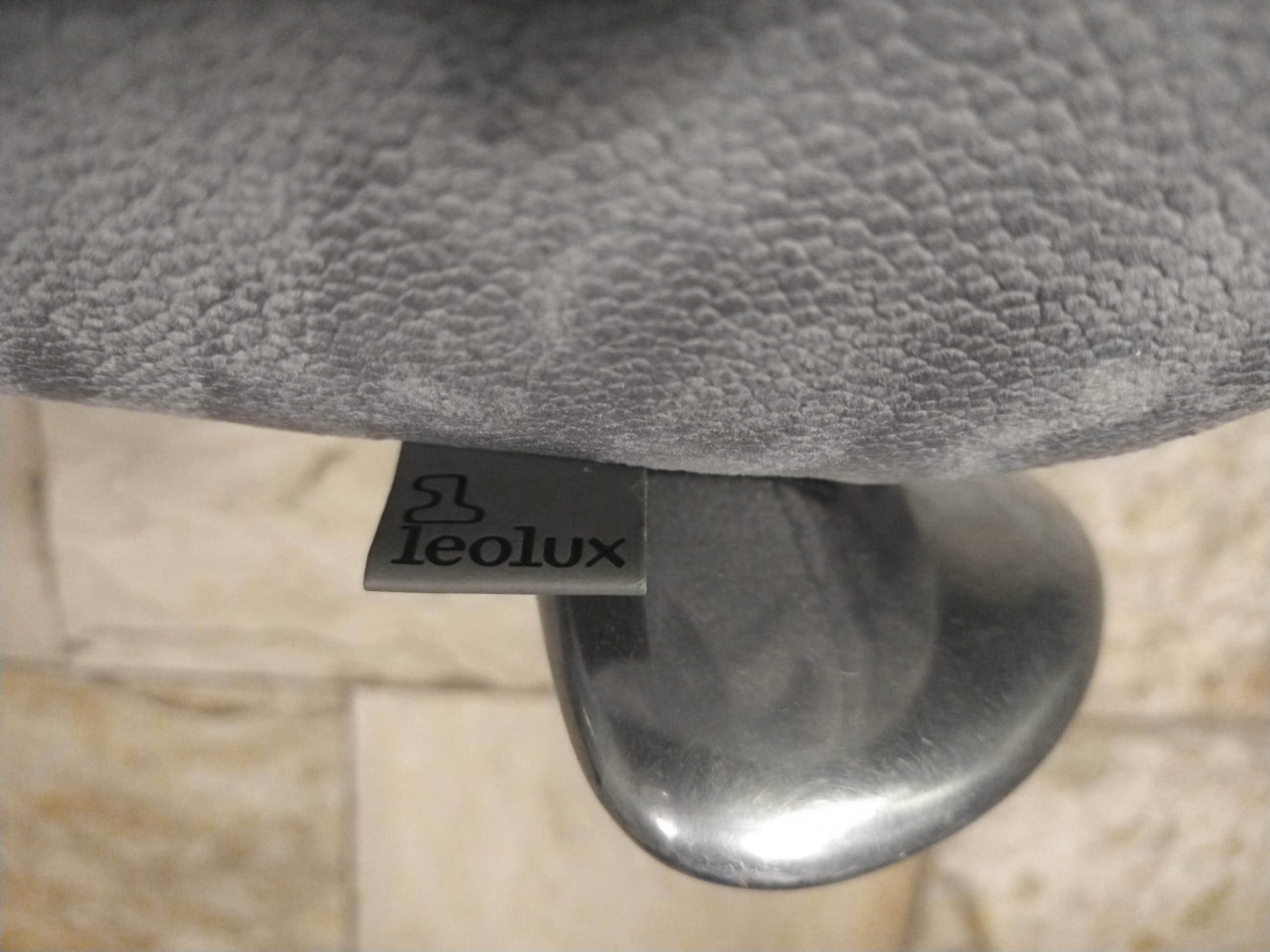 Fraaie Leolux Balou hocker/voetenbank. Uitgevoerd in middel grijs/zilveren stof. Aluminium poten. In prima staat.