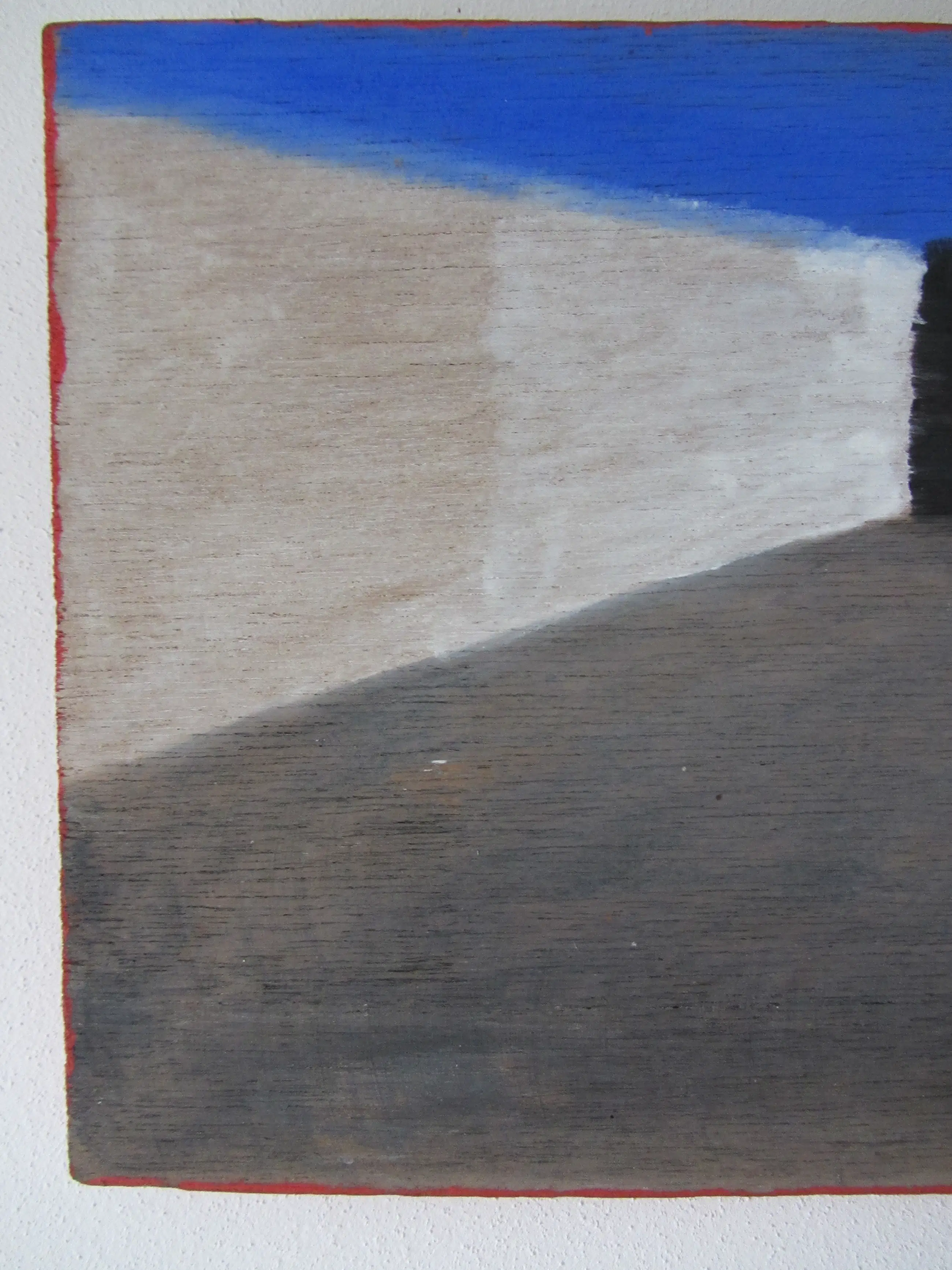 Fraai werk op paneel van Leon Adriaans uit 1988. Afmeting: hoogte 22 cm breedte 23,5 cm "Zonder titel", gesigneerd aan achterkant L.A. Adriaans, juni 1988.
