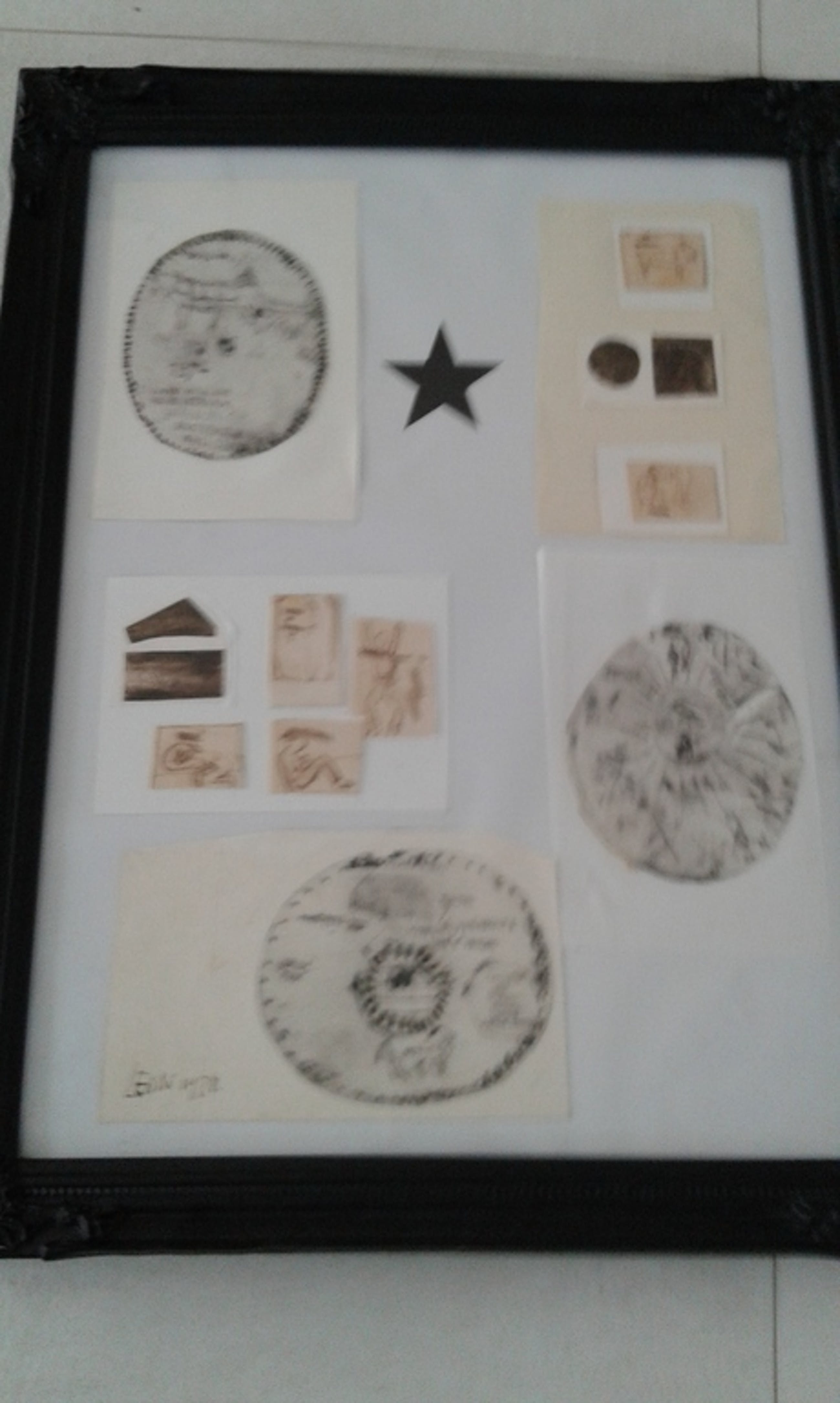 De etsen uit 1974, (destijds afgedrukt in een oplage van 2!!) zitten in een zwart houten lijst afm.lengte 45 cm. br, 33 cm.