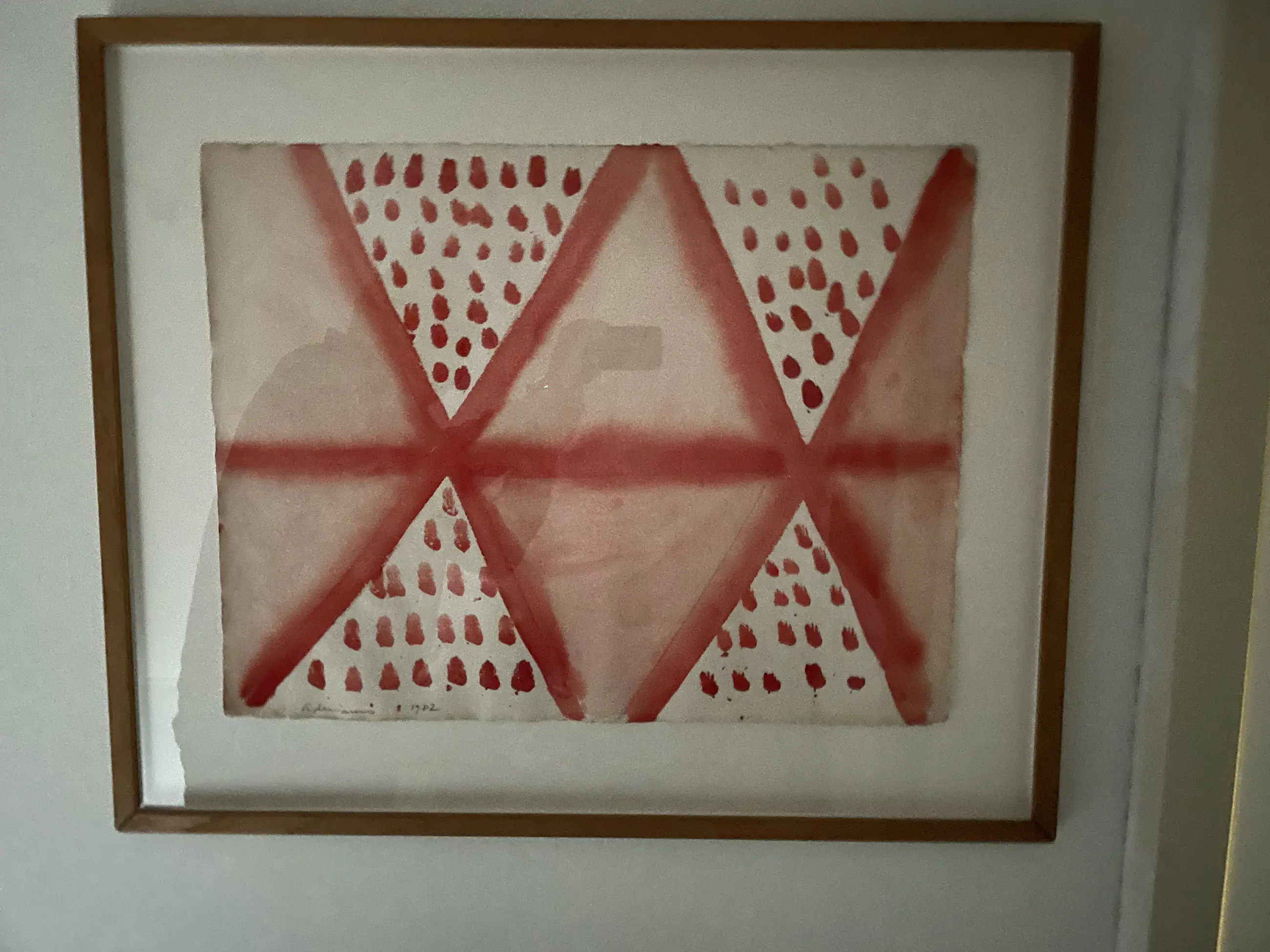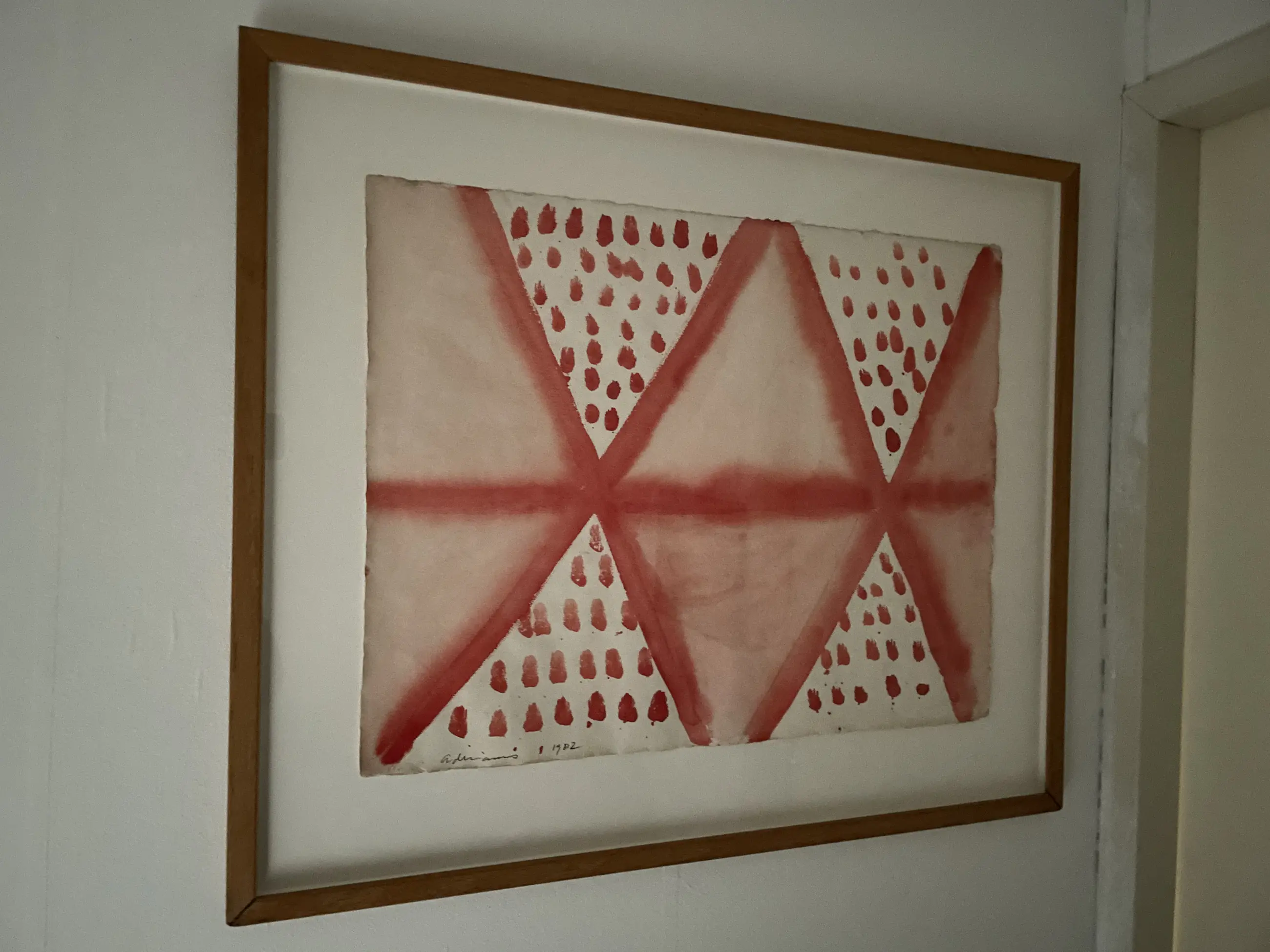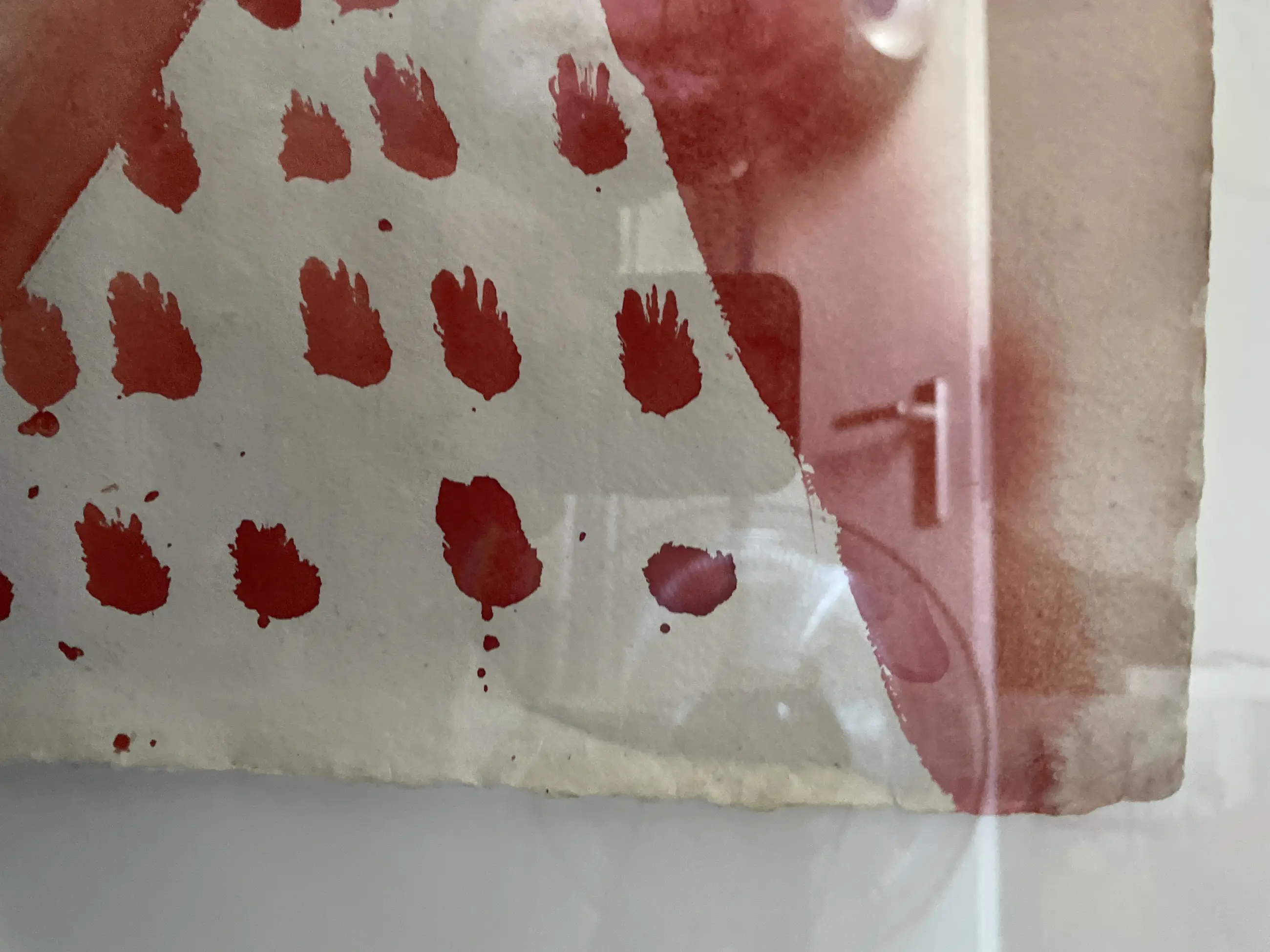 Werk op papier van de bekende Brabantse Kunstenaar Leon Adriaans. Het abstracte werk is kenmerkend uit de begin jaren tachtig. Hij heeft vergelijkbare werken gemaakt op voederzakken. Dit werk is op papier, maar heeft eenzelfde ruige behandeling gehad van de kunstenaar waardoor het werk er hier en daar ‘geleefd’ uitziet. Het werk is ingelijst in een houten lijst. Zie de foto’s om te beoordelen.