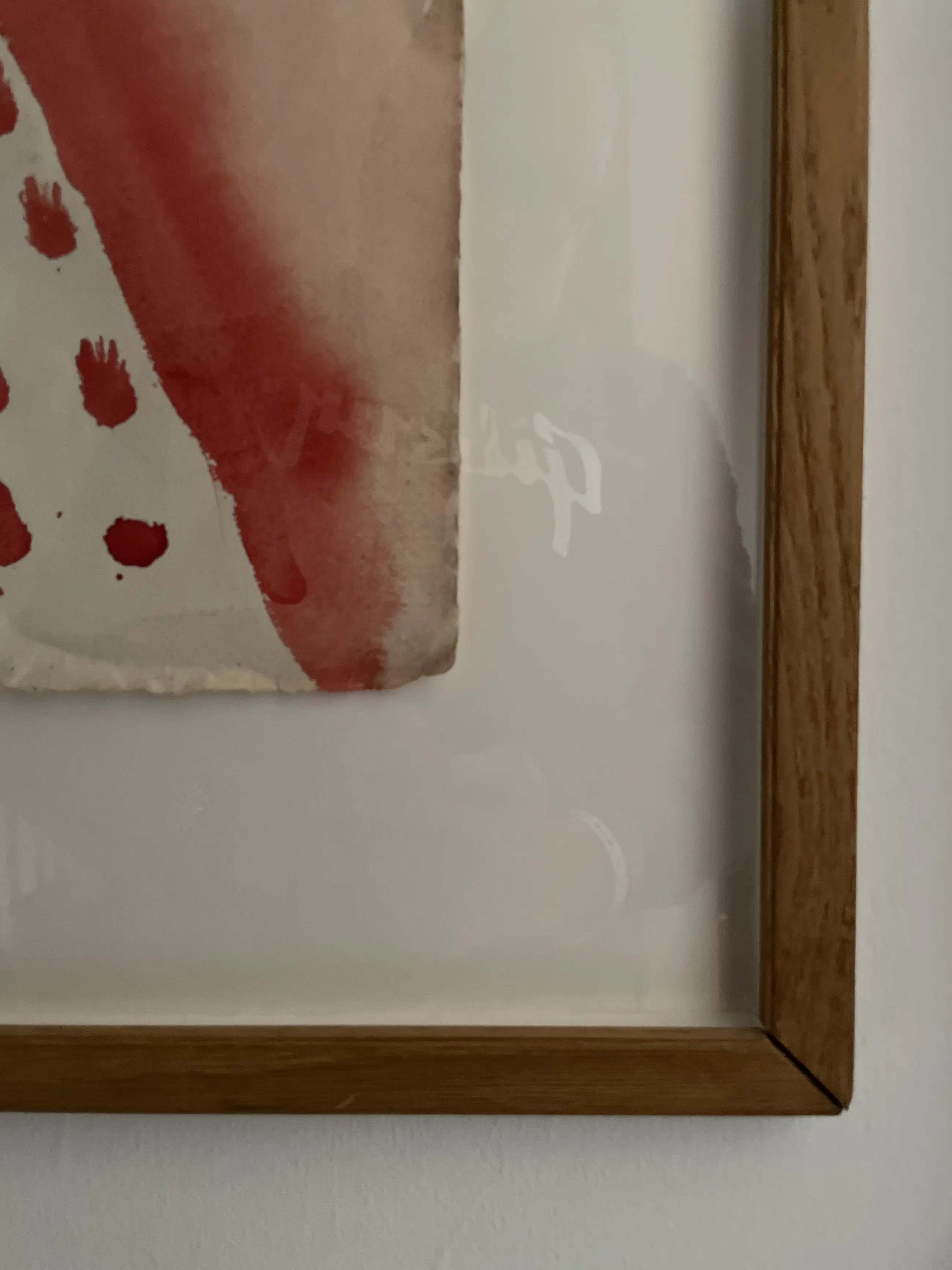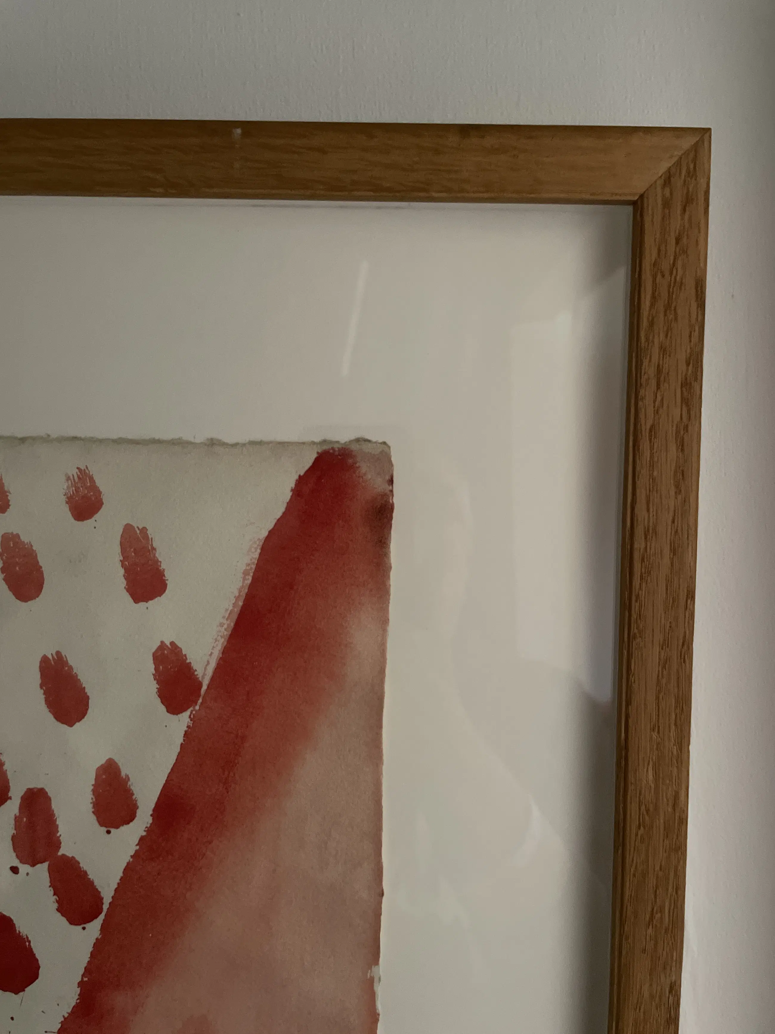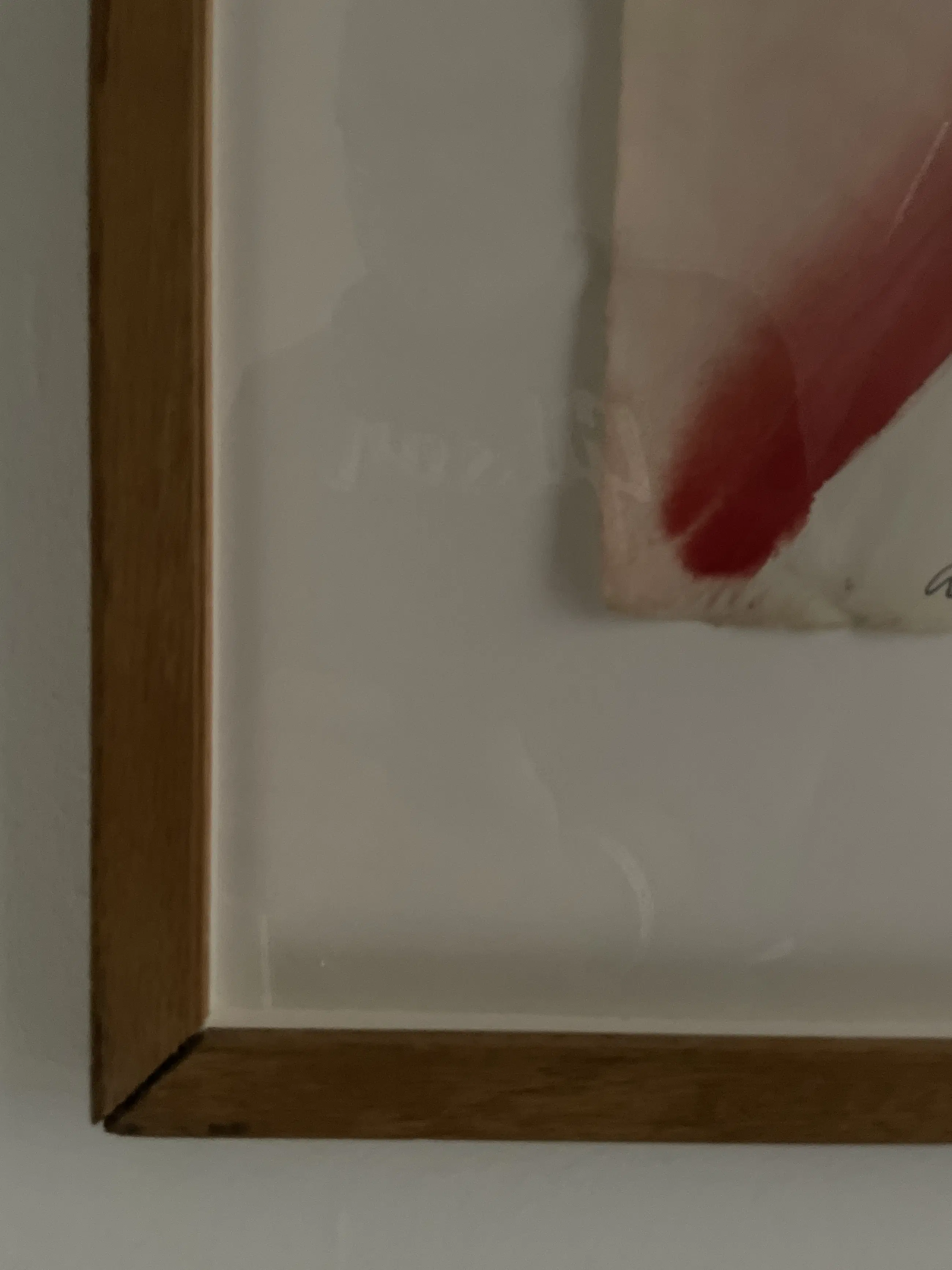 Het werk is in goede conditie met wat atelierkreuken. De onderste twee hoeken van de lijst sluiten niet mooi aan. Het werk kan niet ingelijst worden verzonden.
