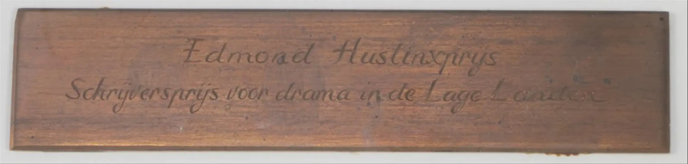 Geweldig mooie en grote houtsnede van Leon Janssen. Dit exemplaar is in 1986 (gezien signatuur en datering) cadeau gedaan bij de uitreiking van de Edmond Hustinxprijs. Dit is een tweejaarlijkse Nederlands/Belgische prijs voor Theaterschrijvers. In 1986 werd de prijs gedeeld tussen theaterschrijvers Kees Holierhoek en René Verheezen.