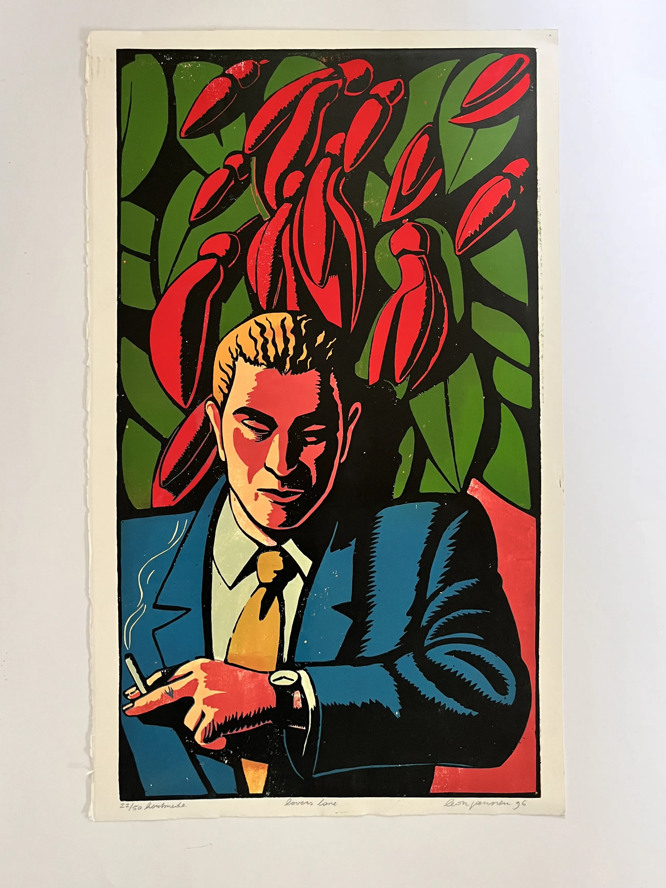 Fraaie houtdruk van Leon Janssen in goede staat.