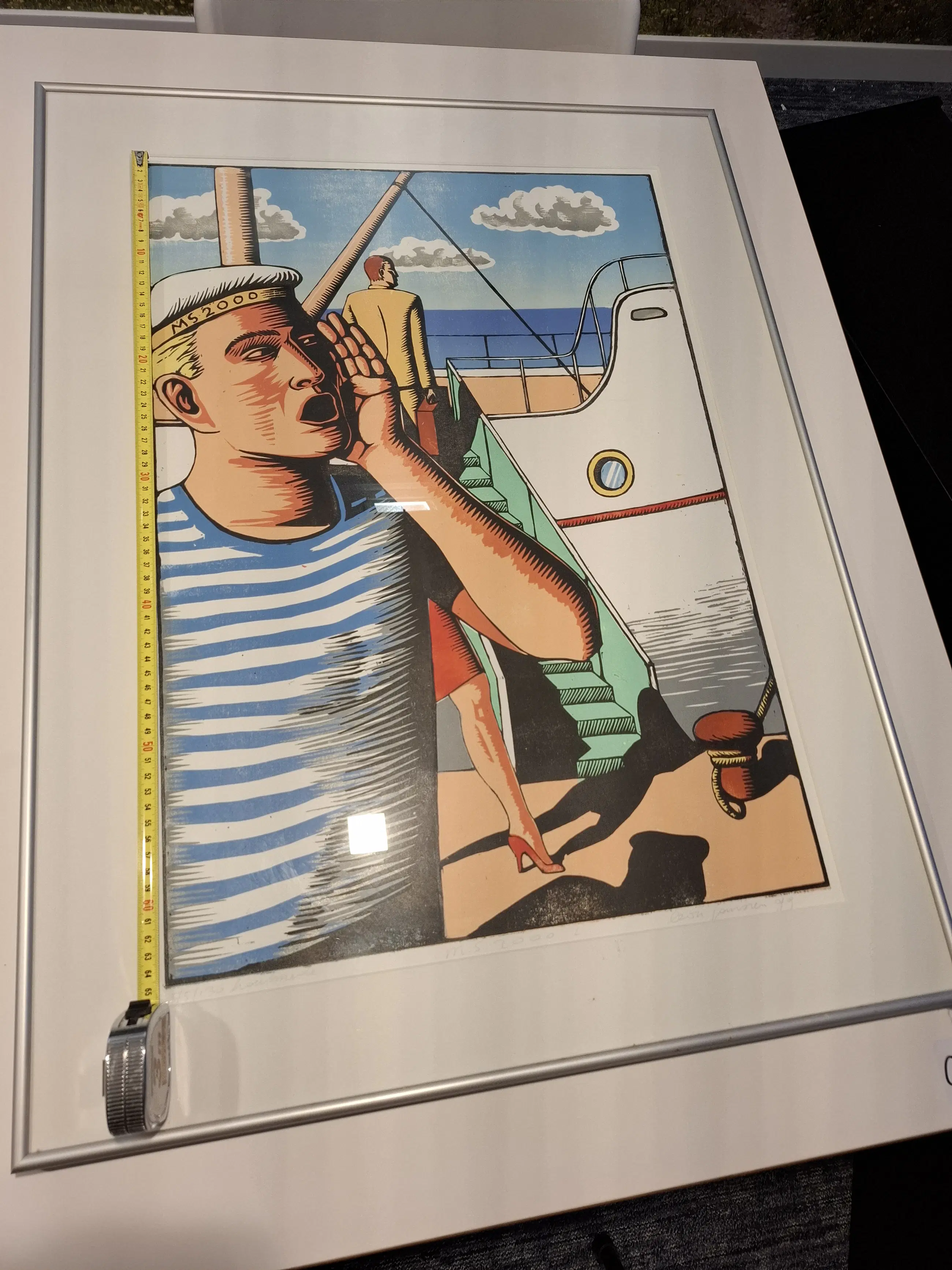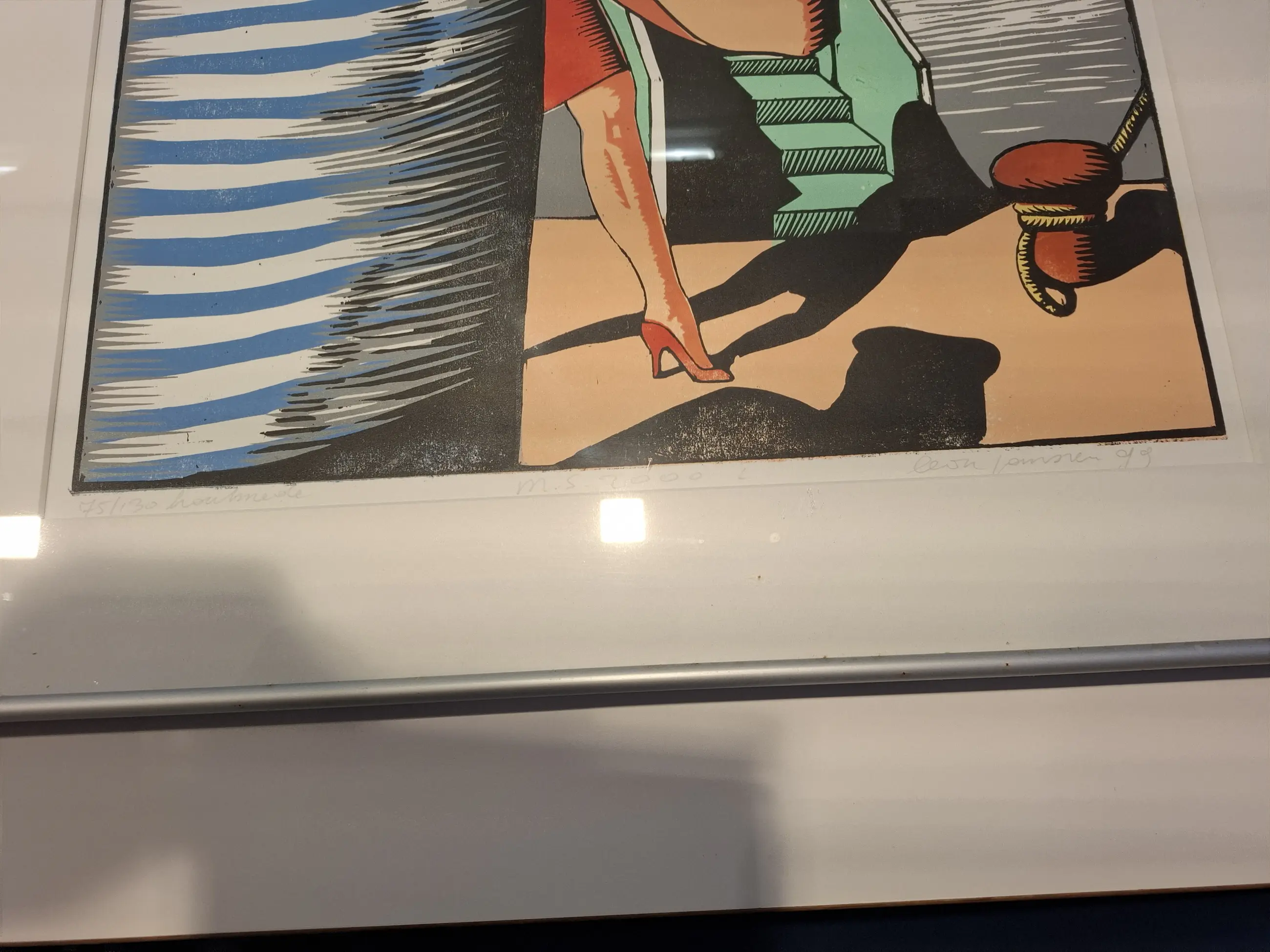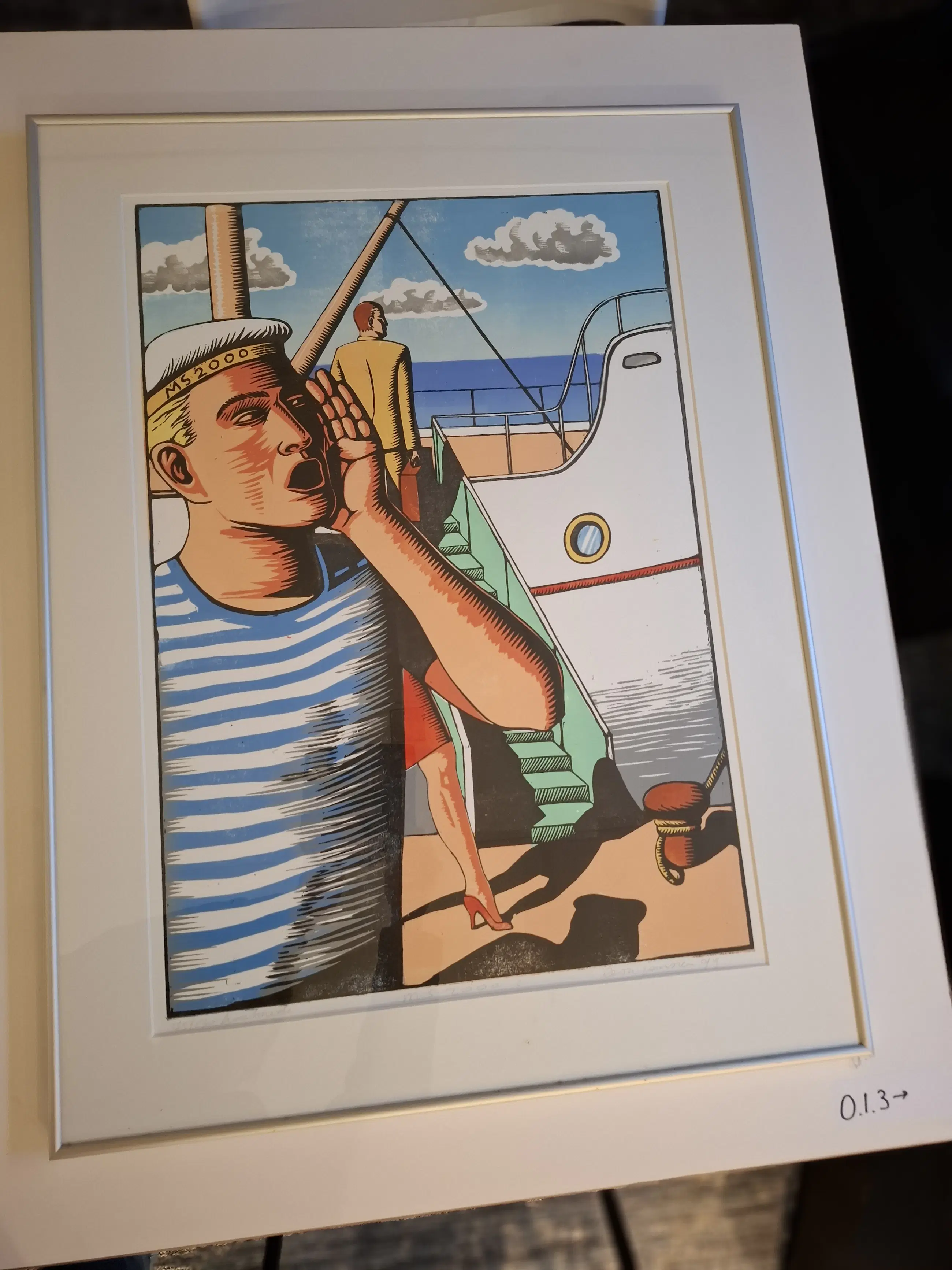 Betreft een kleur-houtsnede. Herkomst: Het hing in een pand dat ik aankocht. De verkoper wilde het niet meer.