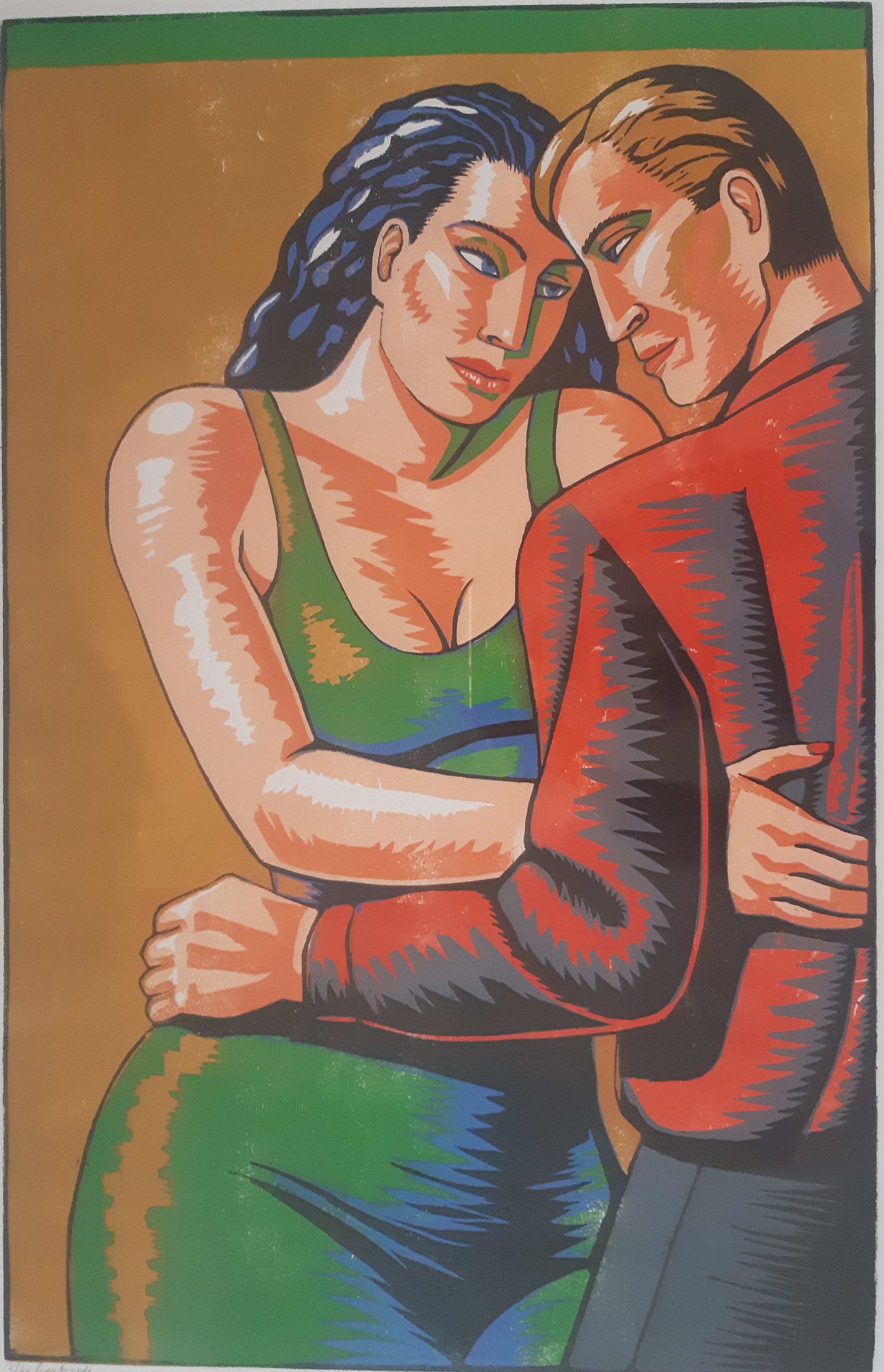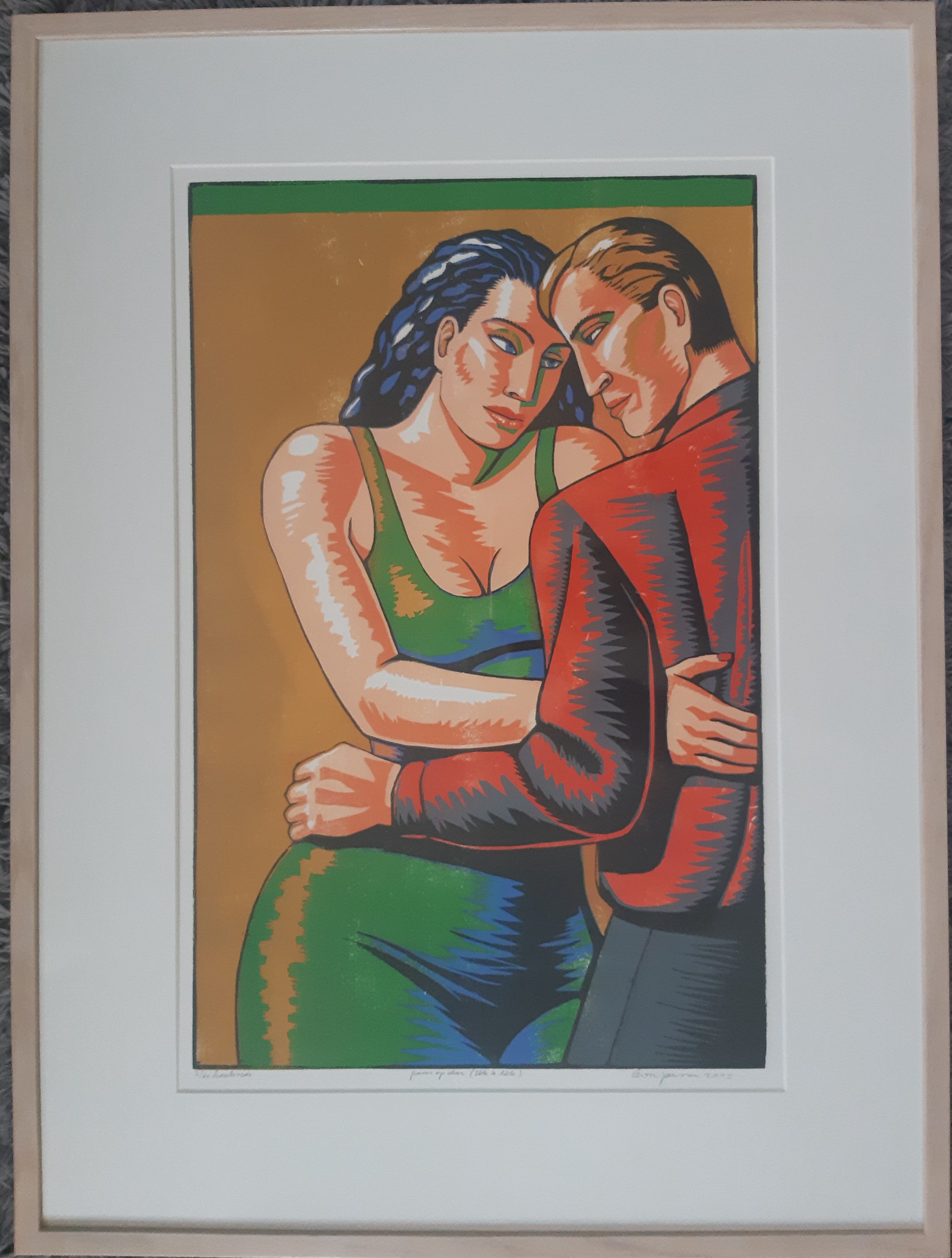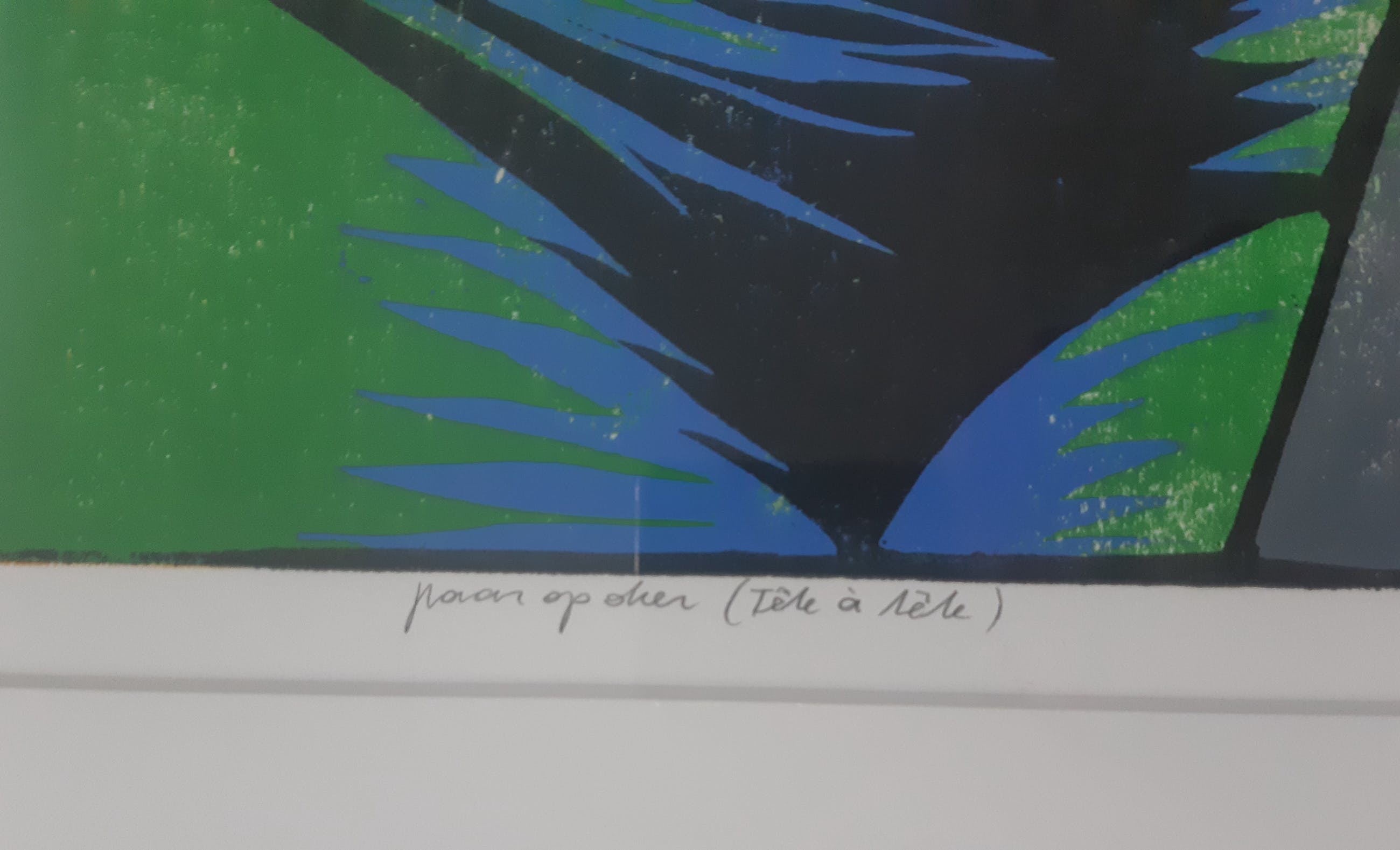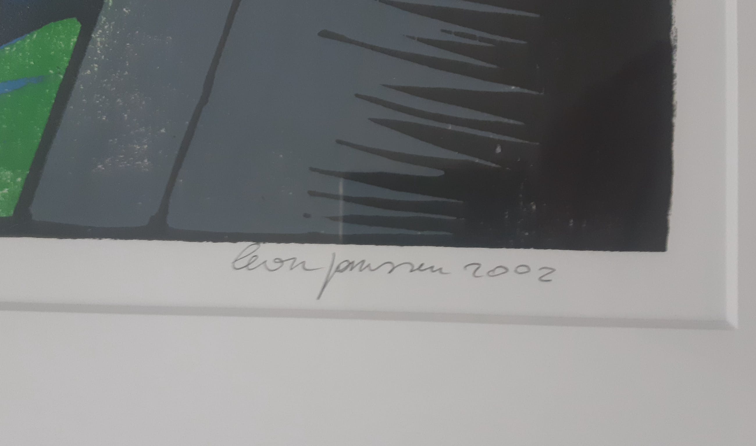 Grote houtsnede van Leon Janssen uit 2002. Ingelijst in lichte houten lijst. Met potlood gesigneerd, gedateerd, genummerd 2/60 en voorzien van titel. De conditie is als nieuw.