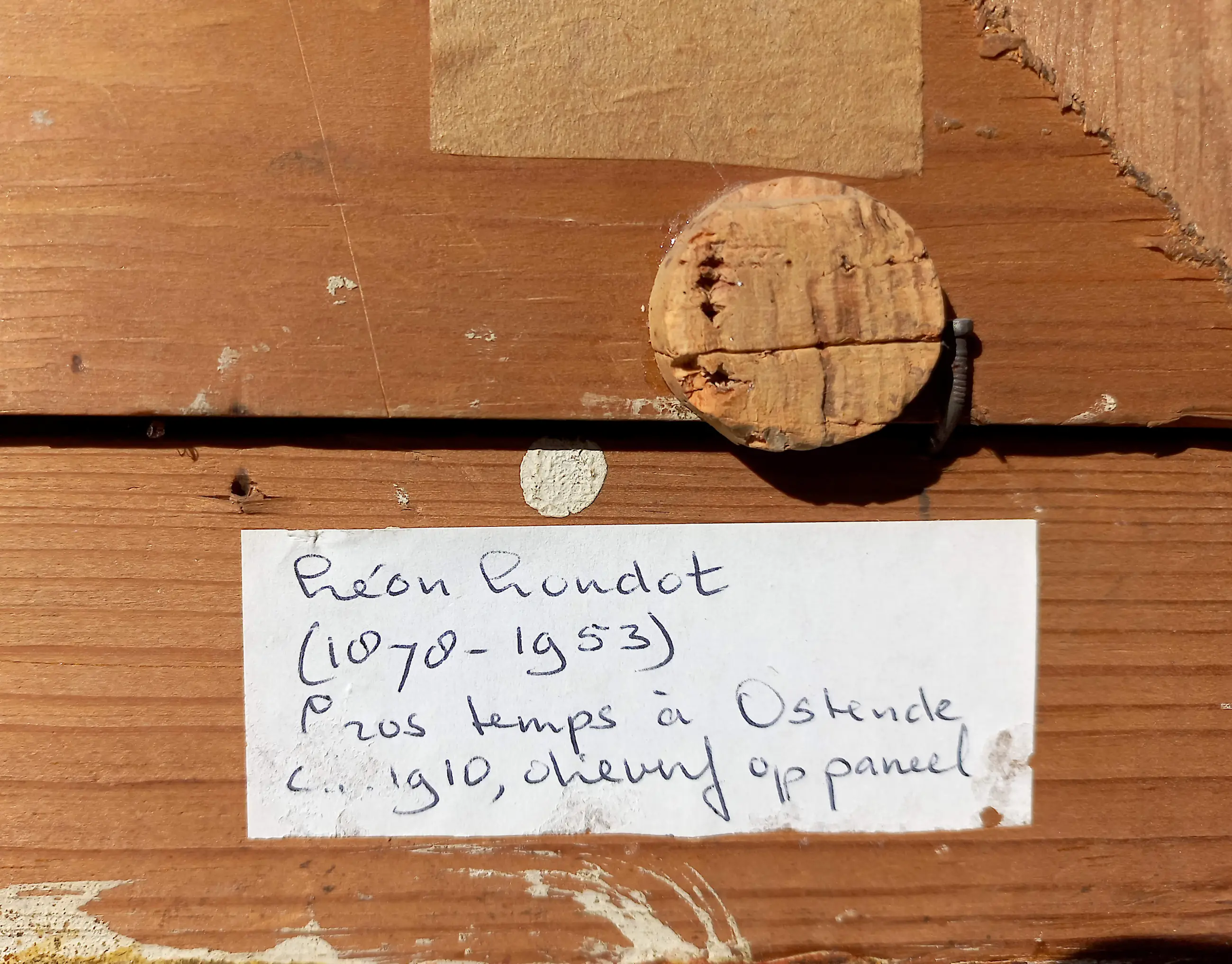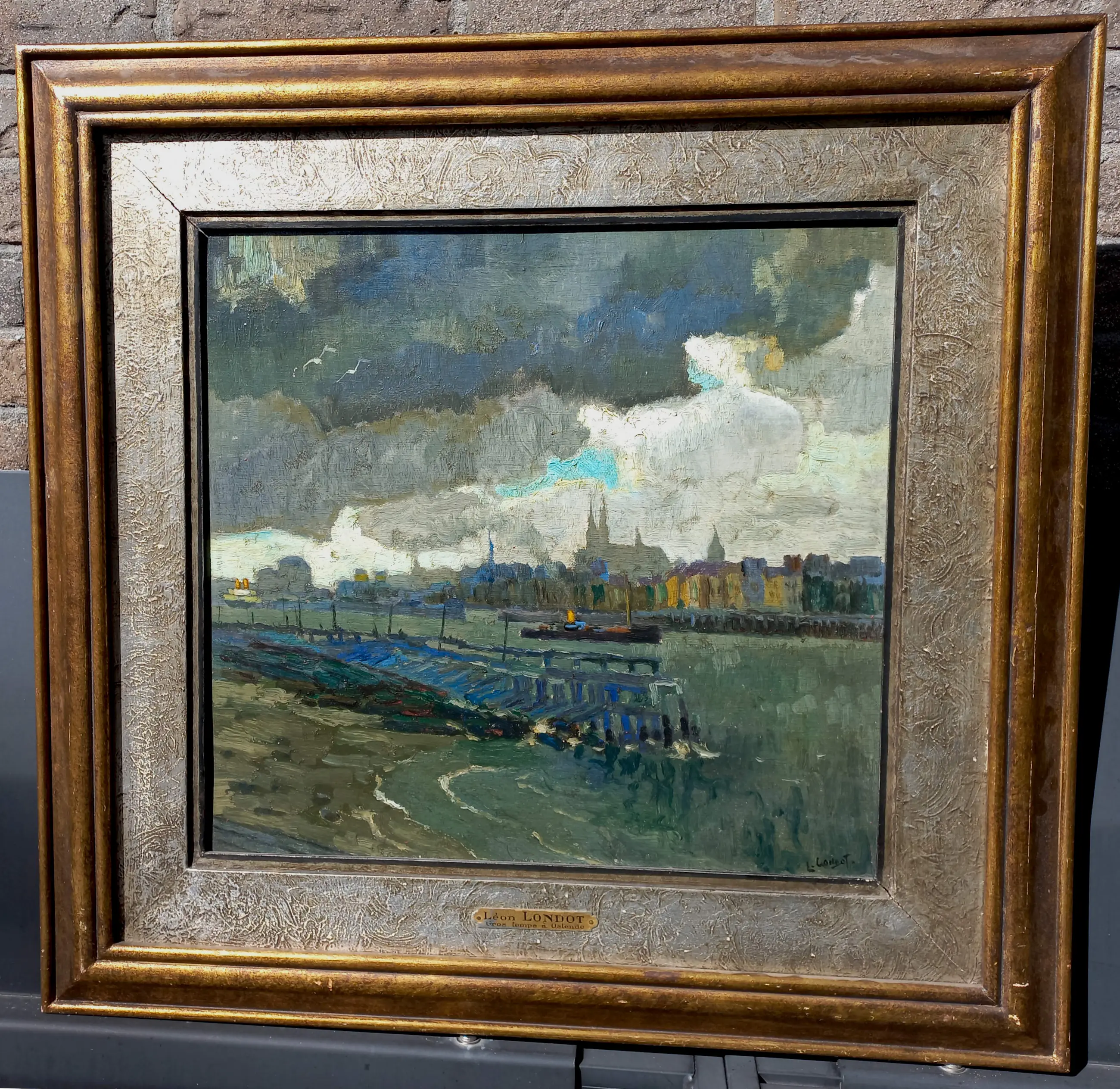 Leon Londot - Gros temps a Ostende, olieverf op paneel (netjes ingelijst)